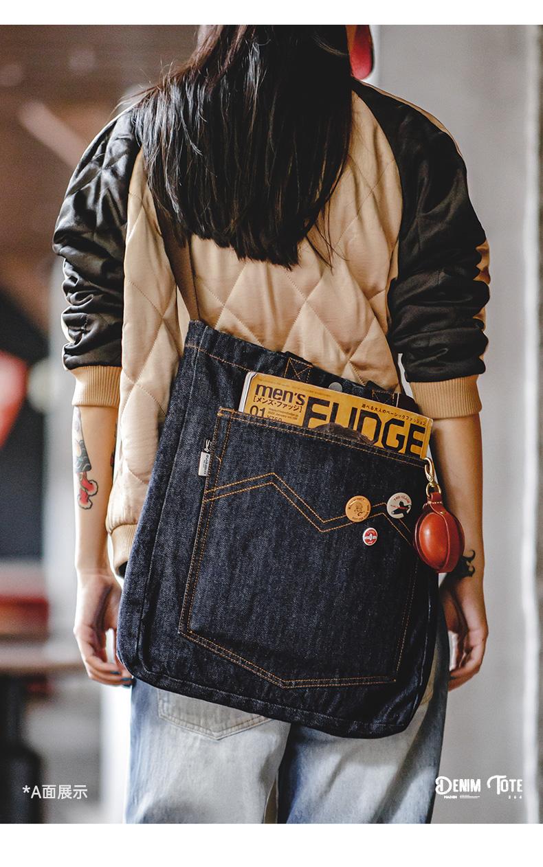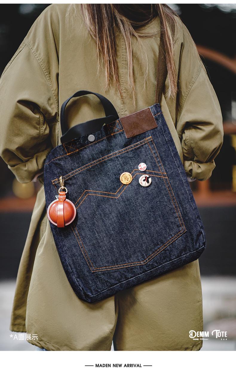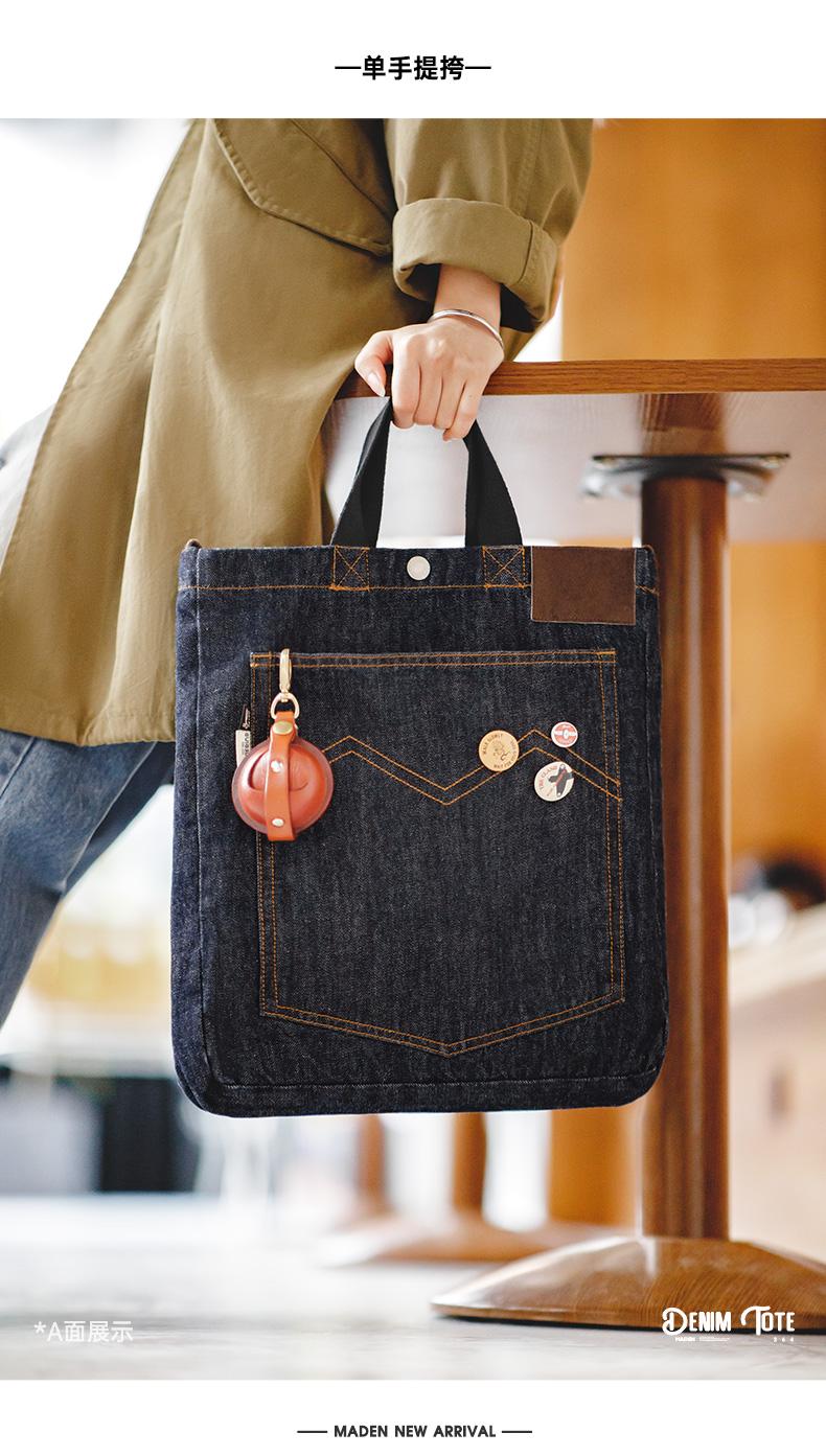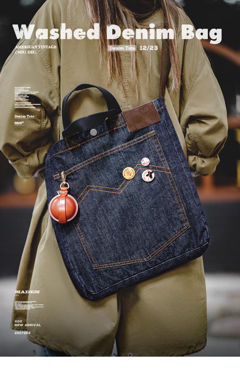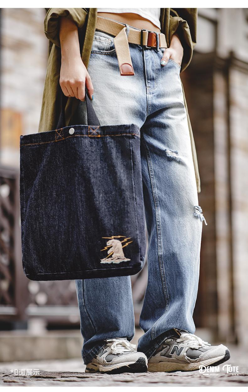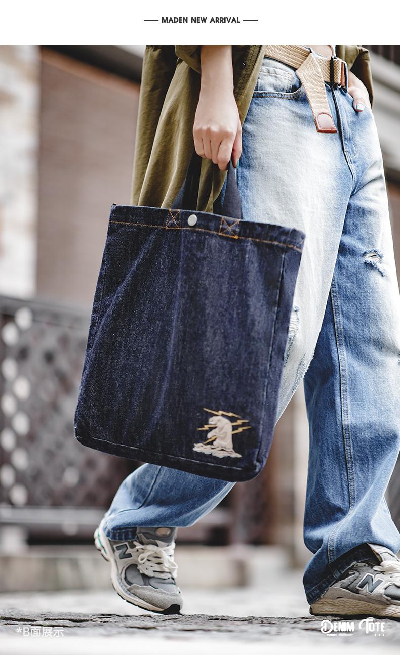 Maden Retro Denim Schultertasche, Unisex, Denim-Stickerei, große Kapazität, tragbare flache Tragetasche für Damen