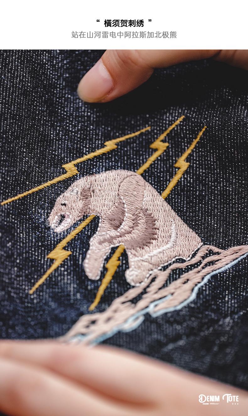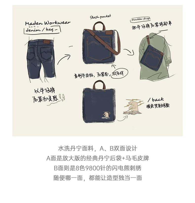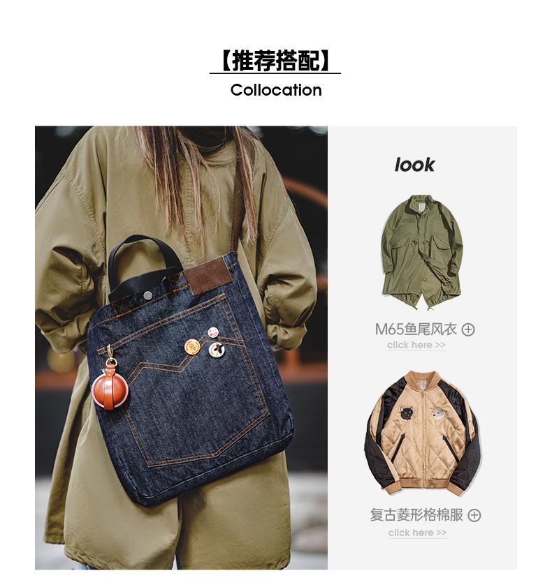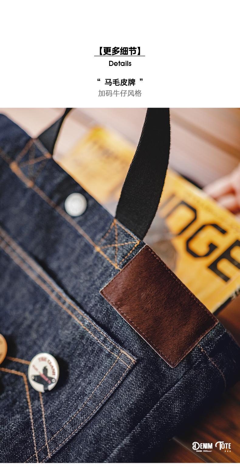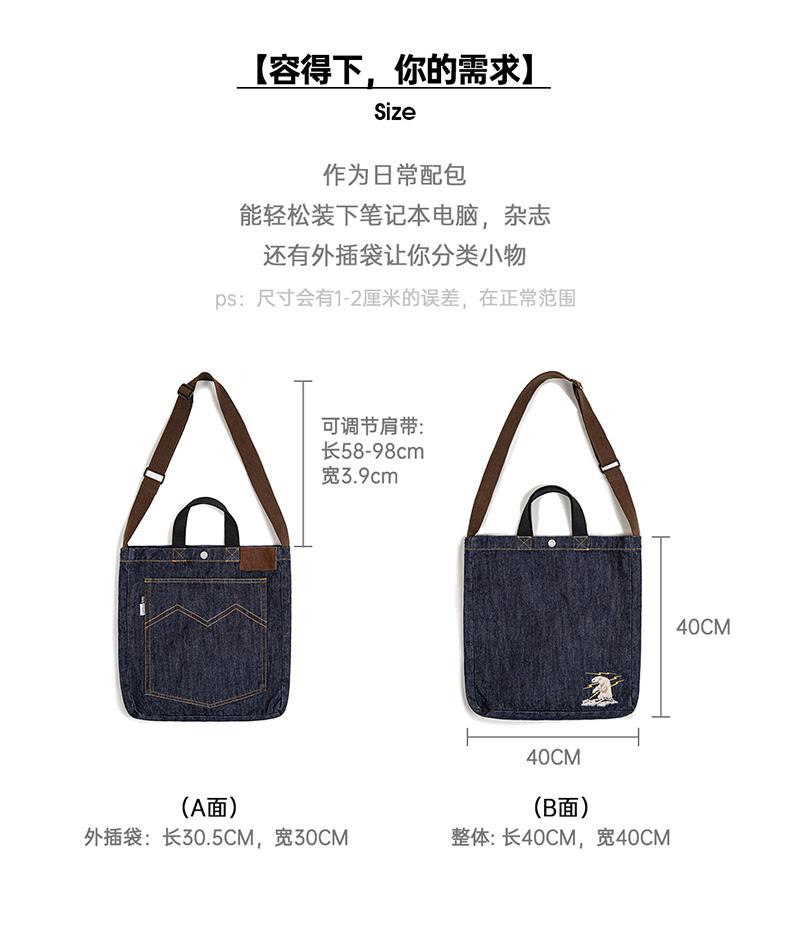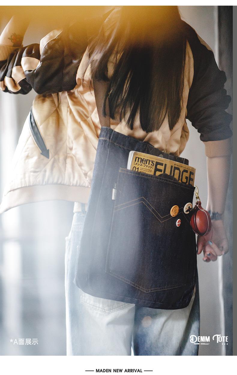 Maden Retro Denim Schultertasche, Unisex, Denim-Stickerei, große Kapazität, tragbare flache Tragetasche für Damen