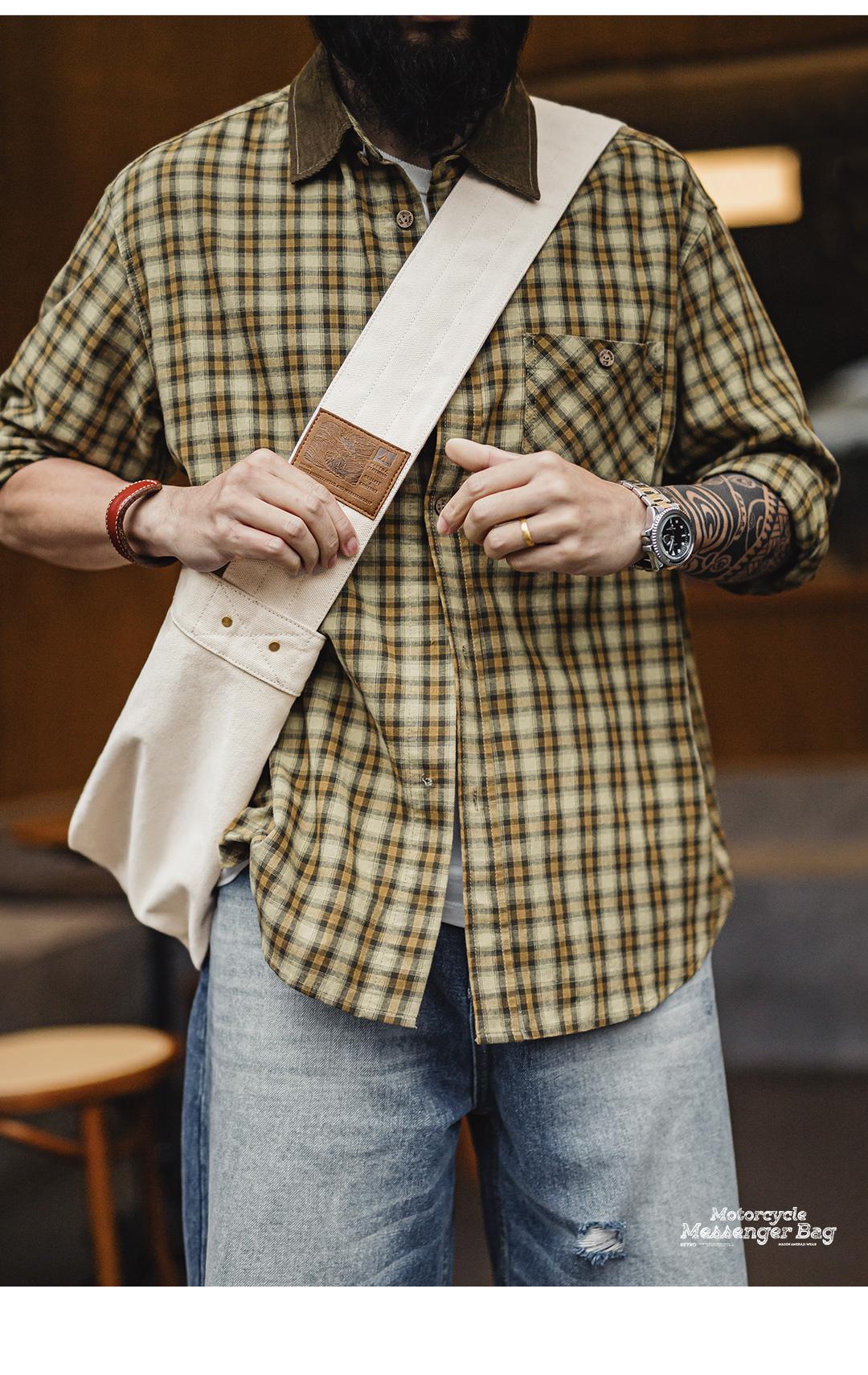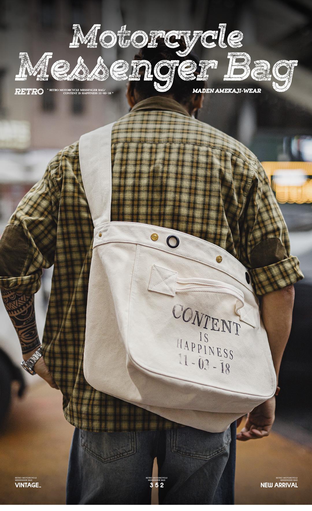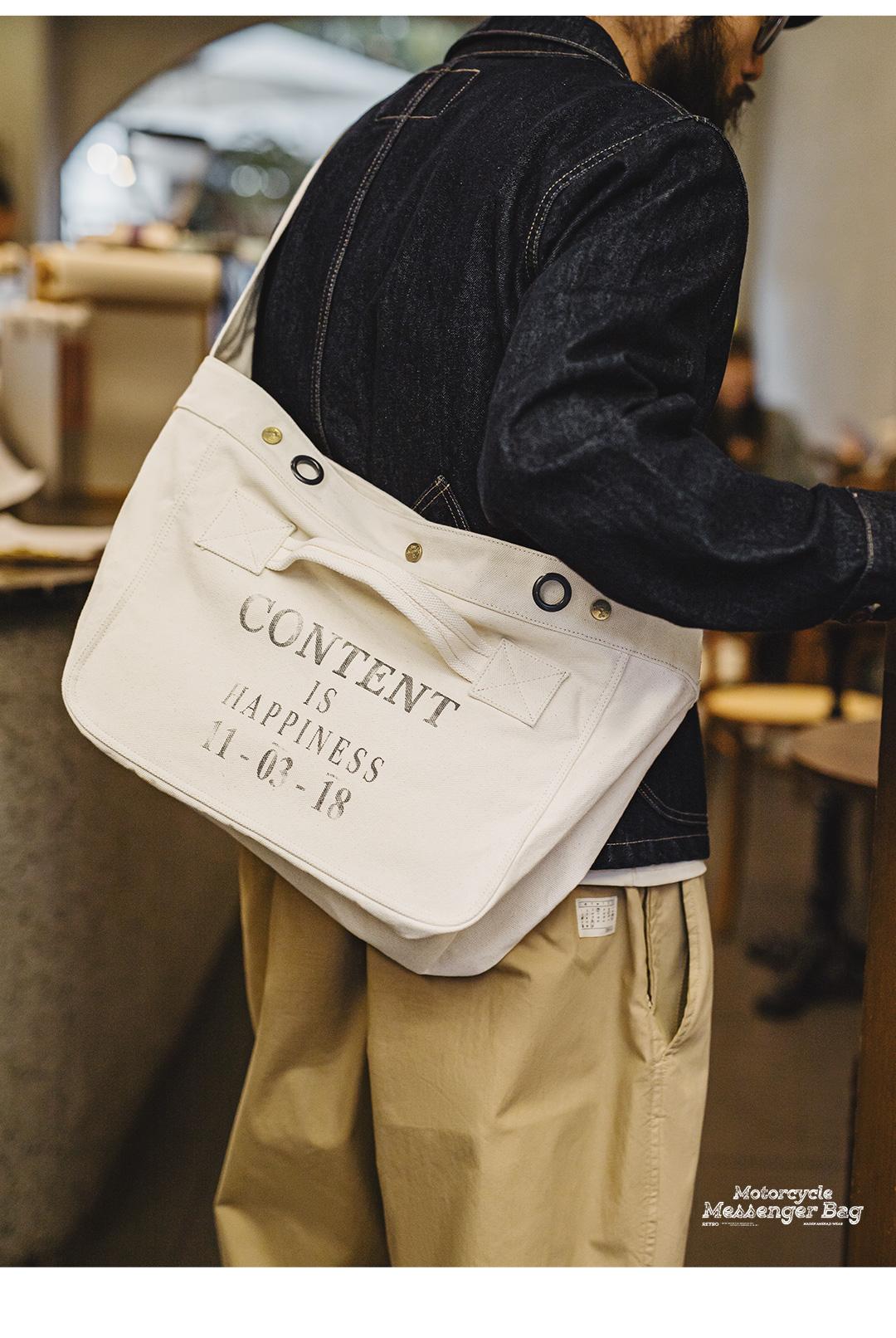 MADEN Retro Motorrad-Umhängetasche Unisex Großes Fassungsvermögen Messenger-Canvas-Tasche mit Buchstabenprint Retro-Schultertasche