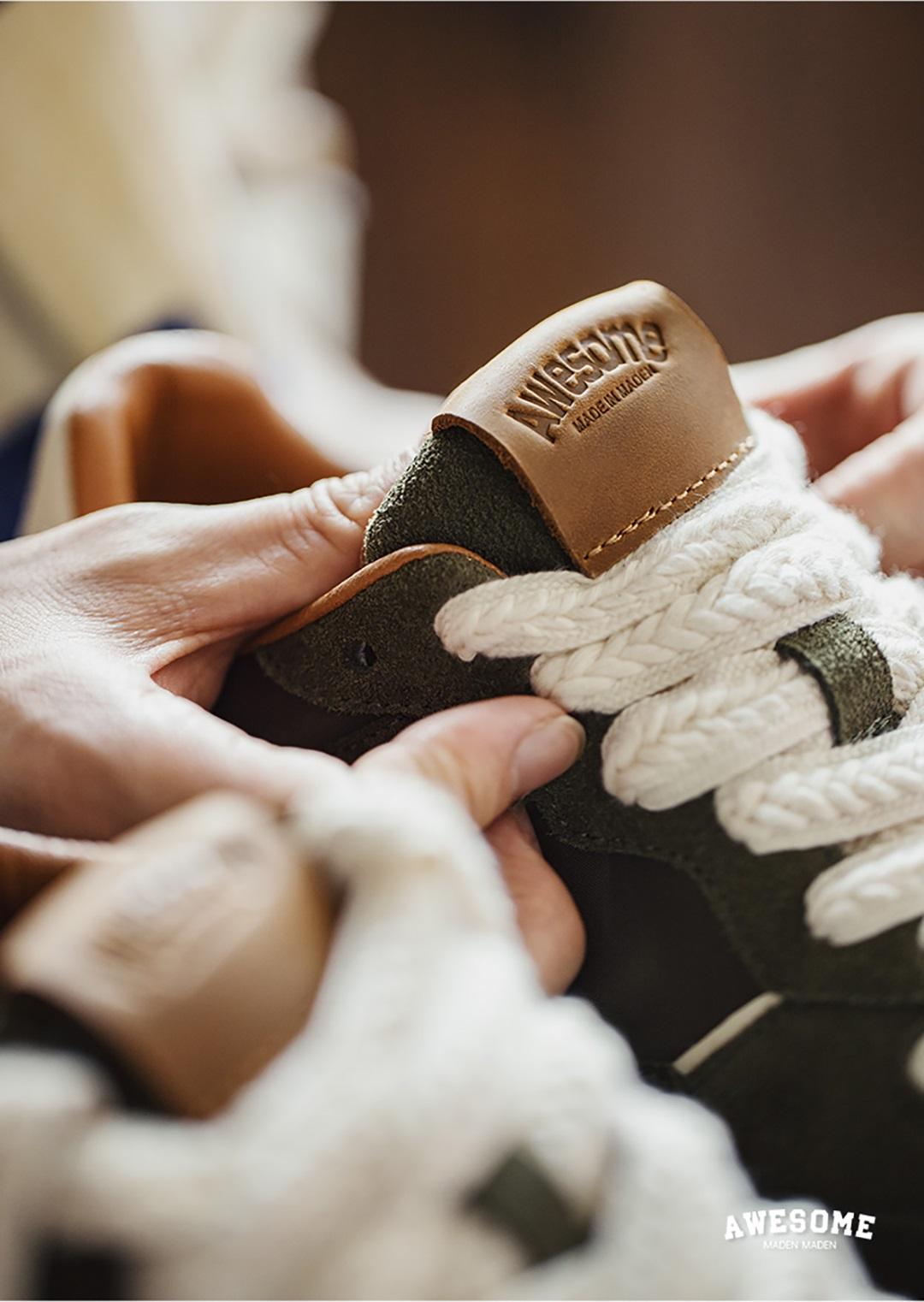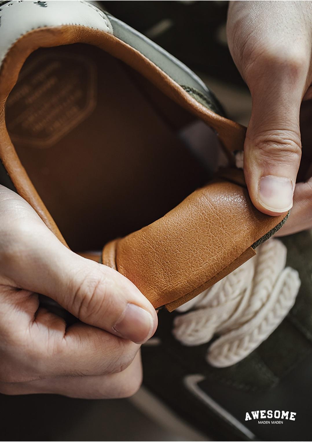 „AWESOME“-Etikett aus geprägtem Leder an der Schuhzunge
