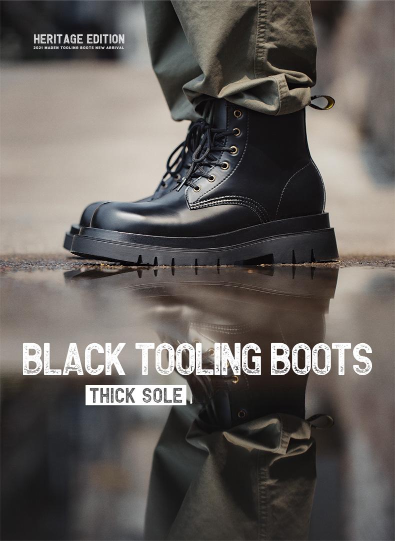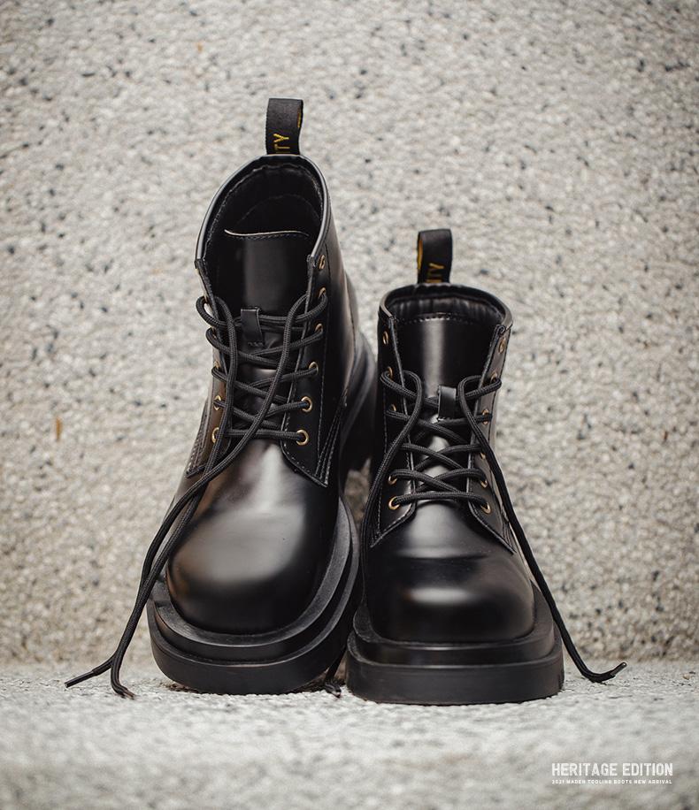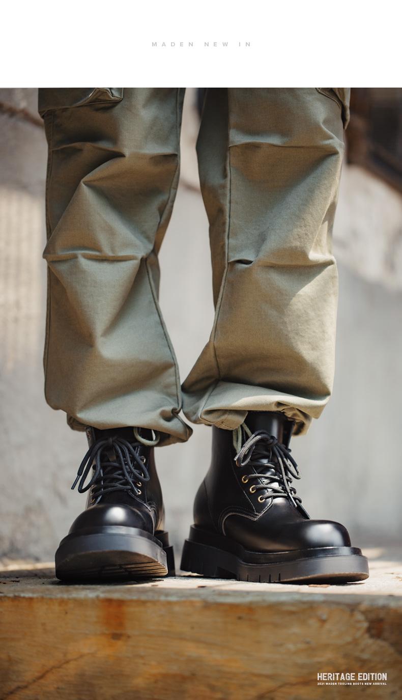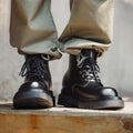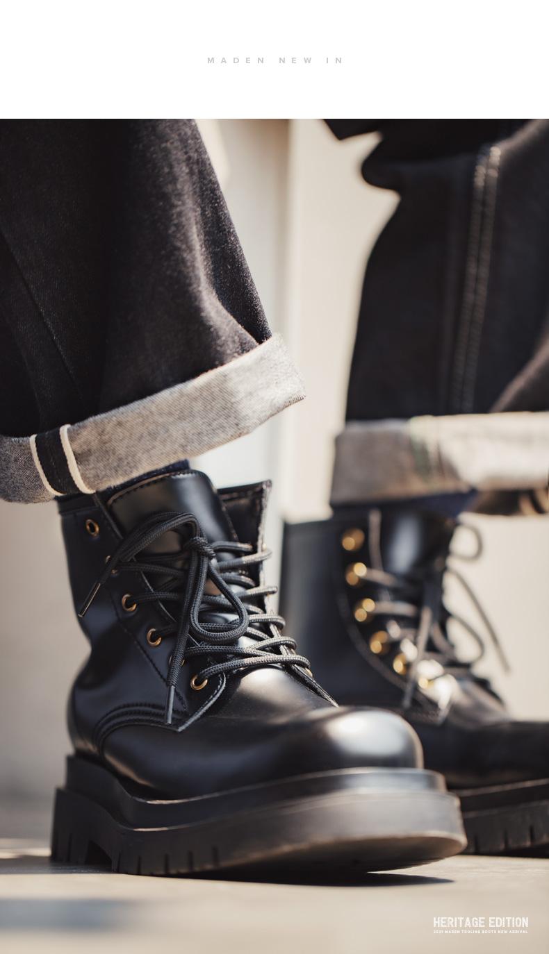 MADEN Herren-Lederstiefel im klassischen Stil – Britische mittelhohe Schnürstiefel für Motorradfahrer