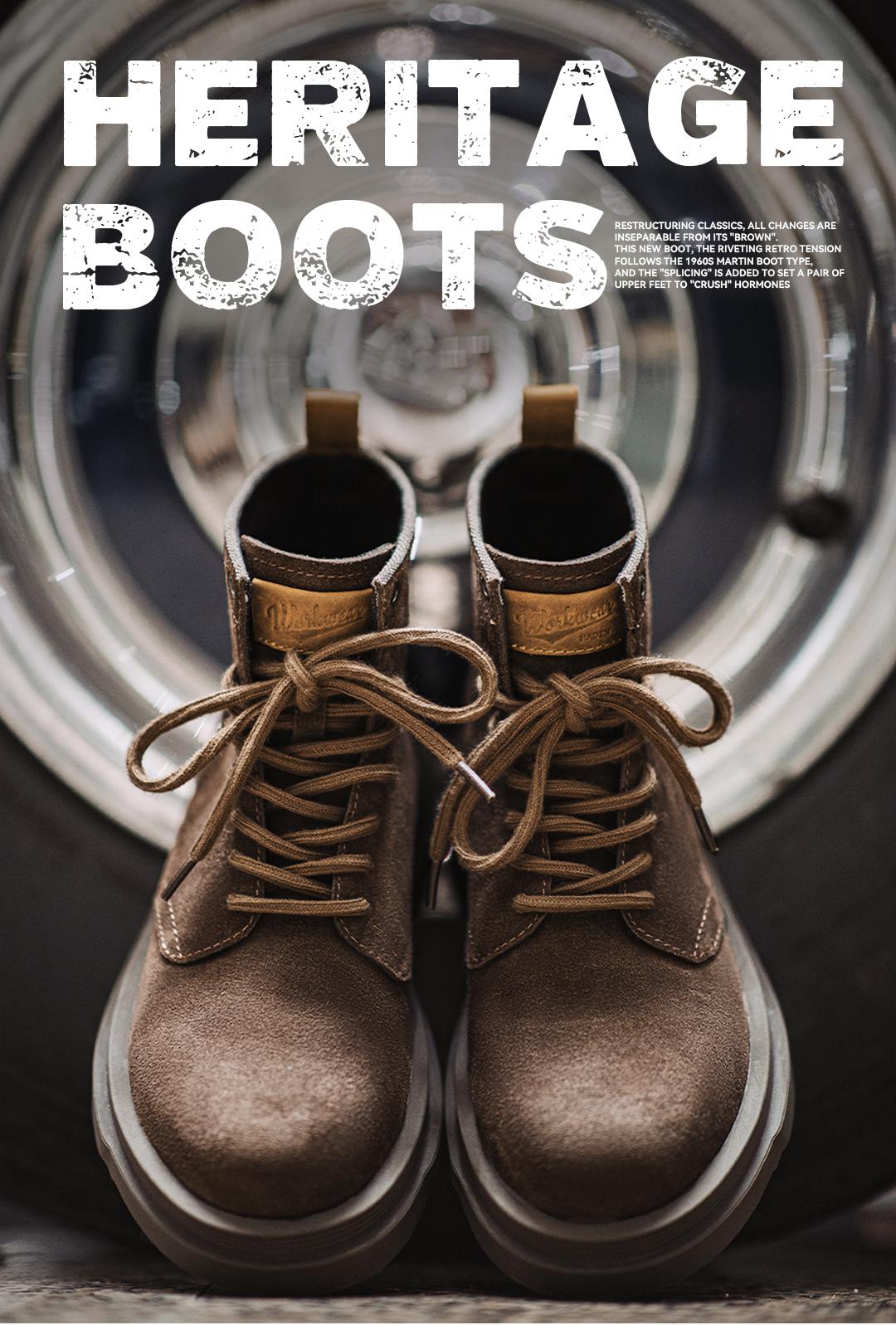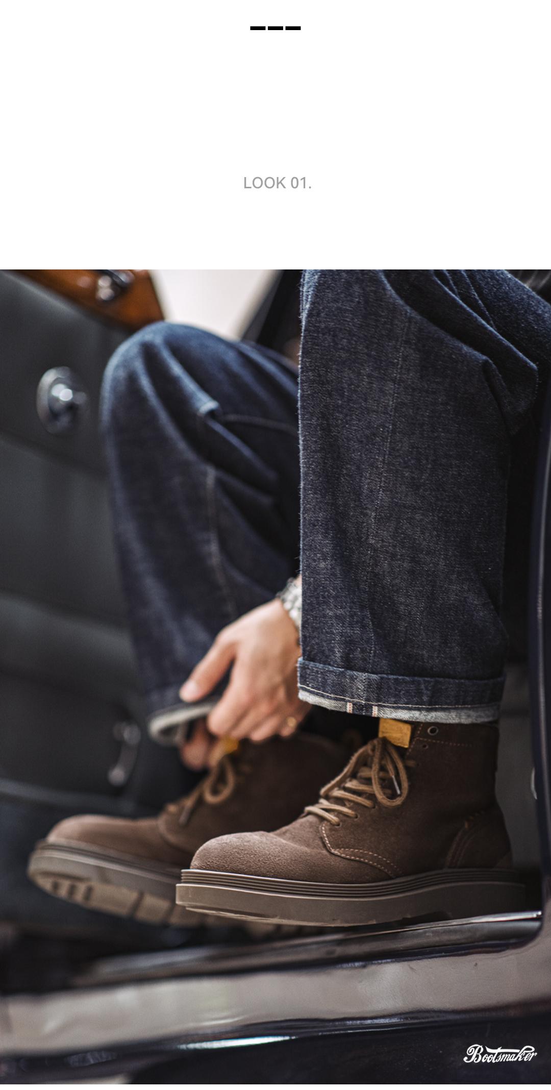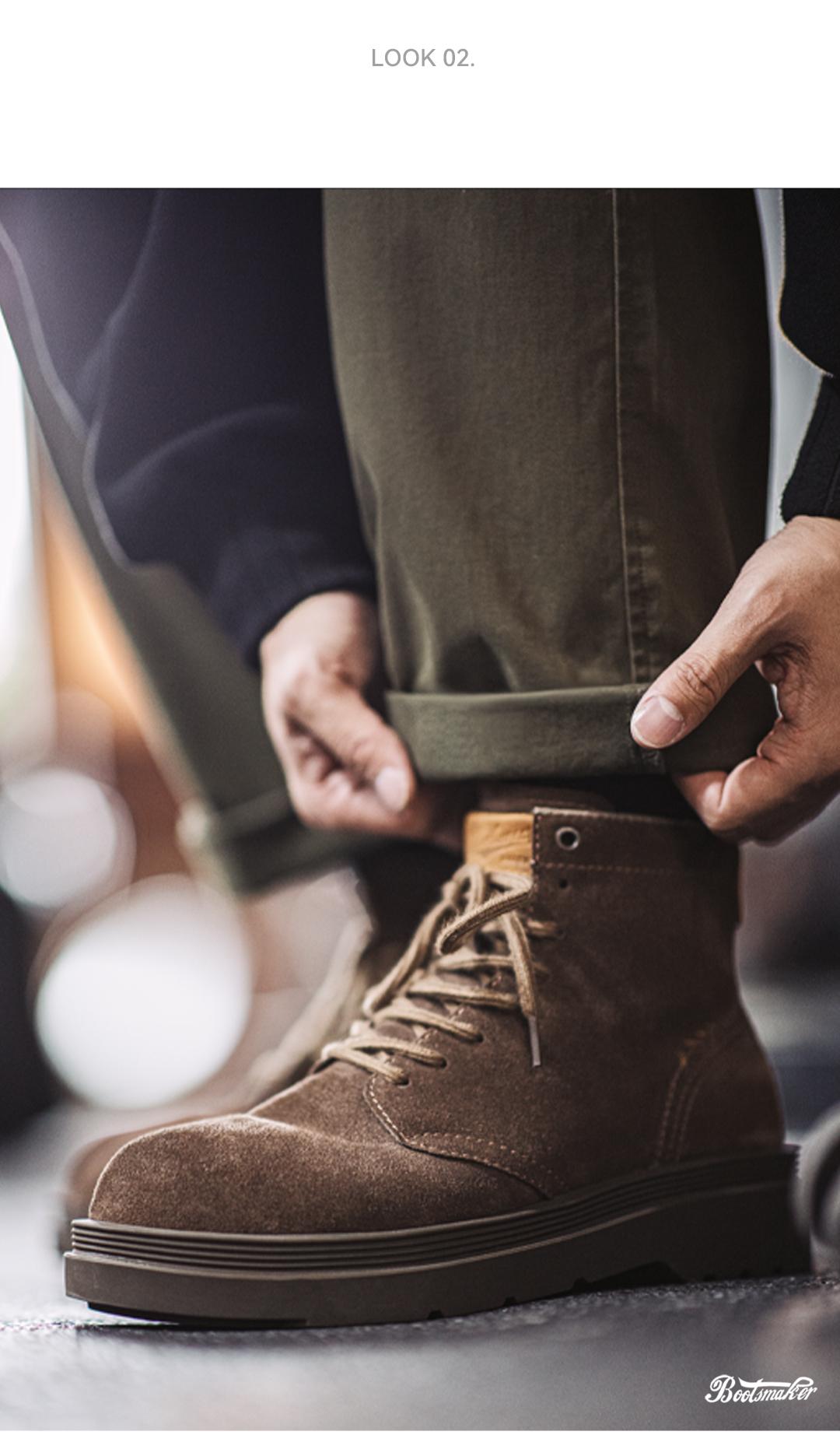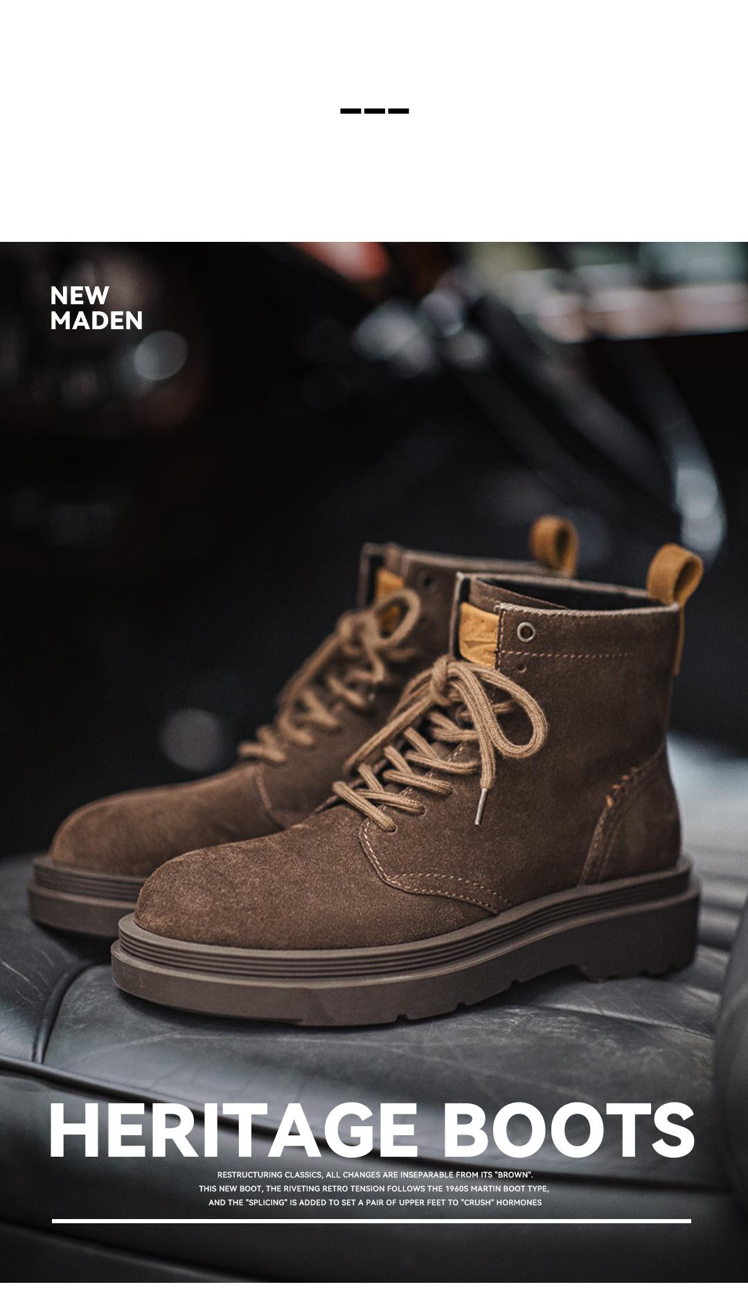 MADEN Retro „Wilderness“-Stiefel aus Wildleder, mittelhoch geschnitten, dicke Sohle, strapazierfähige Qualität, vielseitige Outdoor- und Freizeitschuhe aus Leder