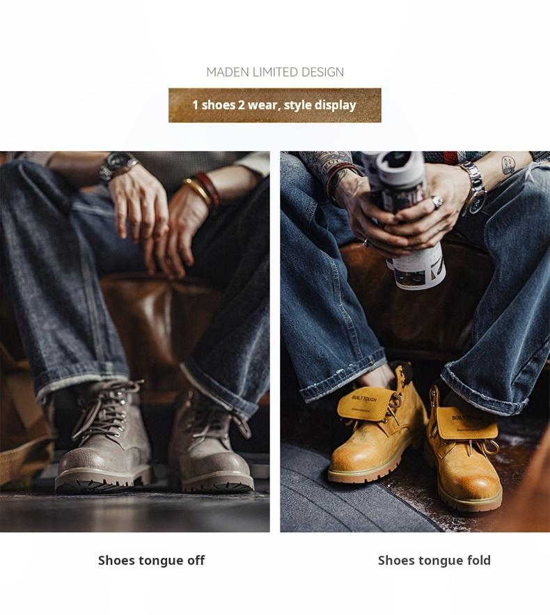 MADEN Unbounded Flip-Cover Leder-Arbeitsstiefel