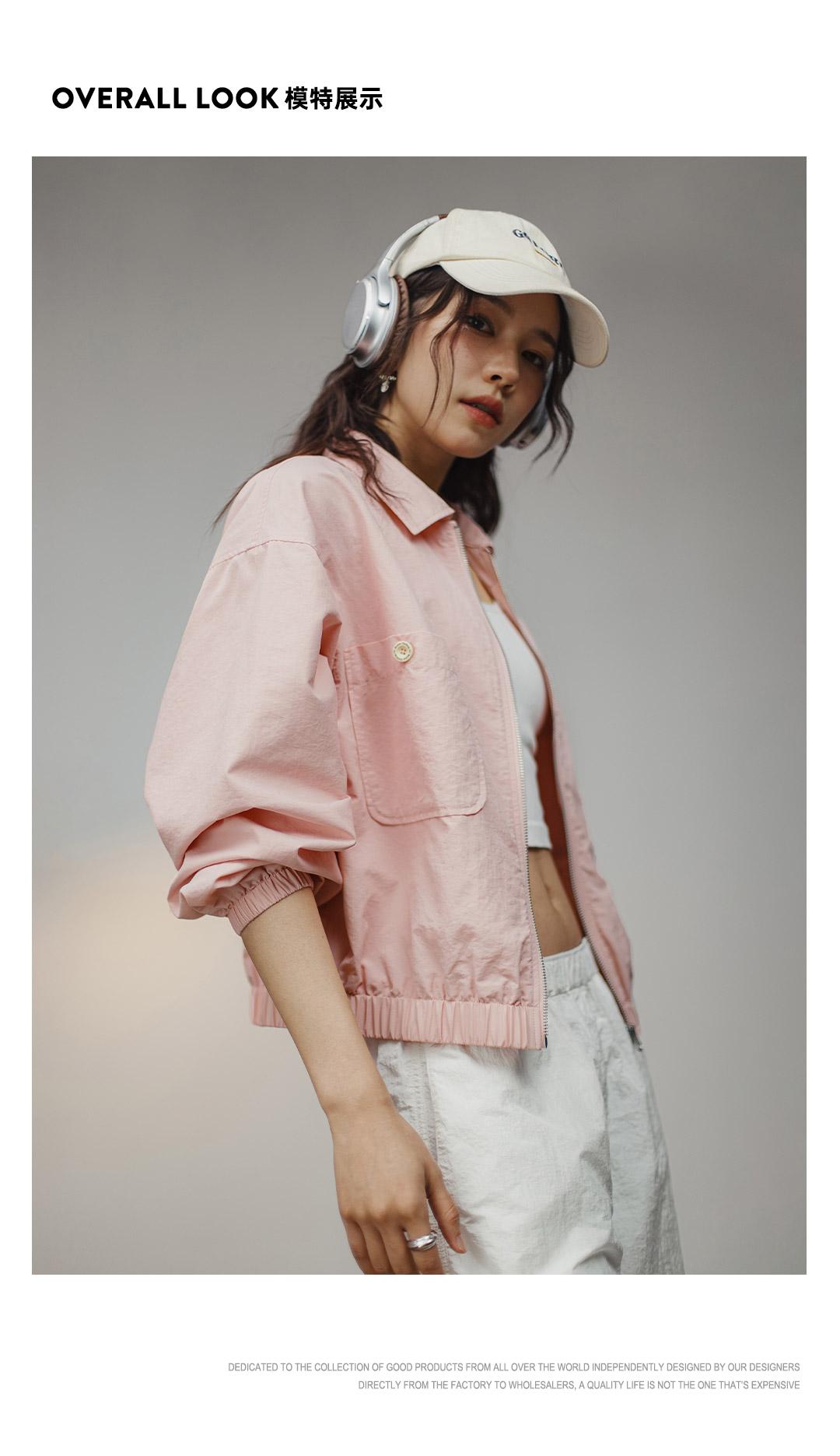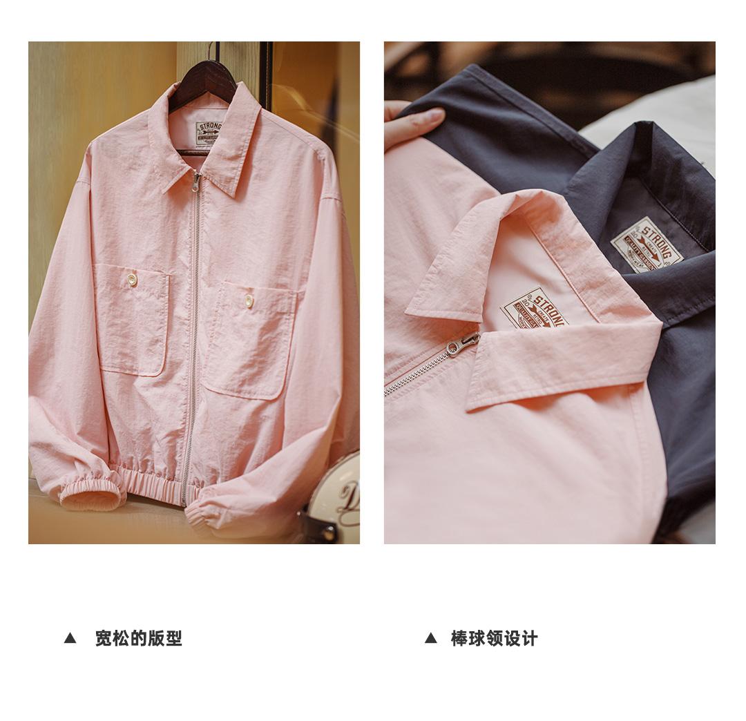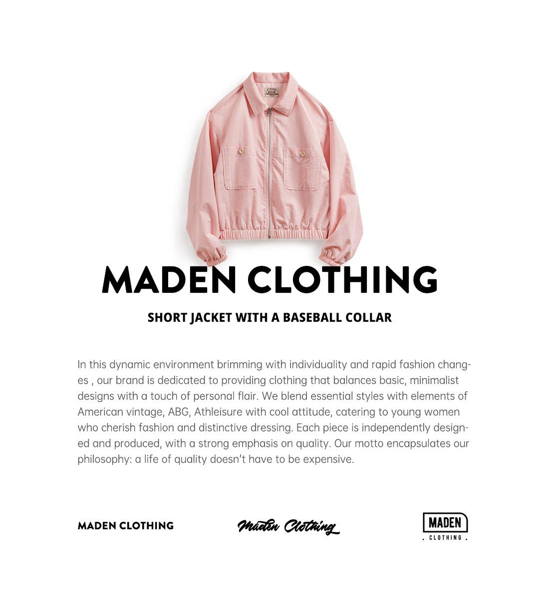 Maden Damen-Baseballkragenjacke – Lässiger rosa Mantel