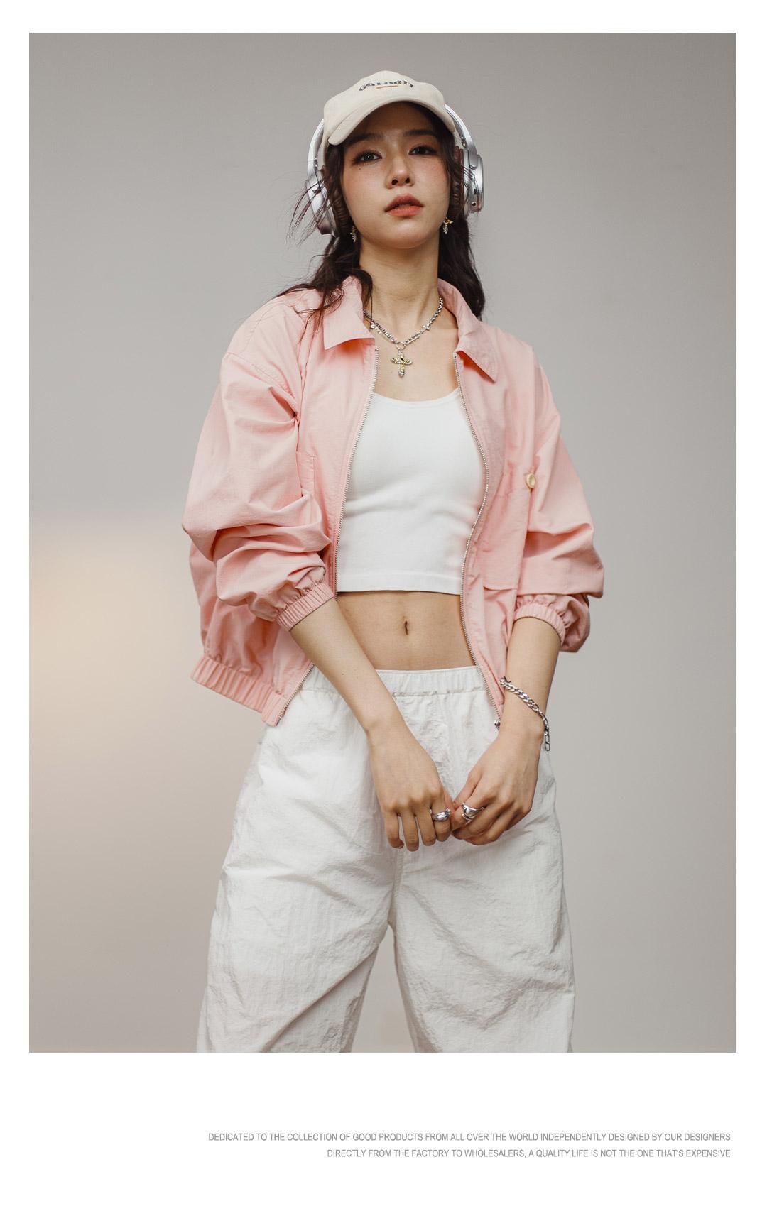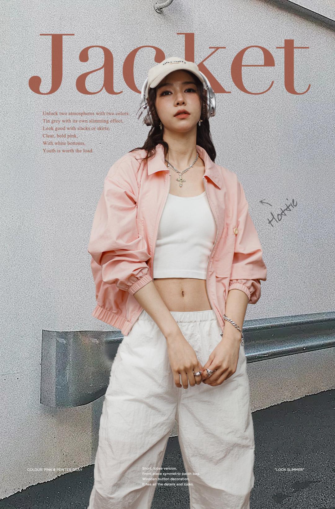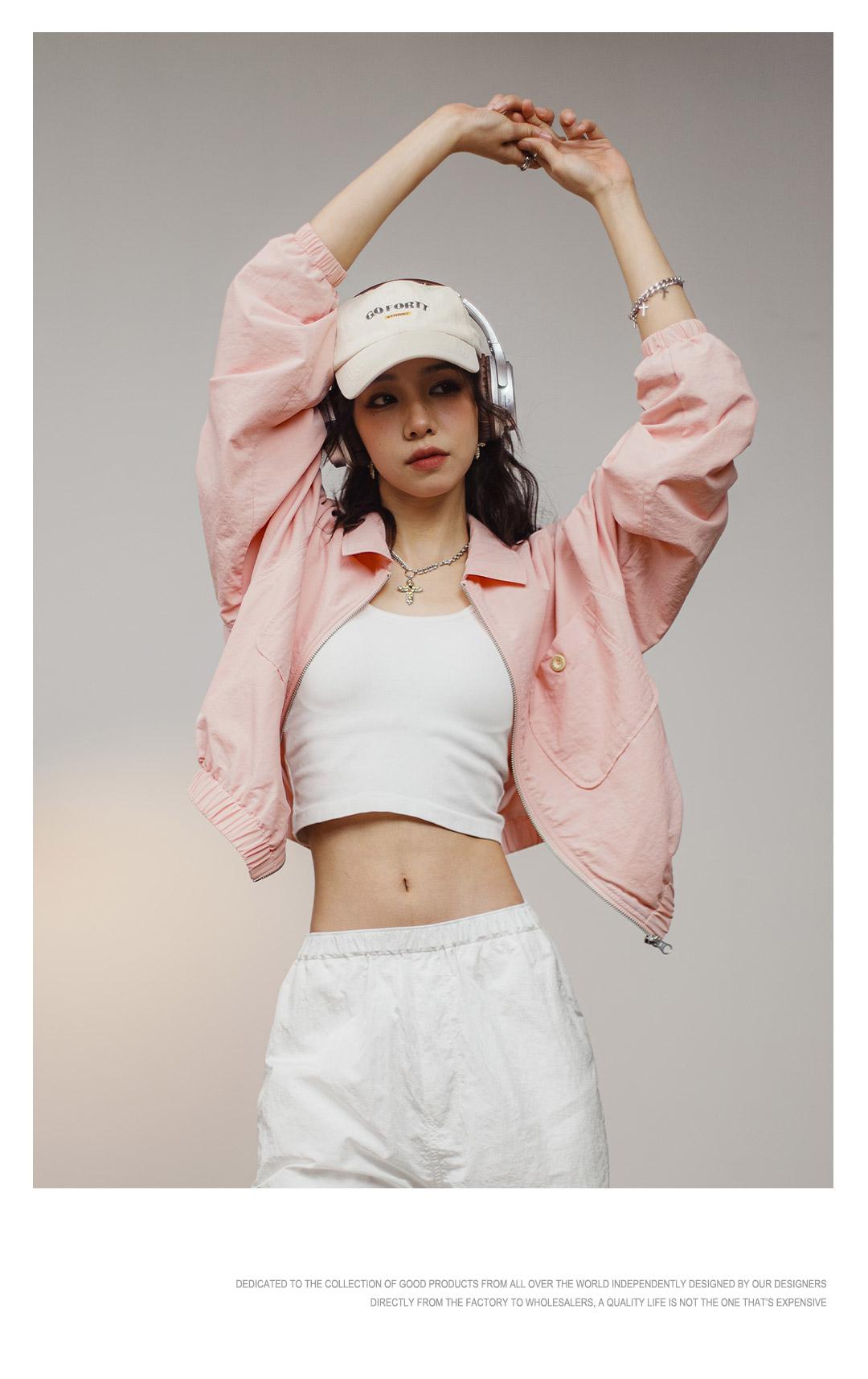 Maden Damen-Baseballkragenjacke – Lässiger rosa Mantel