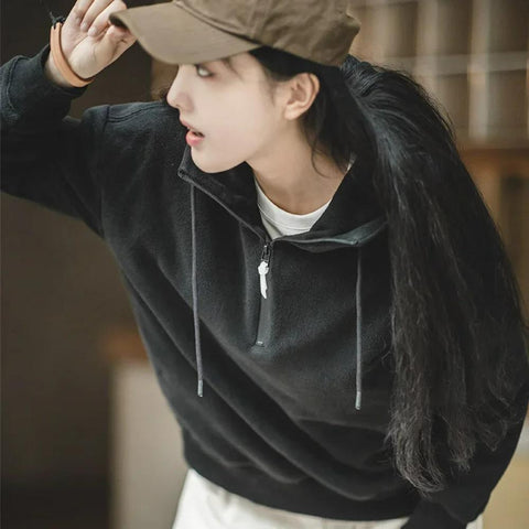 MADEN Retro Weiße Baumwollseed Straight Jeans, lockere Passform, weites Bein, Freizeithose mit Taschen, Damenhose für Frühling und Herbst