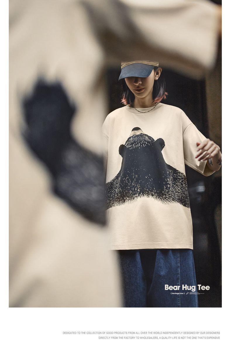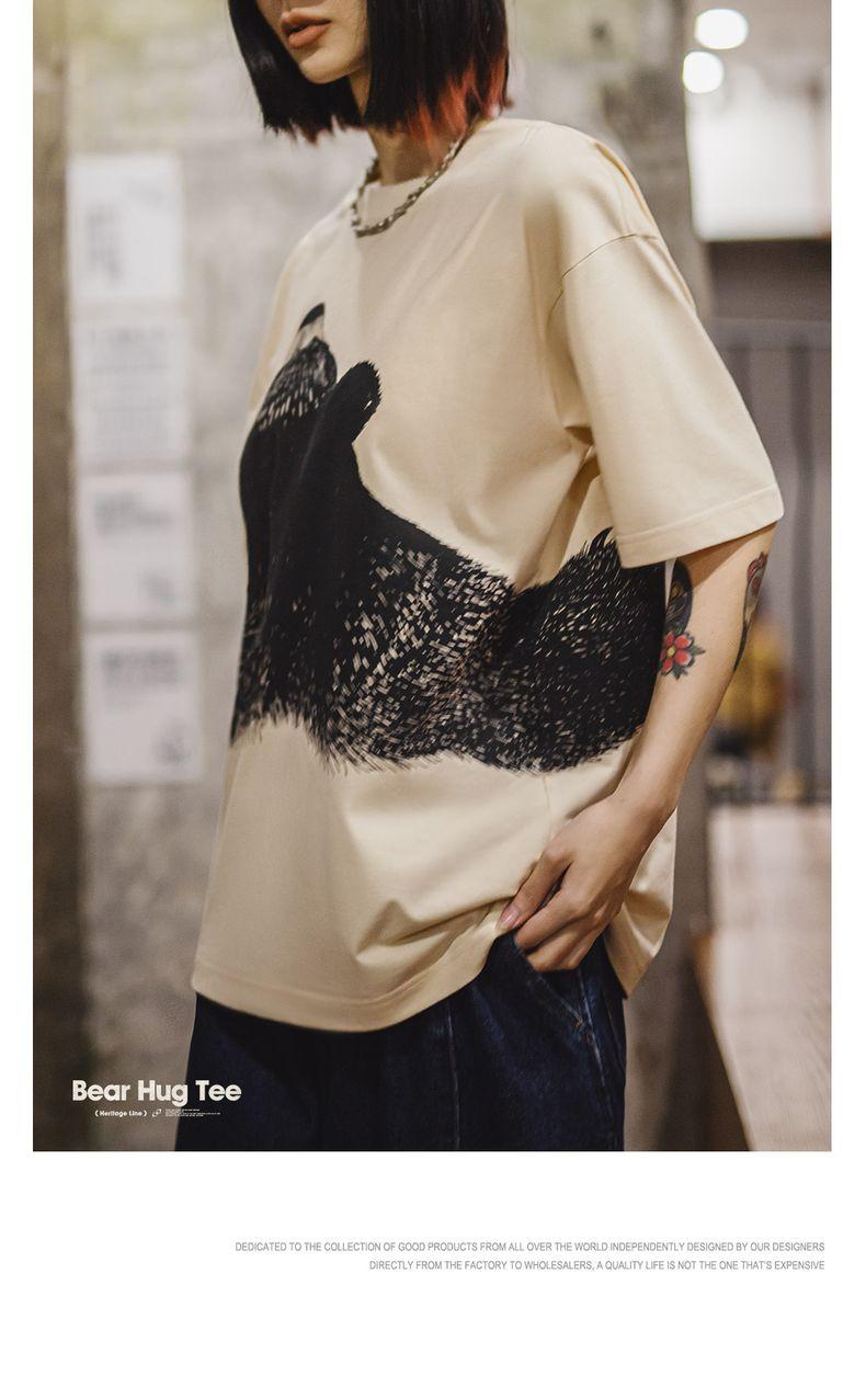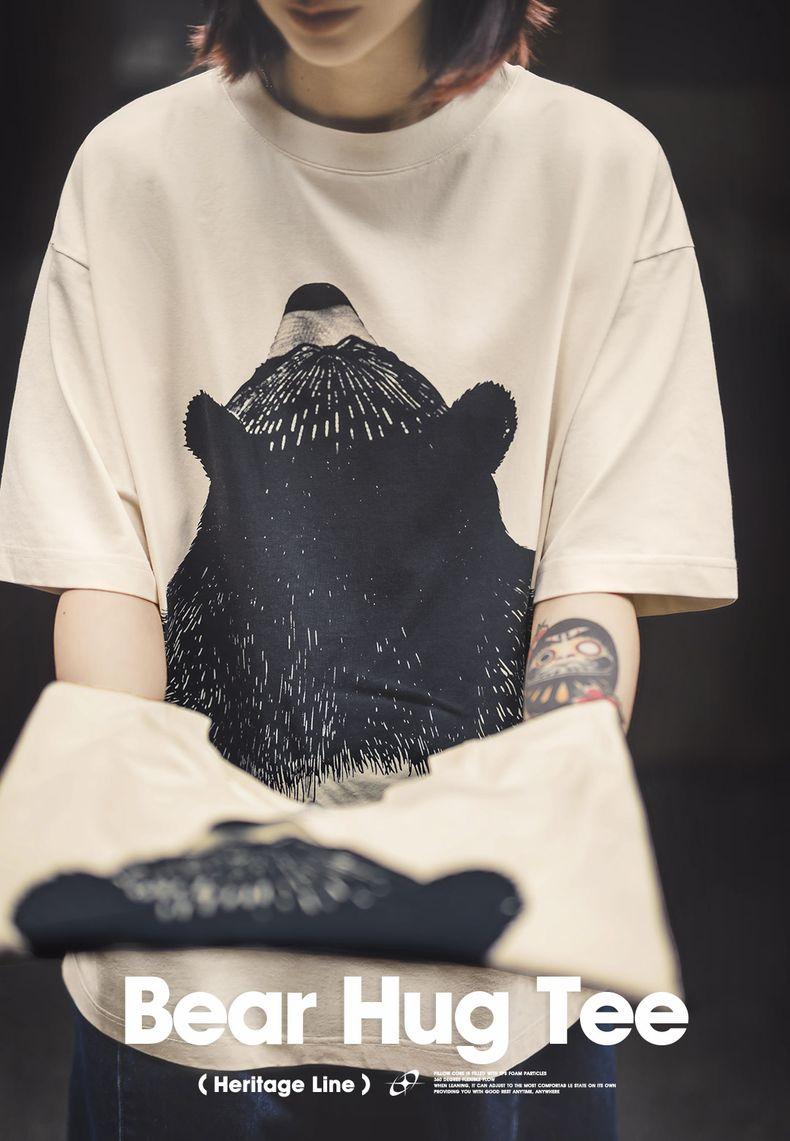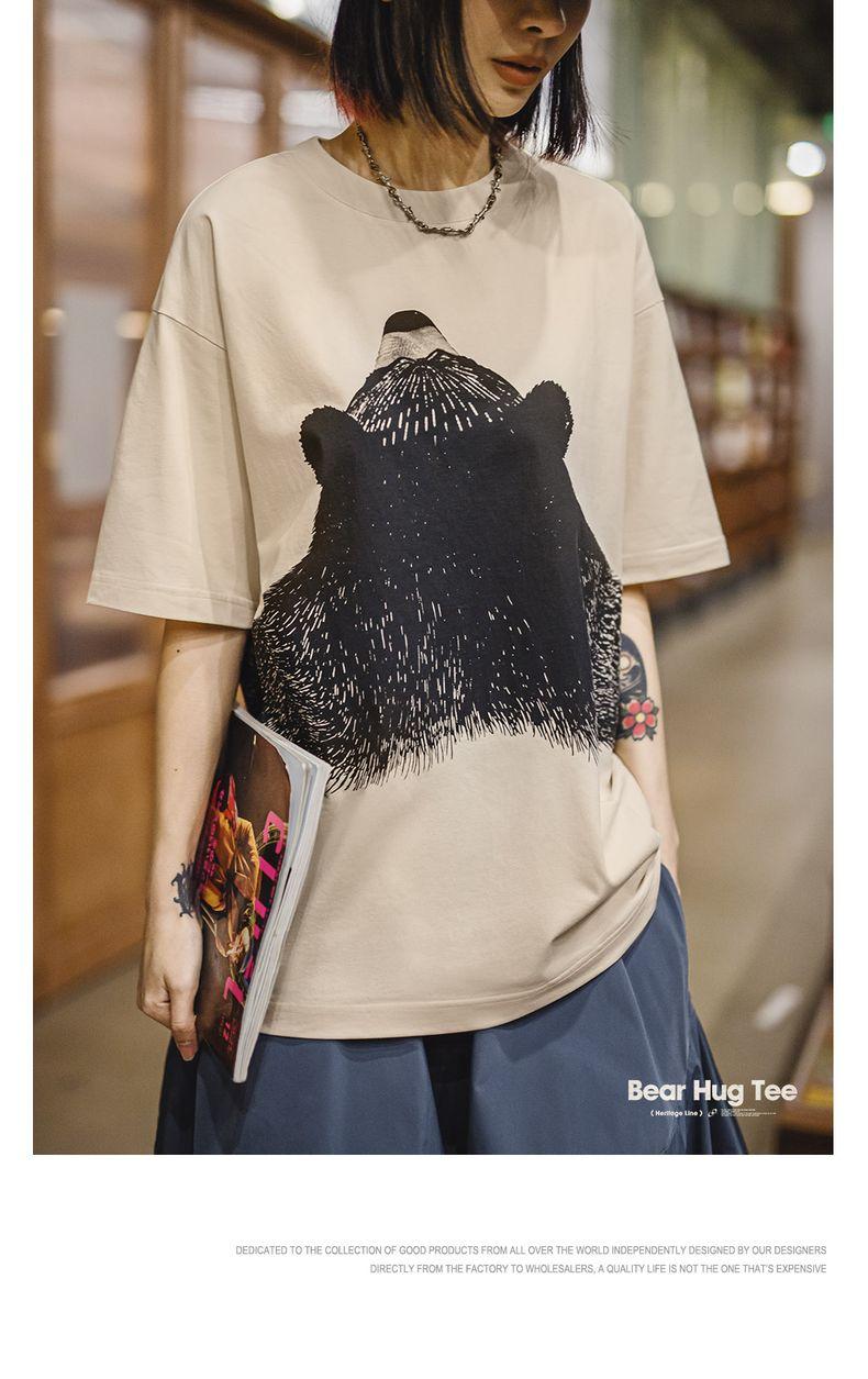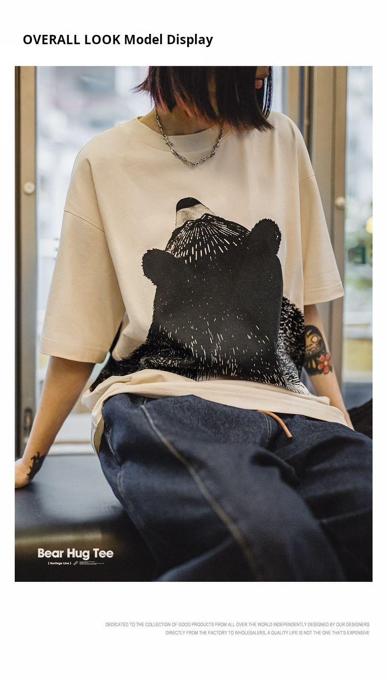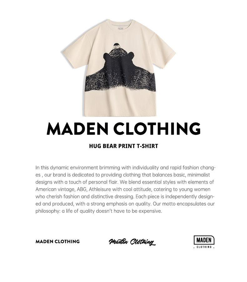 MADEN Oversized Lazy Bear Illustration Tee - Japanisches minimalistisches T-Shirt mit überschnittenen Schultern, schmale Passform, Kurzarm, Damen Sommer