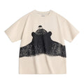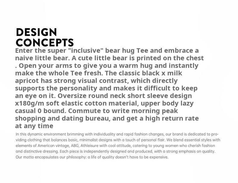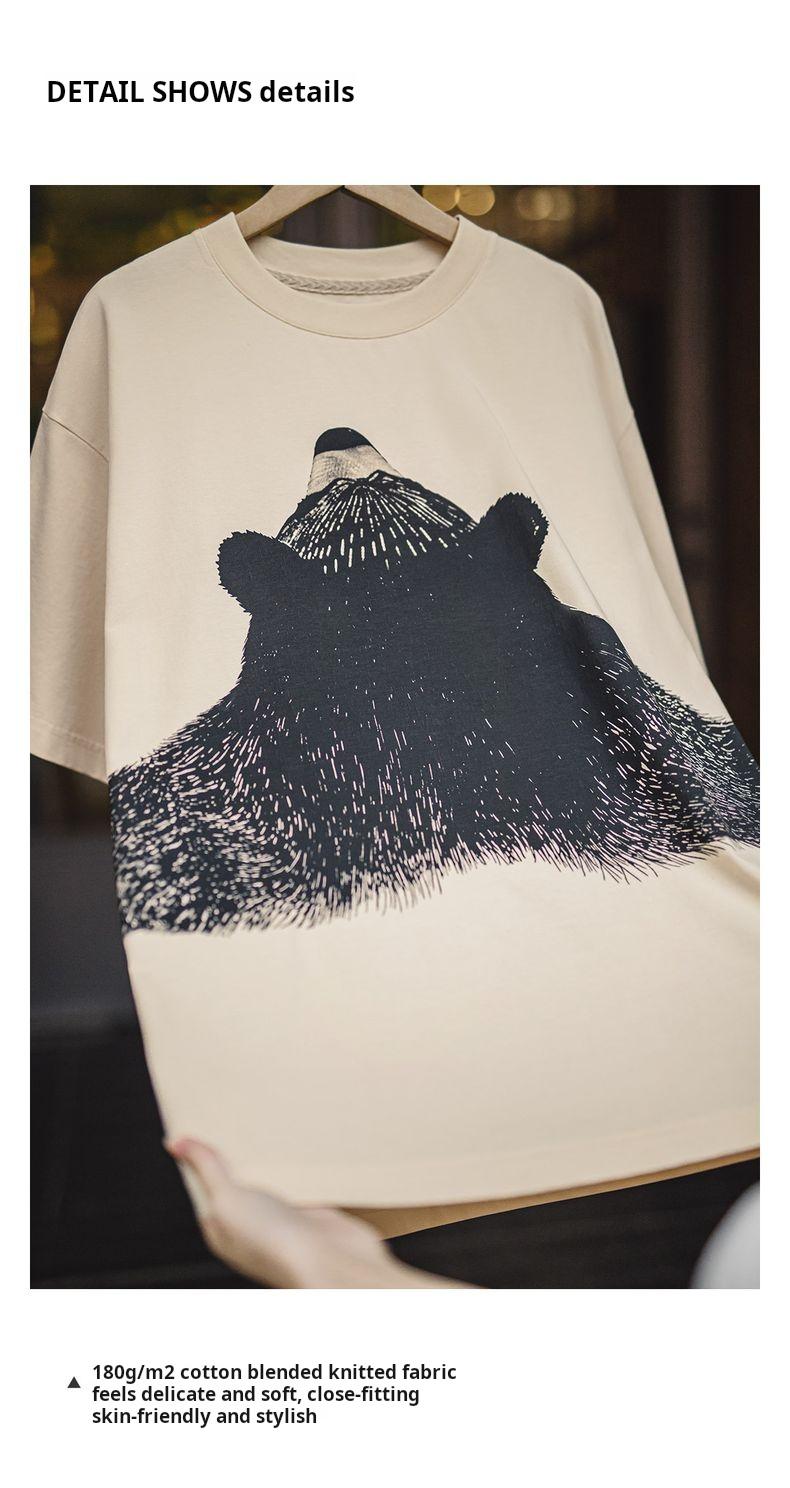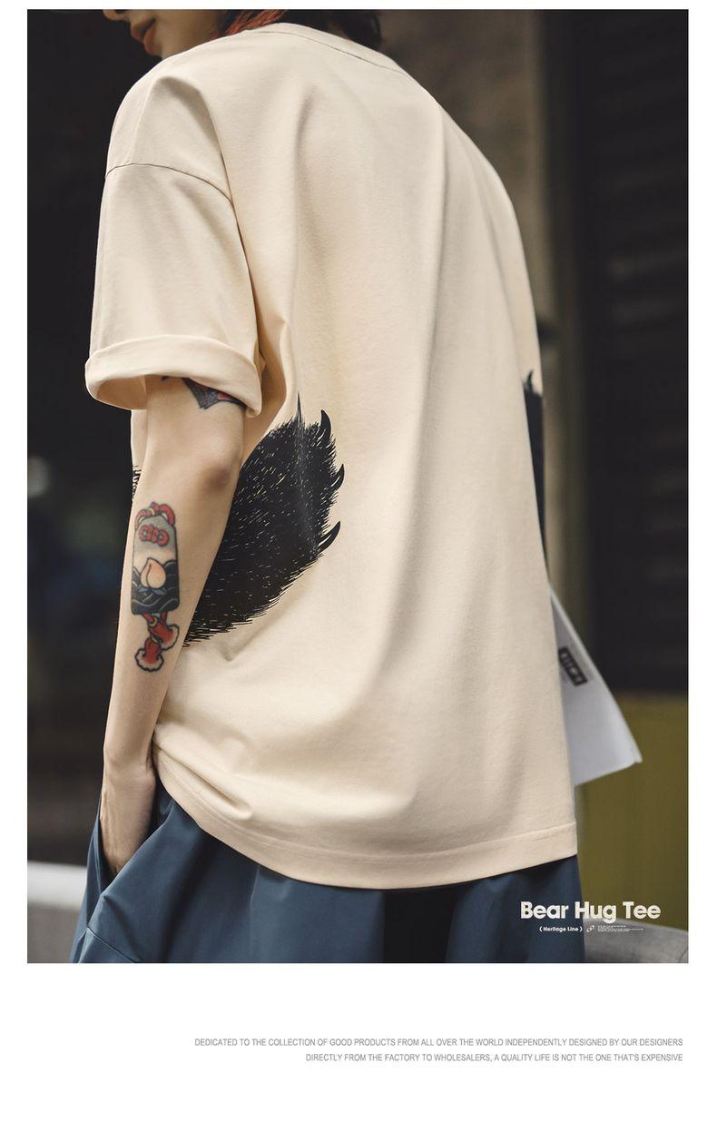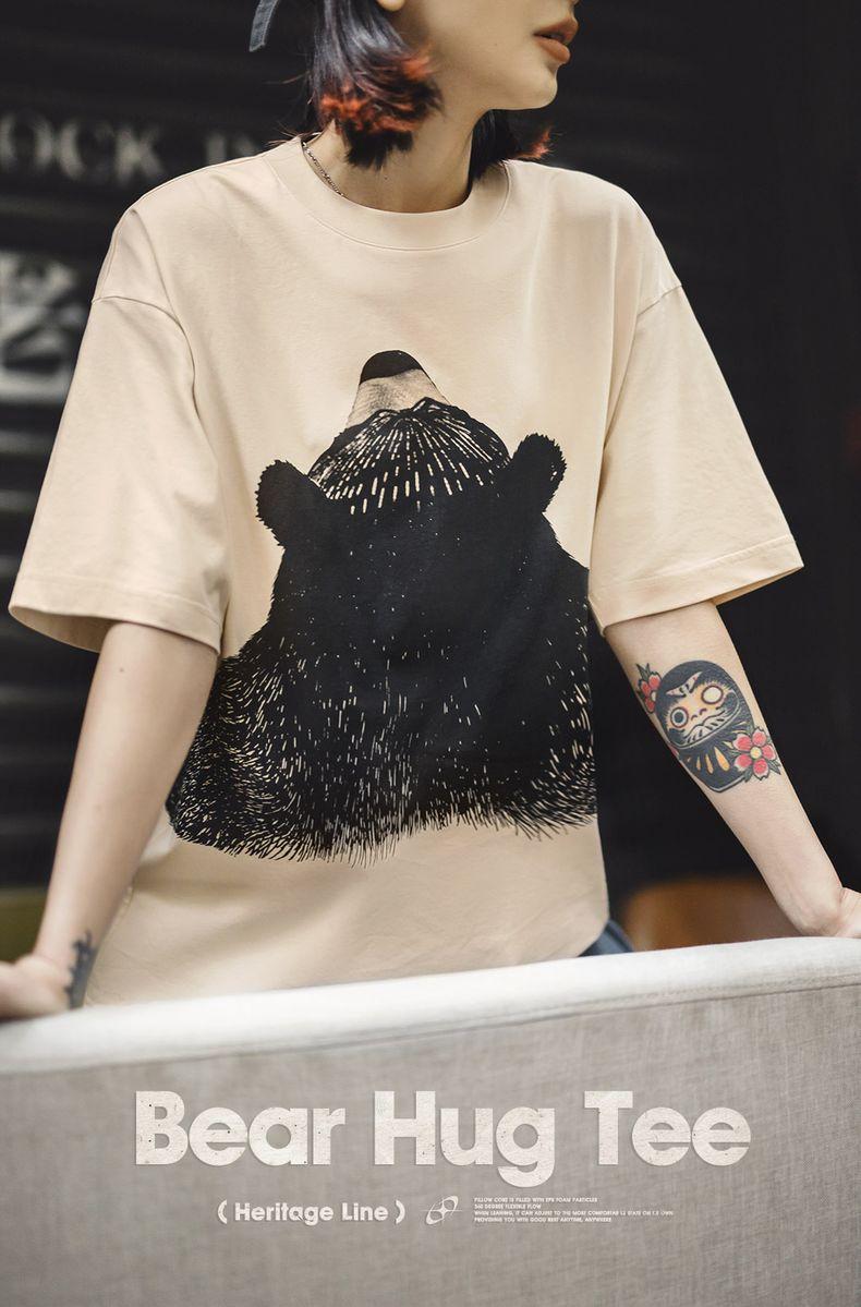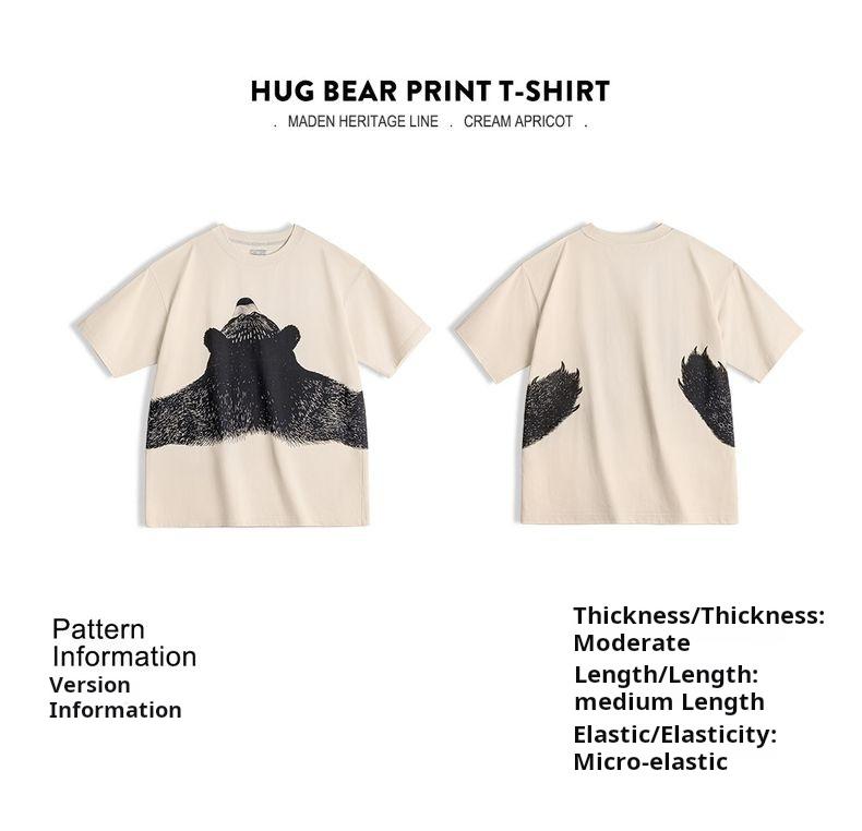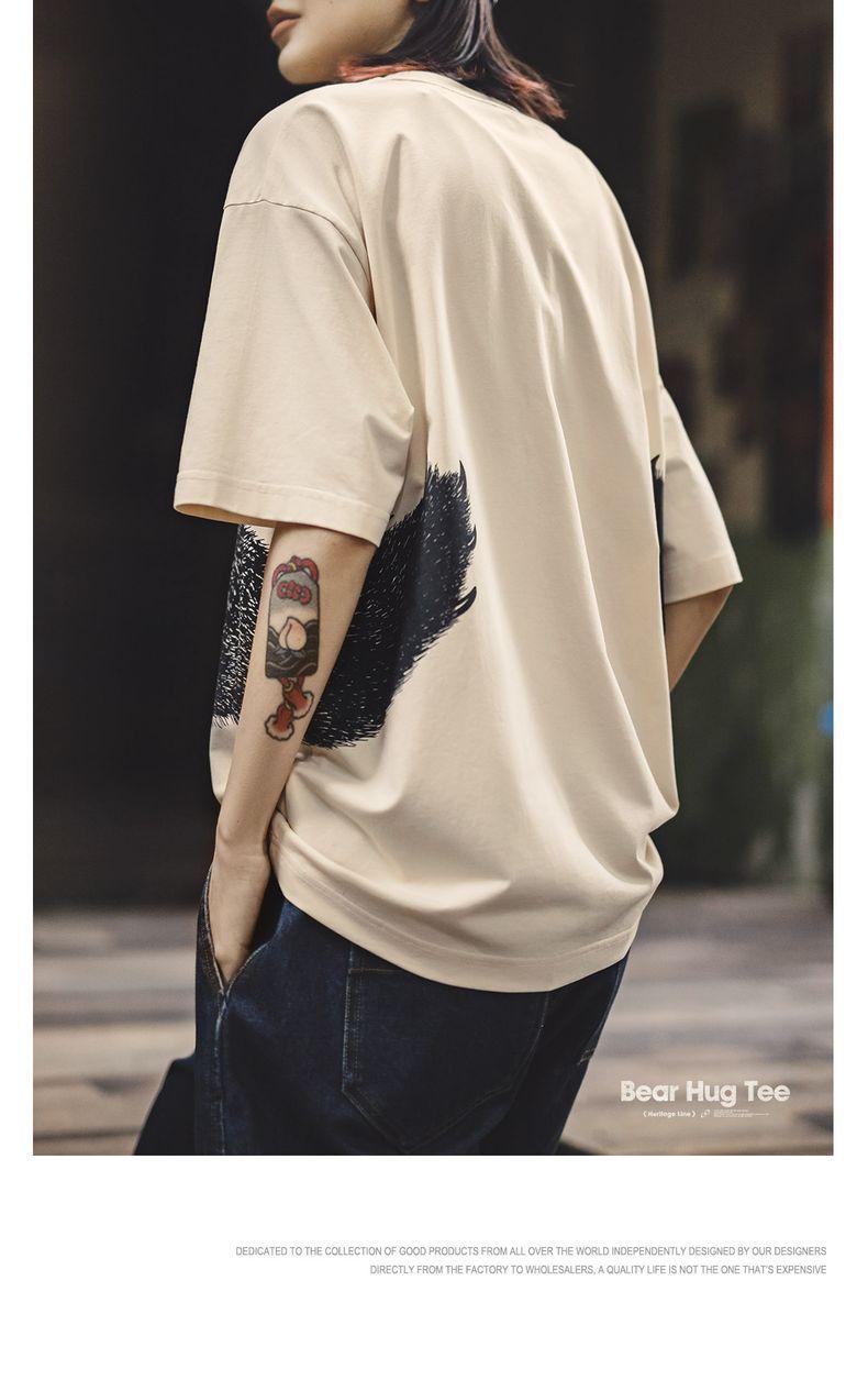 MADEN Oversized Lazy Bear Illustration Tee - Japanisches minimalistisches T-Shirt mit überschnittenen Schultern, schmale Passform, Kurzarm, Damen Sommer