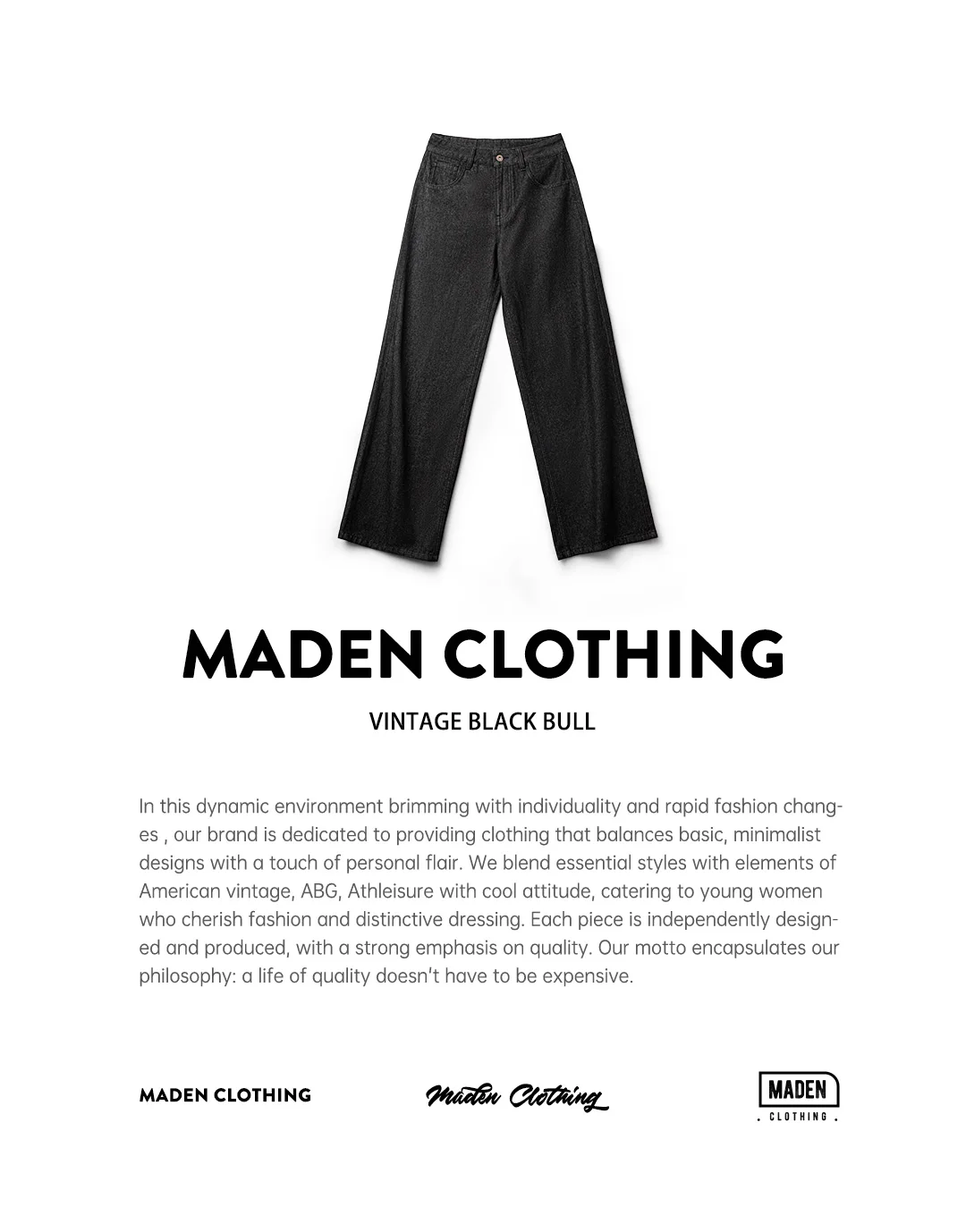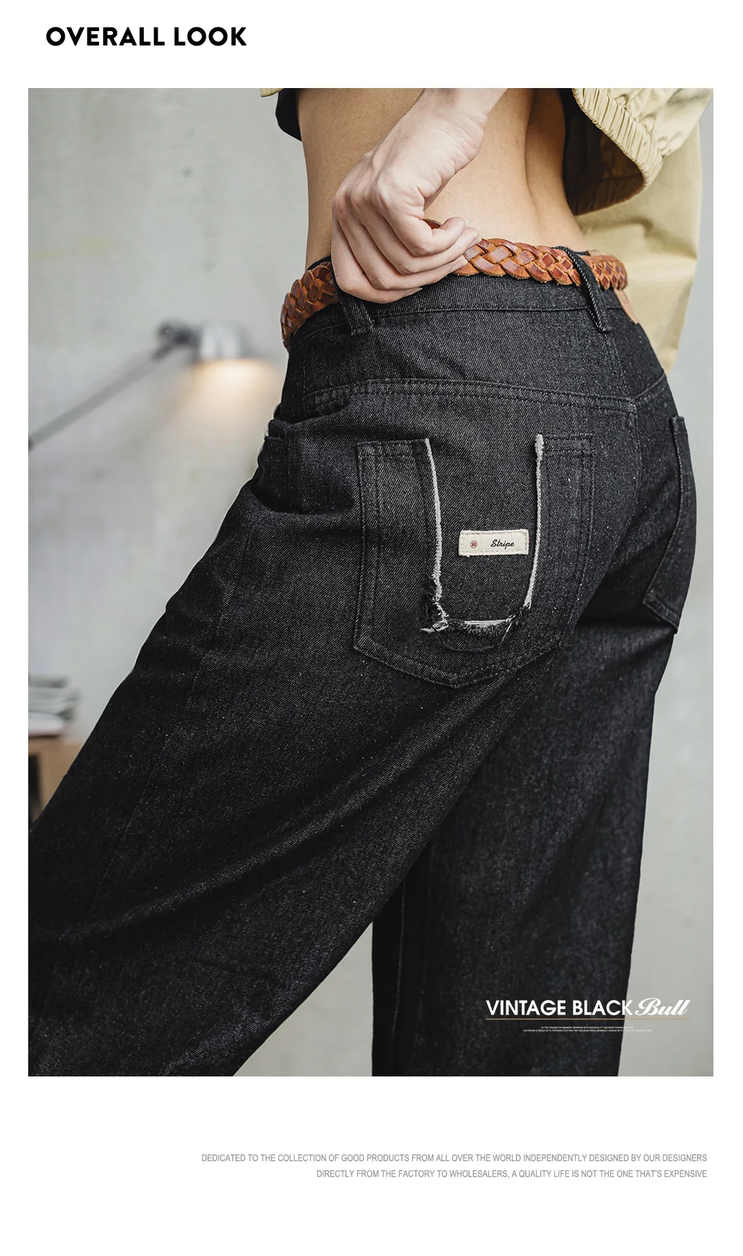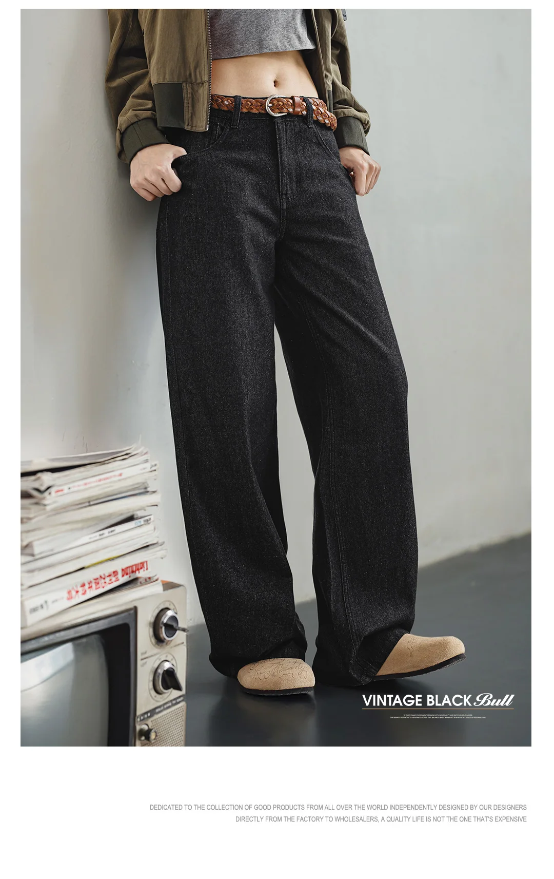 MADEN Damen Retro-Jeans Schwarz – Gerader, lockerer Schnitt