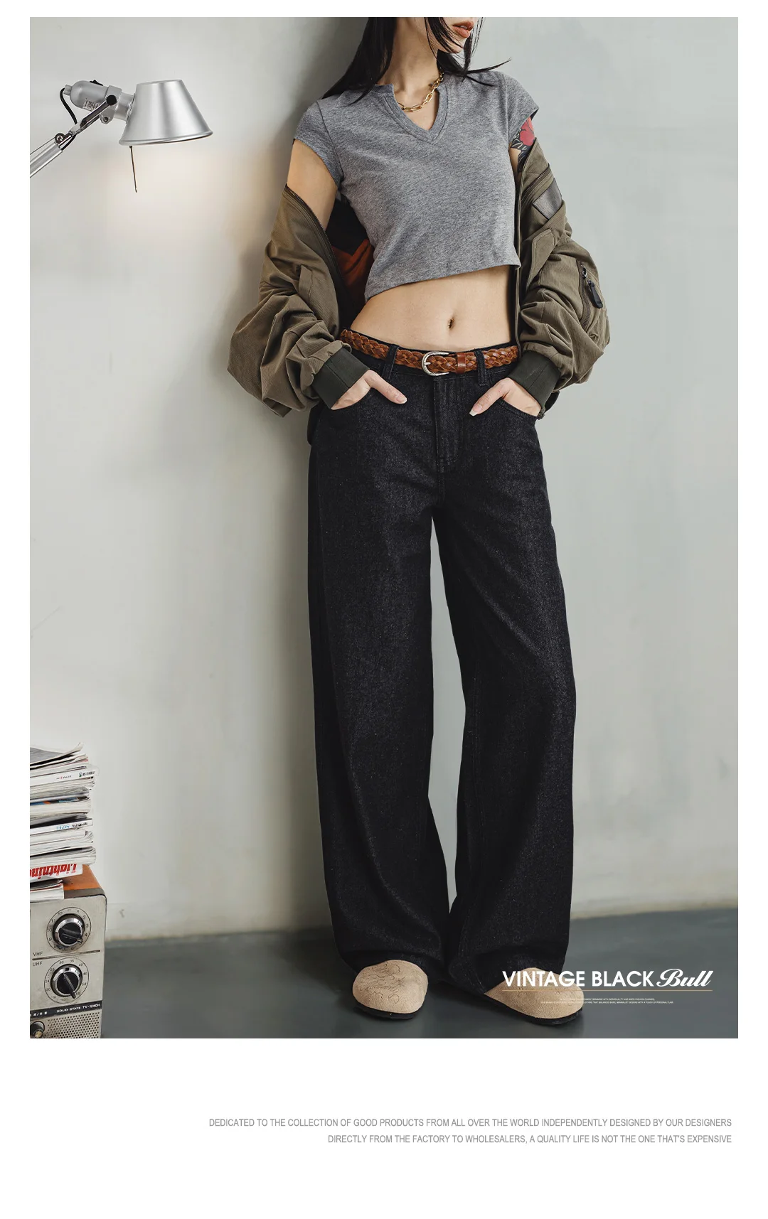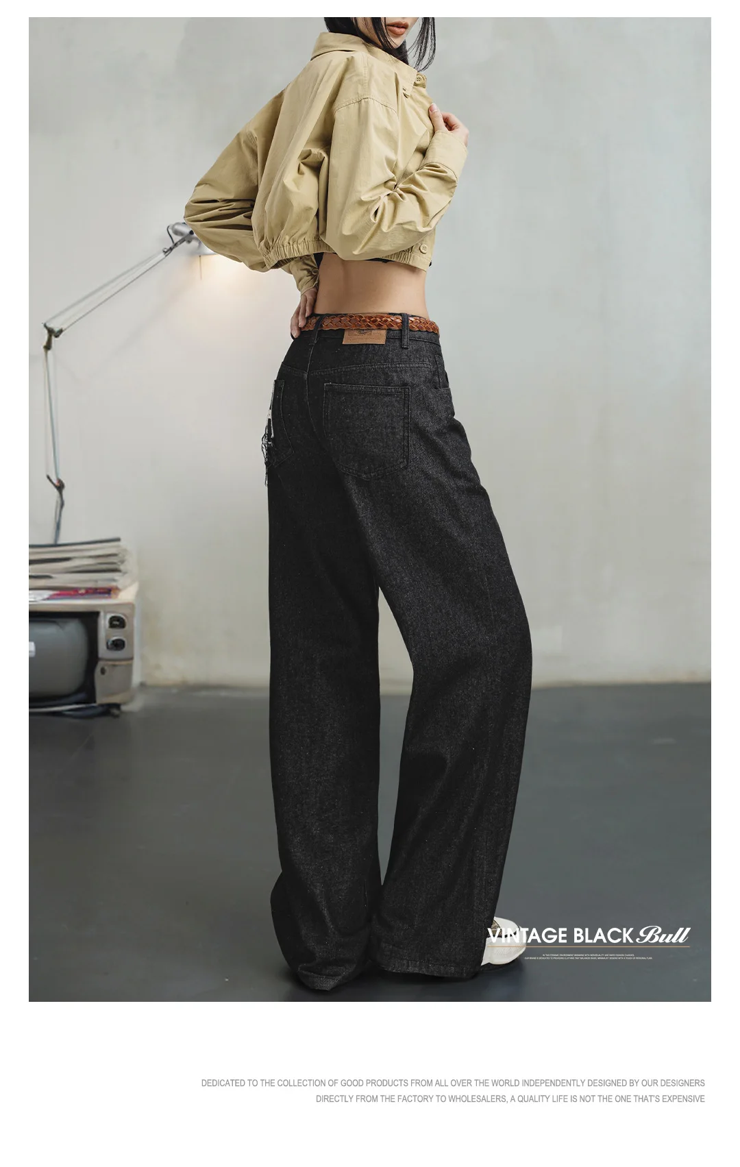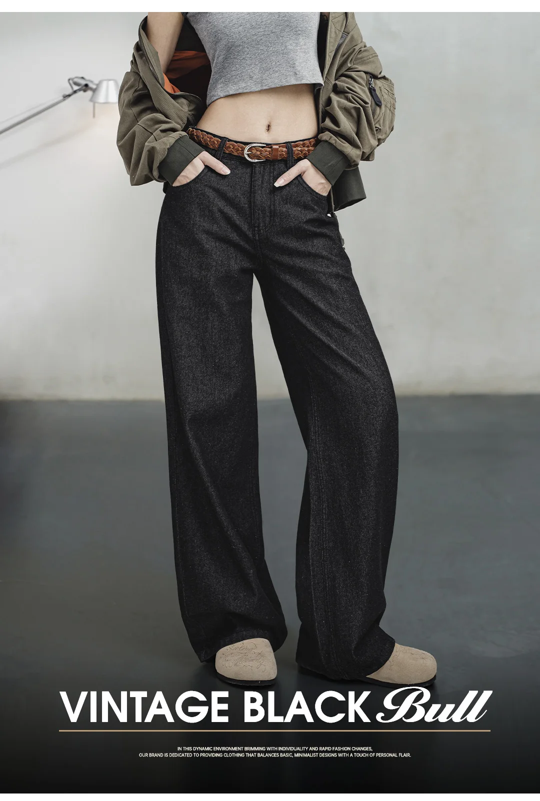 MADEN Damen Retro-Jeans Schwarz – Gerader, lockerer Schnitt