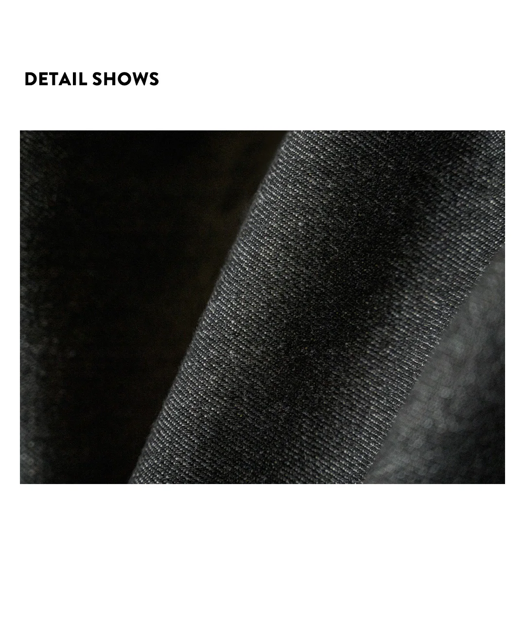 1. Im Gegensatz zu normalem Denimblau wirkt dieser tiefschwarze Stoff schlankmachender; der Stoff hat eine dezente "sternenartige" Textur, unaufdringlich und doch einzigartig.