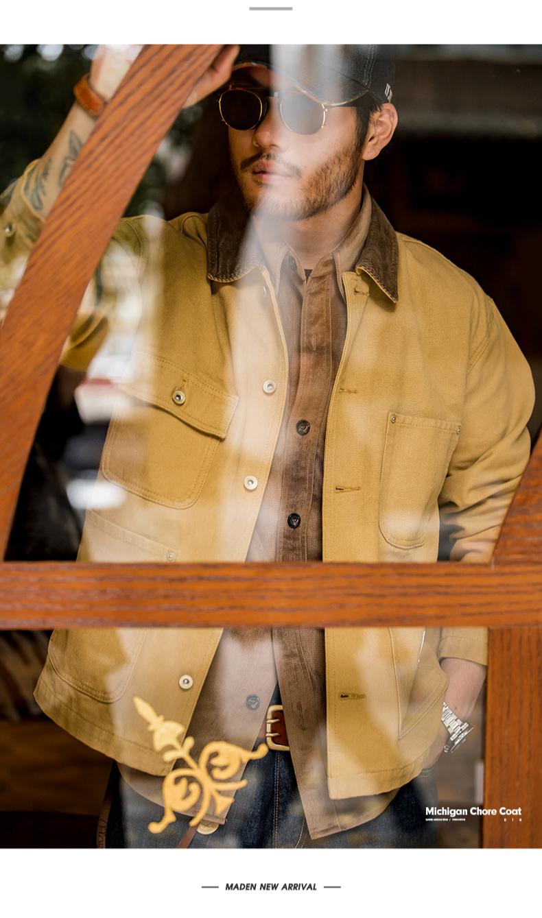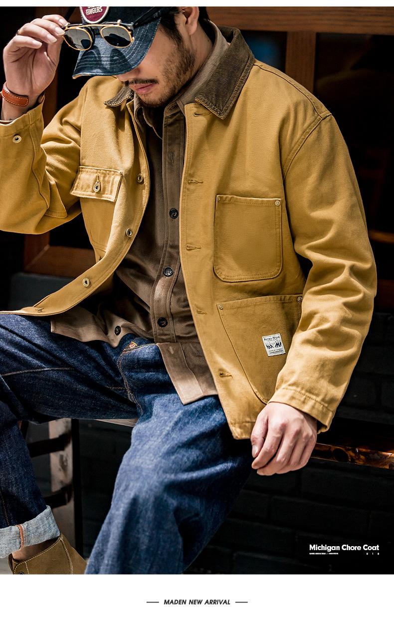 MADEN Herren Retro Michigan Canvas Jacke – Schwerer Funktionsmantel