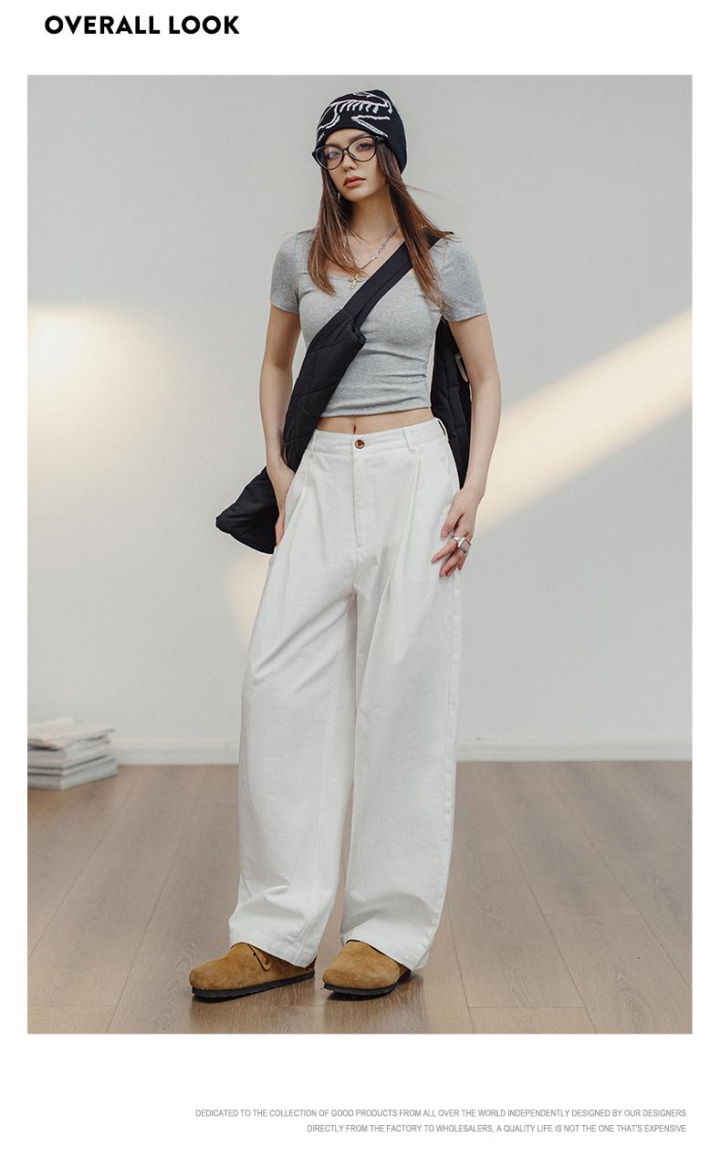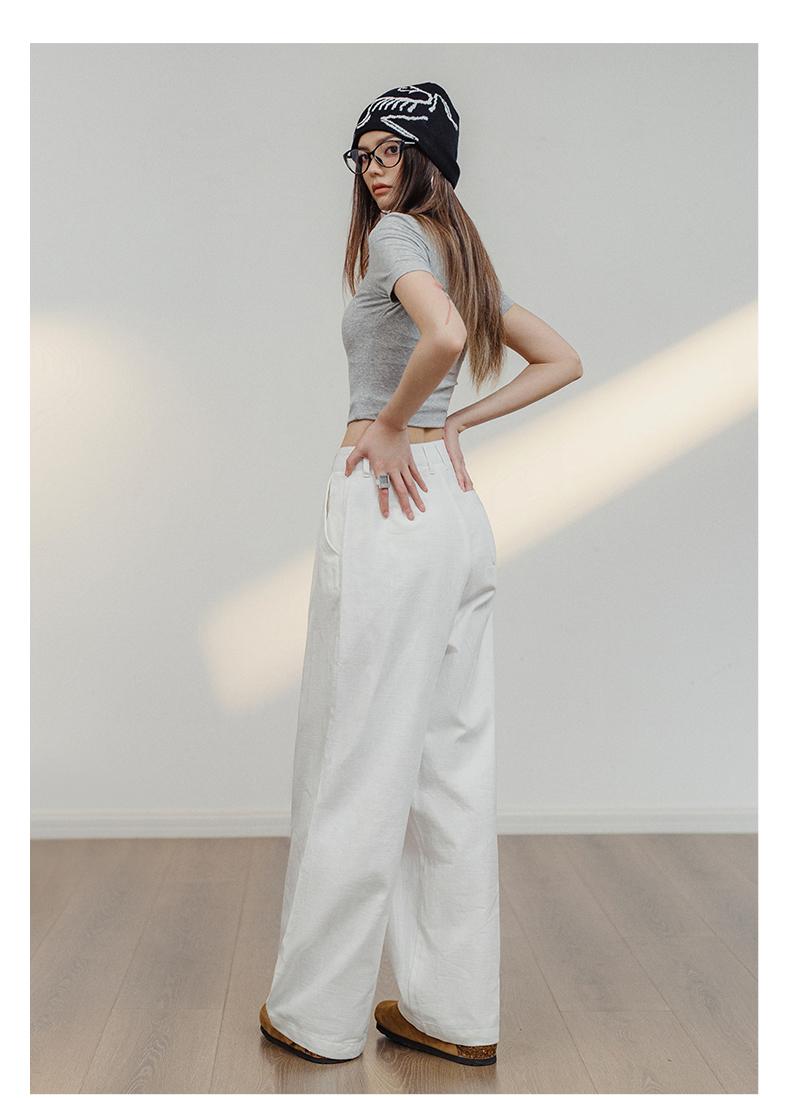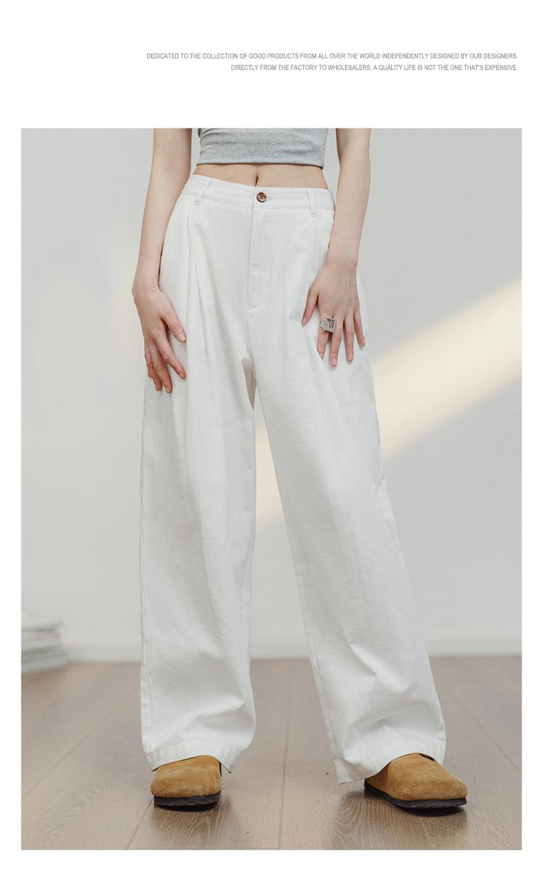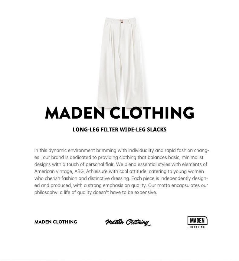 MADEN Weiße Baumwoll-Freizeithose für Damen, lockere, gerade Cargohose, vielseitige Hose mit weitem Bein, Sommer-Streetwear-Hose