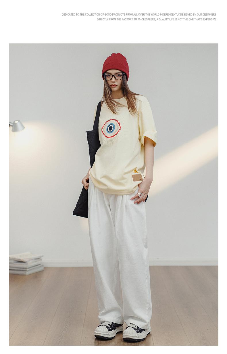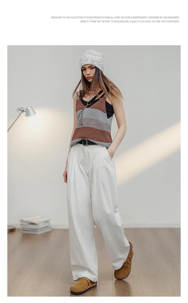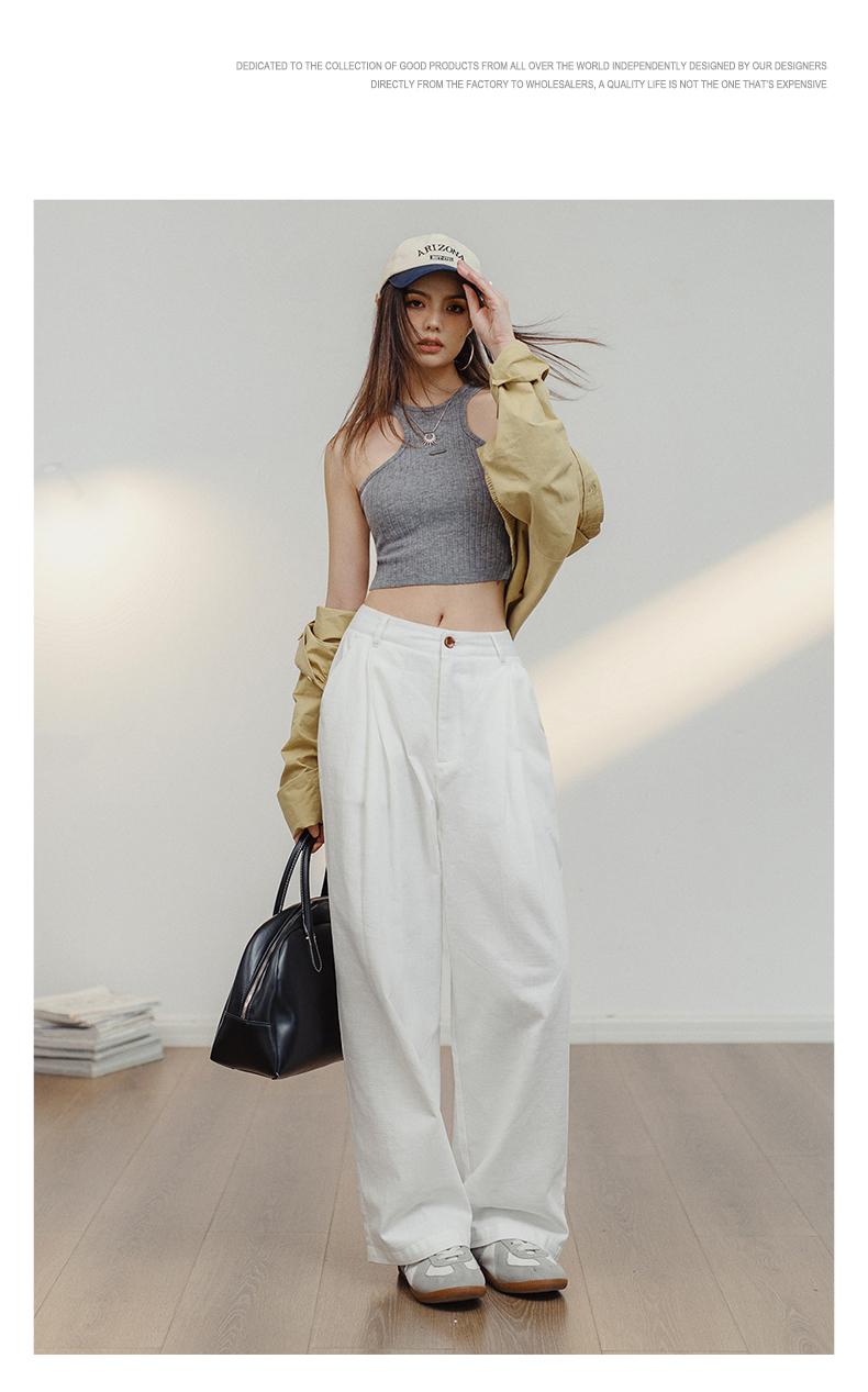 MADEN Weiße Baumwoll-Freizeithose für Damen, lockere, gerade Cargohose, vielseitige Hose mit weitem Bein, Sommer-Streetwear-Hose