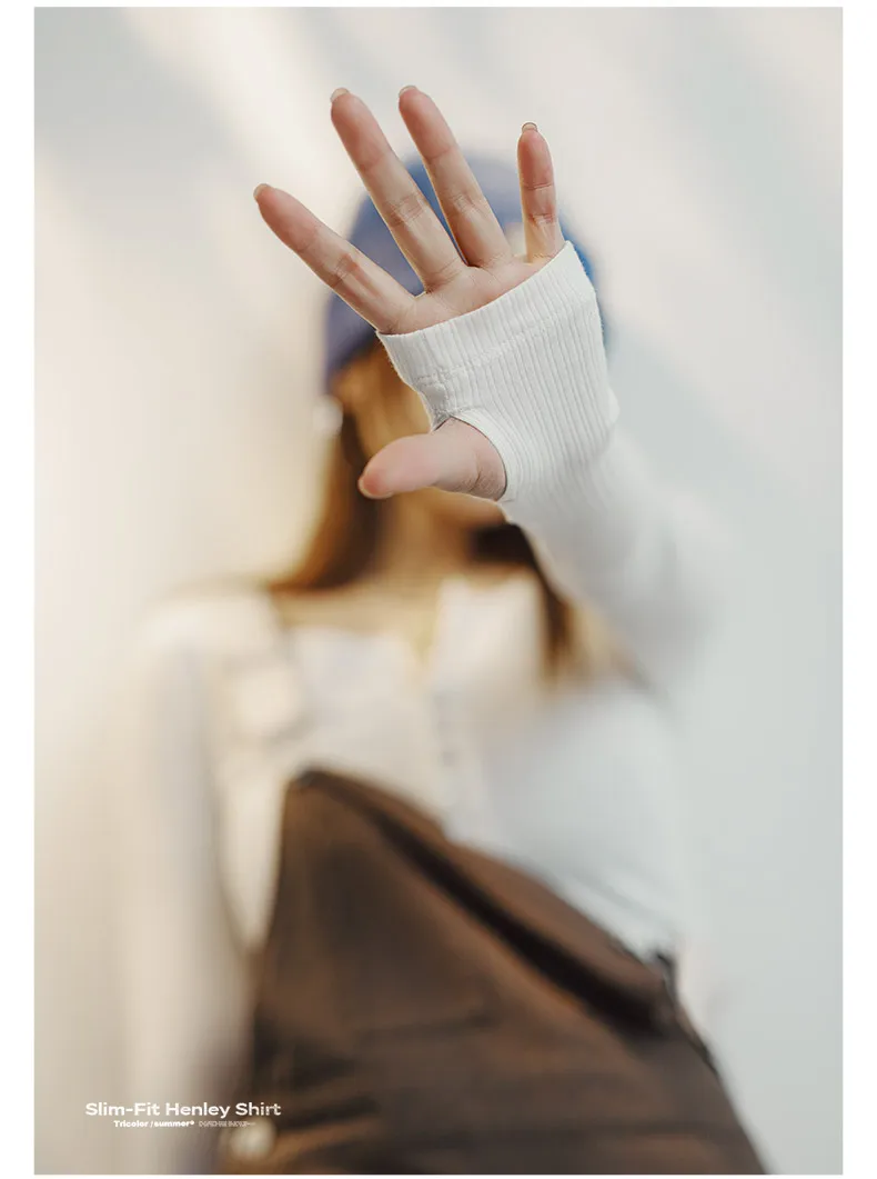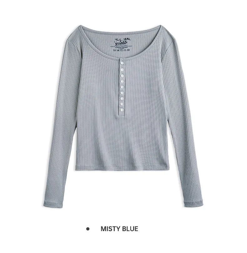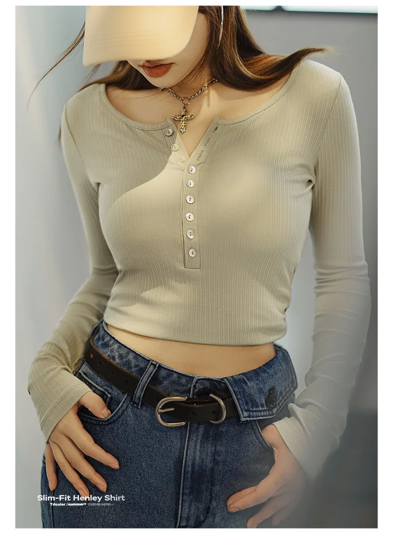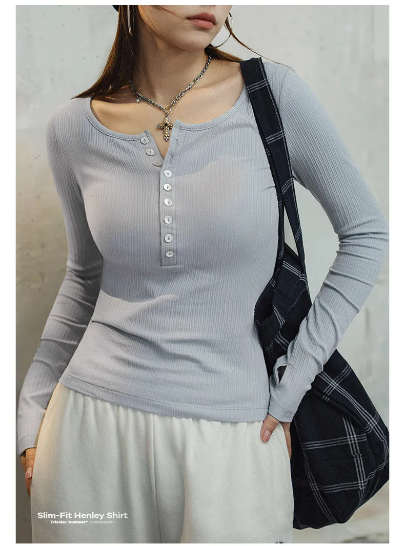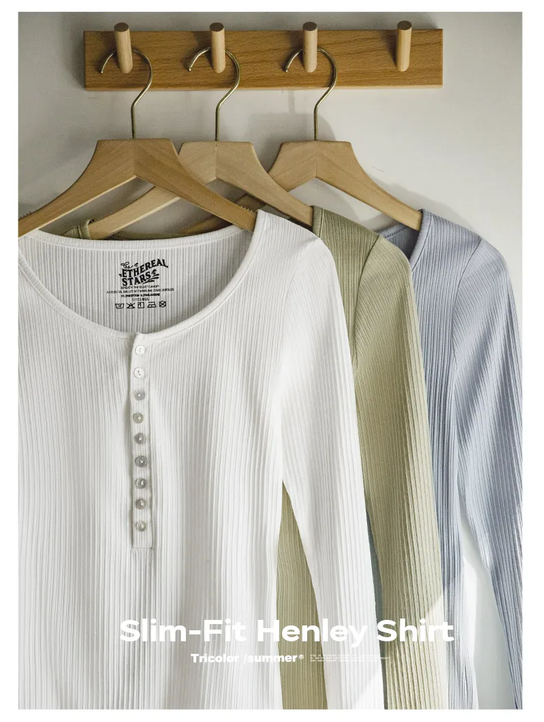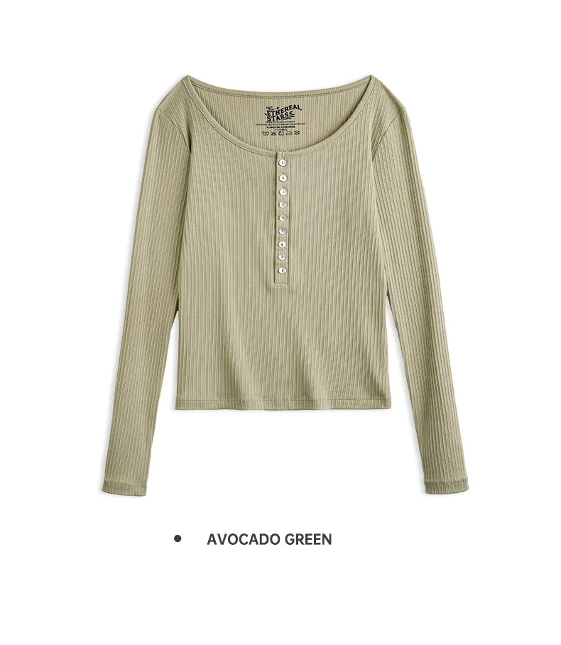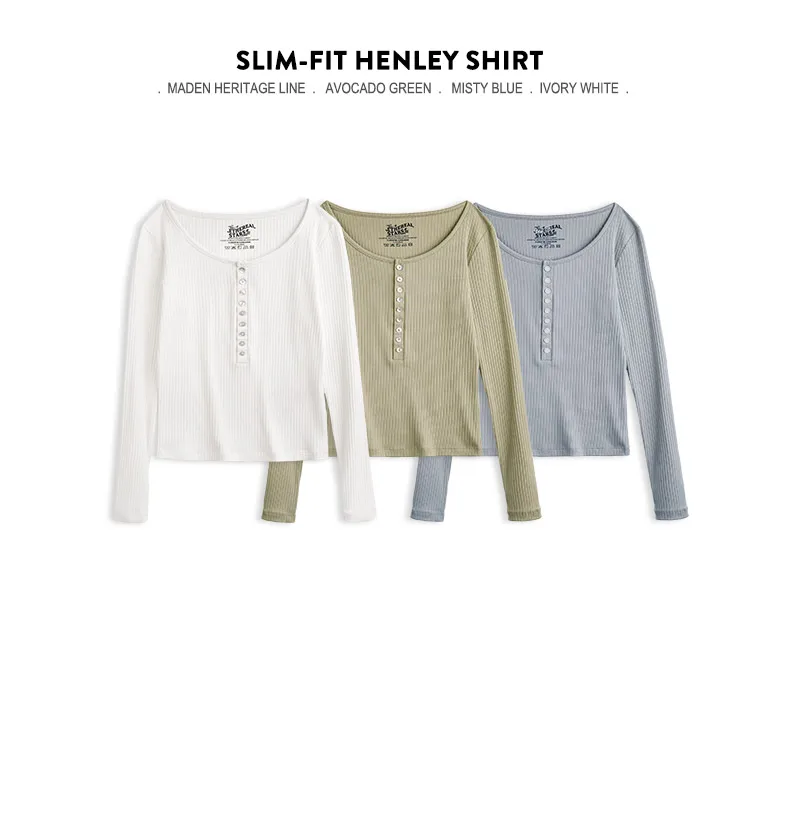 MADEN Damen-Henley-Top mit Rippstrick – Schmal geschnittenes Langarmshirt zum Drunterziehen