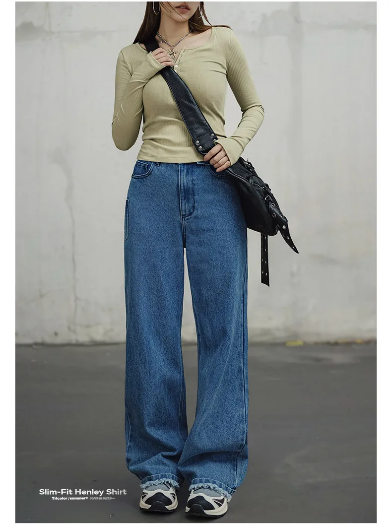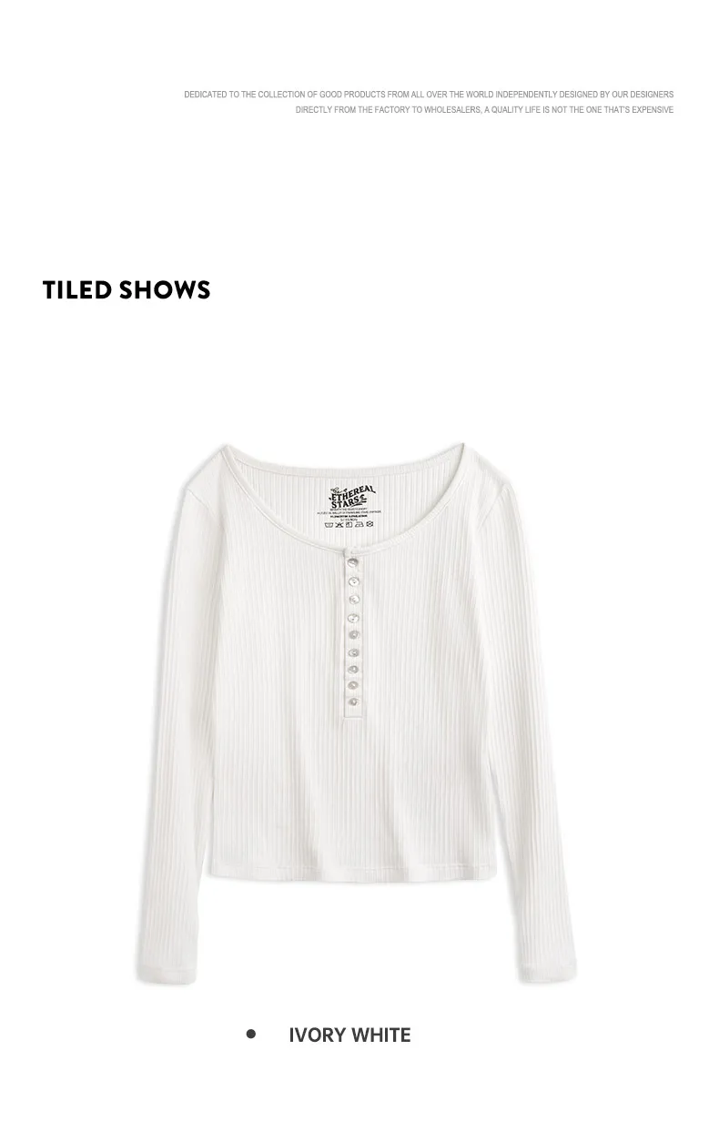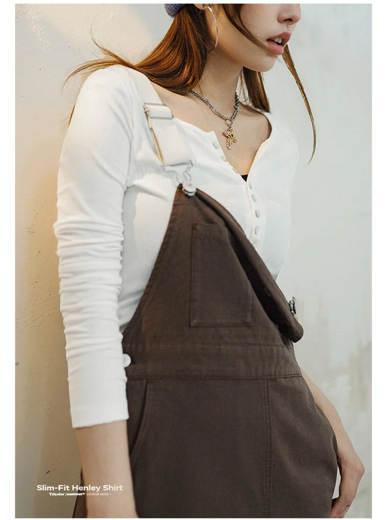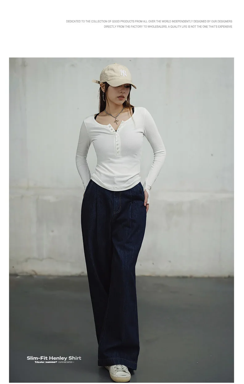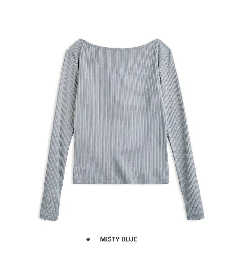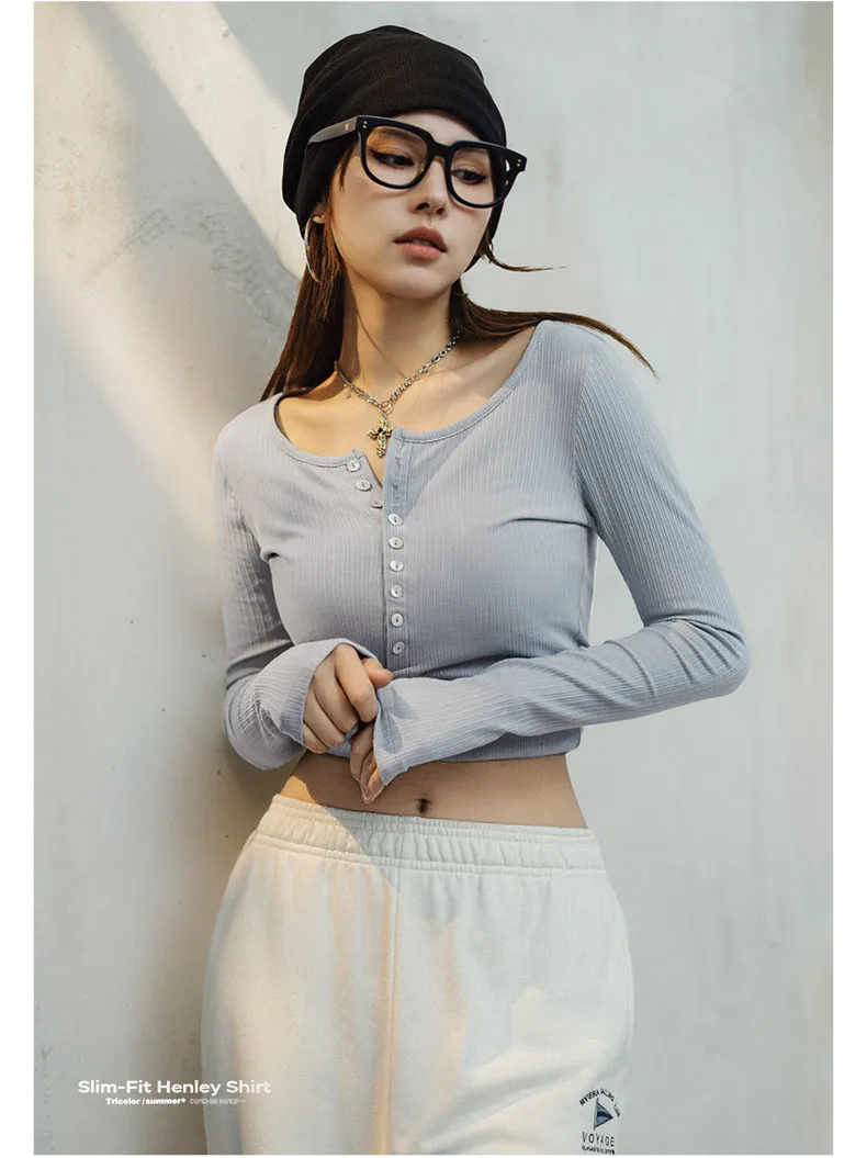 MADEN Damen-Henley-Top mit Rippstrick – Schmal geschnittenes Langarmshirt zum Drunterziehen