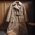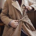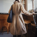 MADEN Damen-Trenchcoat, lang, zweireihig, mit Gürtel, warmes, wollähnliches Futter, Vintage-Baumwolltwill, Herbst-Winter-Oberbekleidung