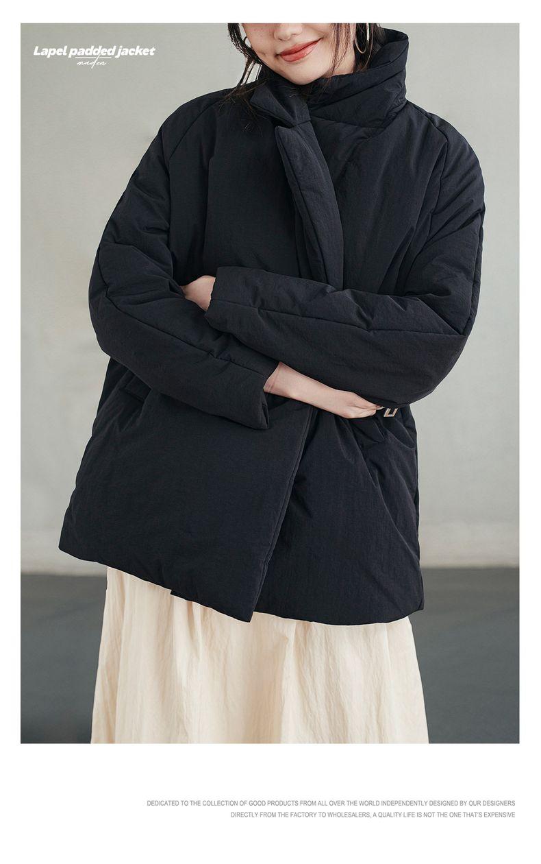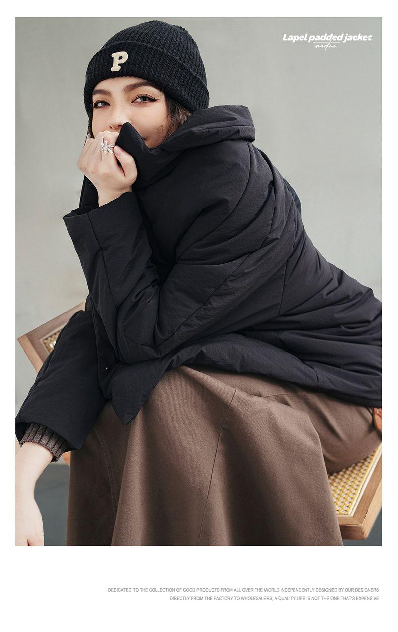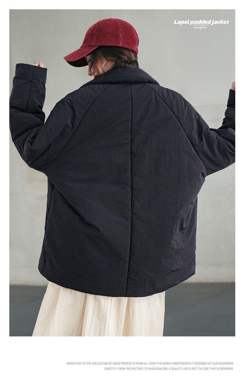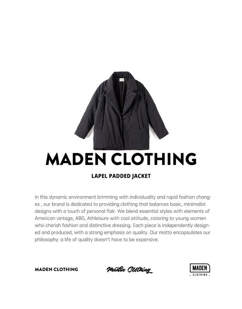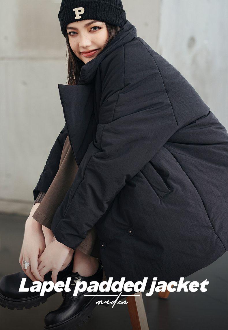 MADEN Damen-Steppmantel, locker geschnitten, einfarbig, warm, Winter, bequem, vielseitig, dicker Reverskragen, Basic, schwarz