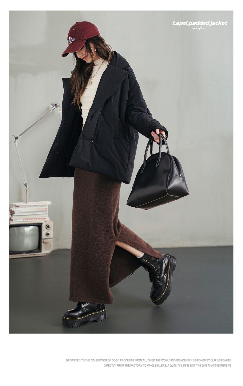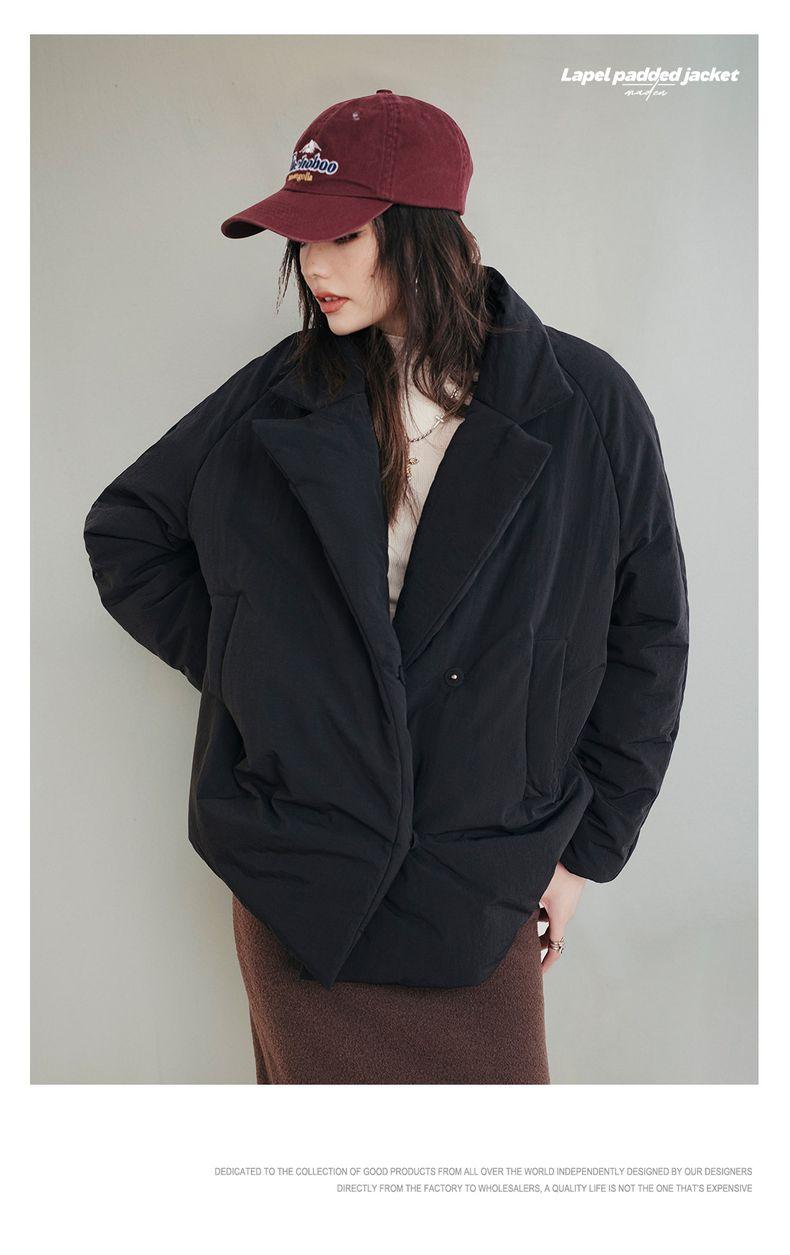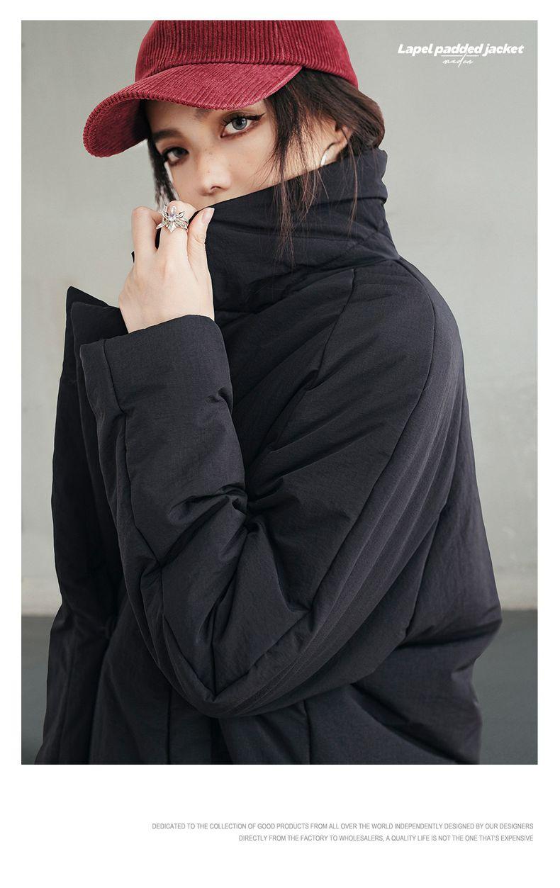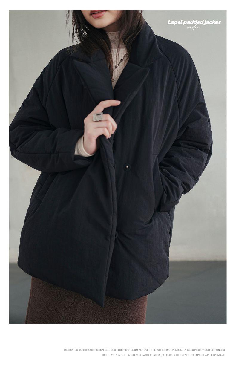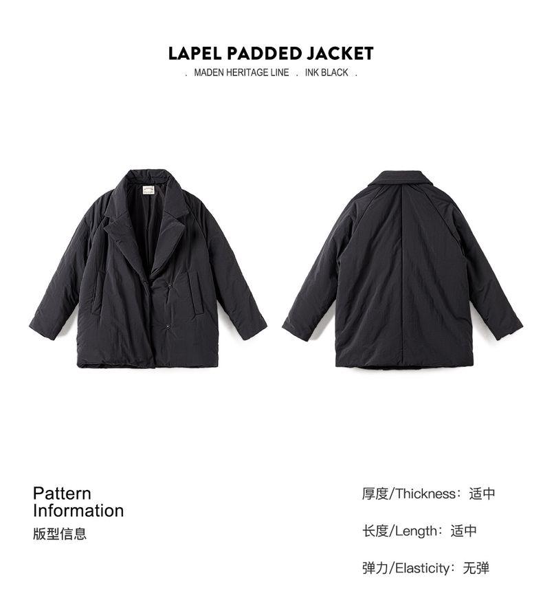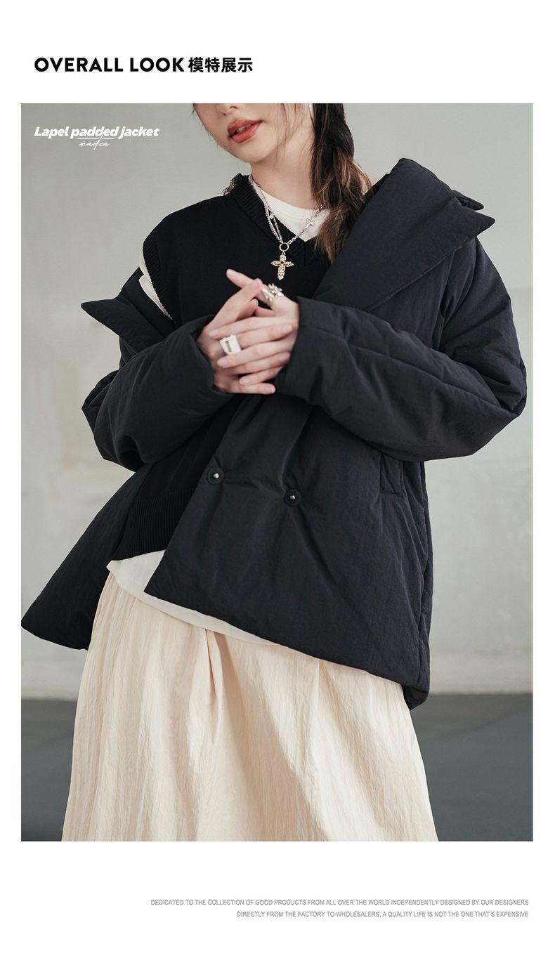 MADEN Damen-Steppmantel, locker geschnitten, einfarbig, warm, Winter, bequem, vielseitig, dicker Reverskragen, Basic, schwarz