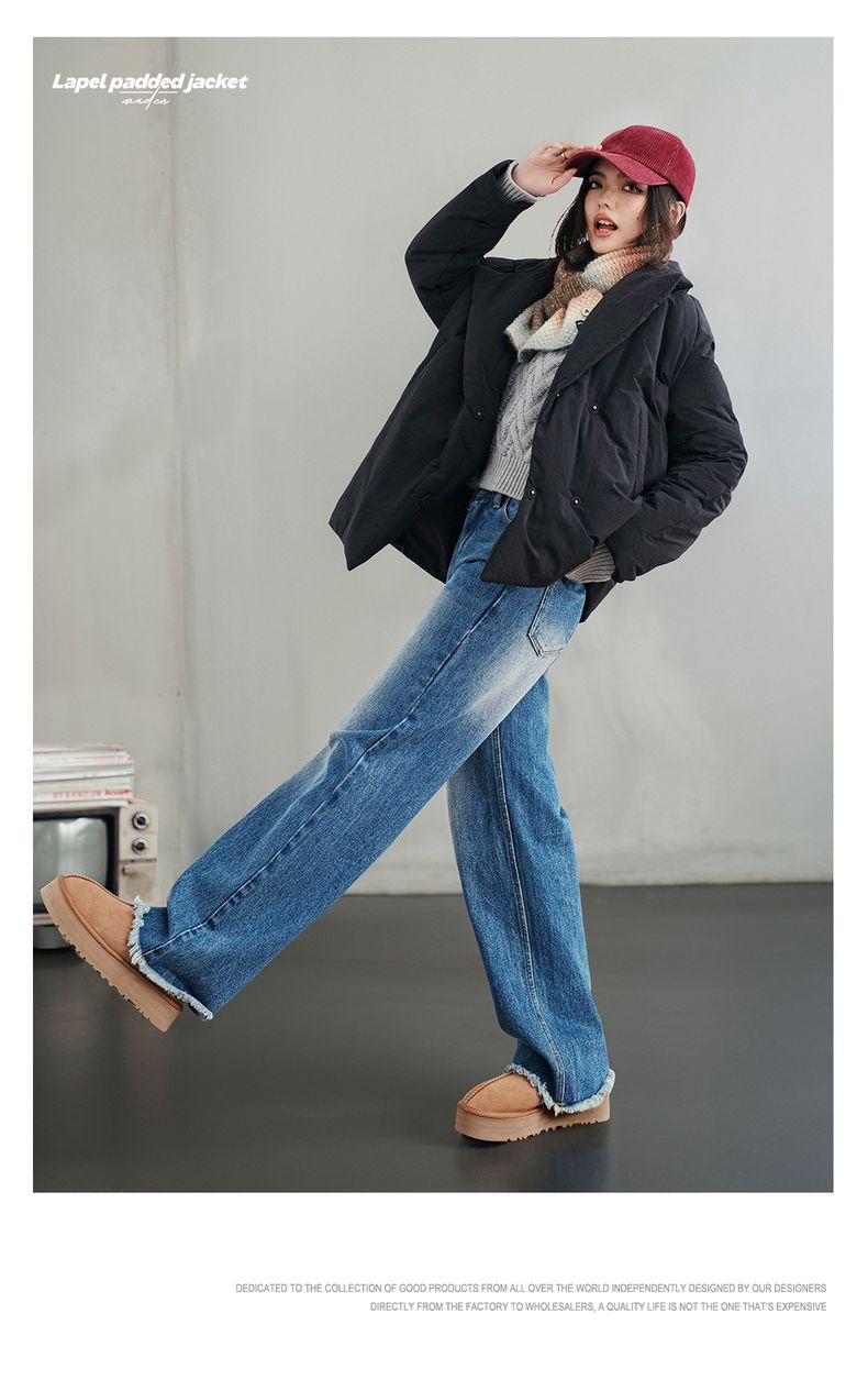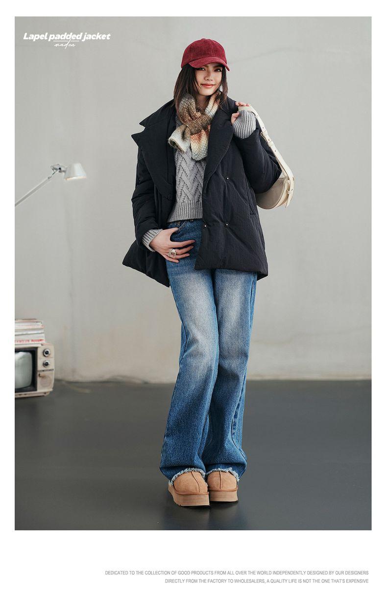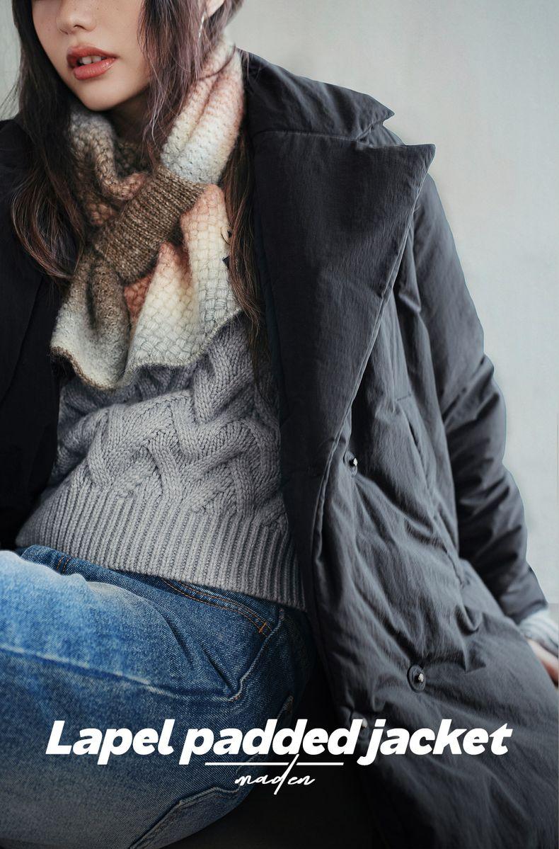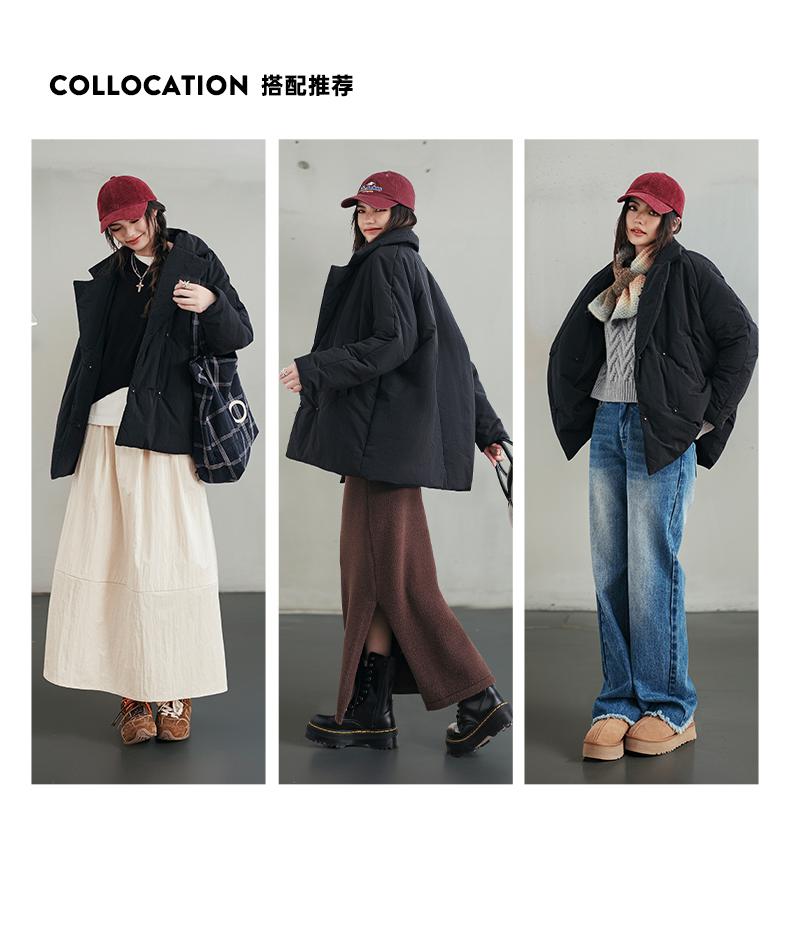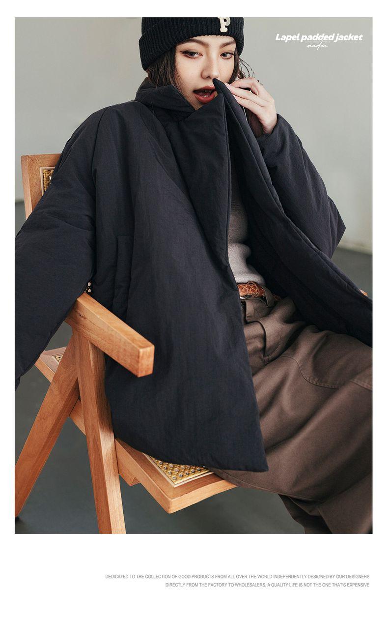 MADEN Damen-Steppmantel, locker geschnitten, einfarbig, warm, Winter, bequem, vielseitig, dicker Reverskragen, Basic, schwarz