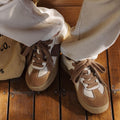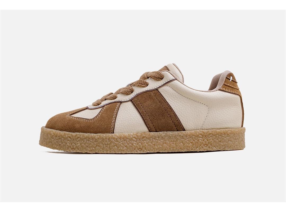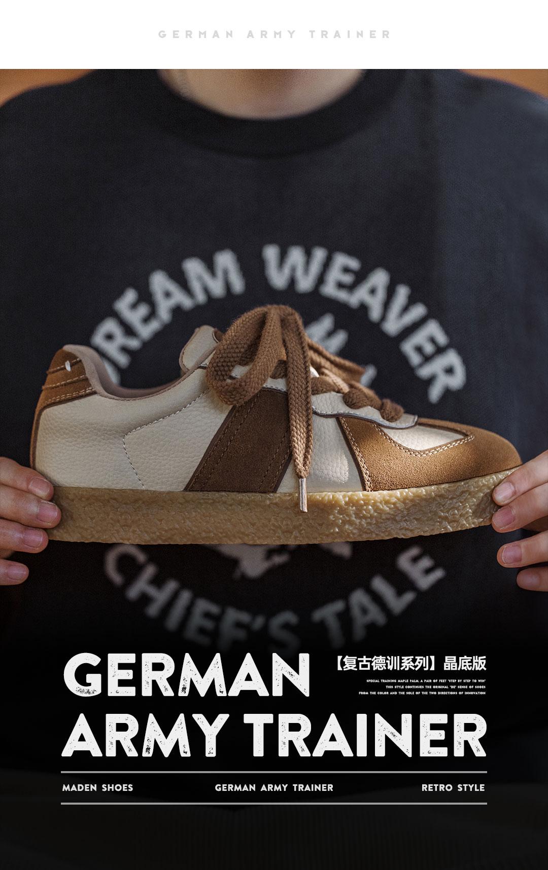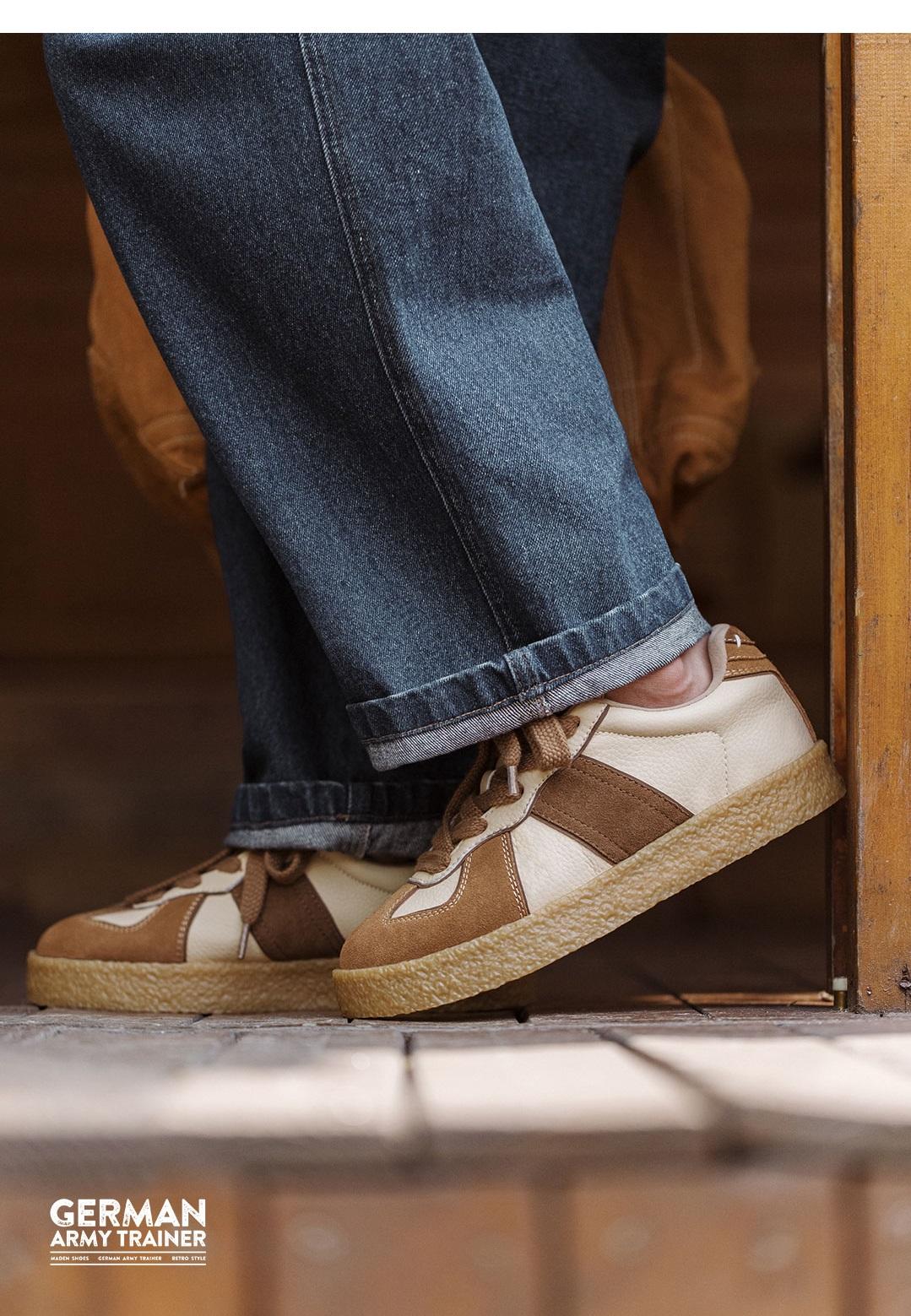 MADEN Zapatillas de Entrenamiento Retro Alemanas para Hombre Marrón con Parche y Suela Plana Zapatillas de Suela Gruesa de Corte Bajo Versátiles para Deportes y Uso Casual para Hombre