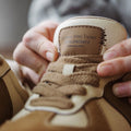 Superficie de la lengüeta bicolor, costura irregular en el lado izquierdo es el punto destacado