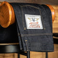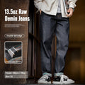 Jeans de mezclilla cruda de orillo de 13.5 oz para hombre MADEN – Corte recto, peso pesado, azul