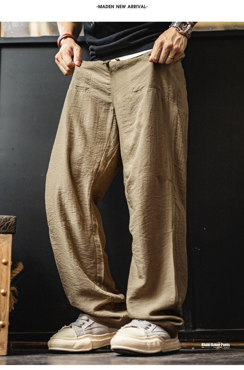 Pantalon décontracté en lin MADEN, coupe ample, style Old Money, en Tencel, léger et confortable, idéal pour l'été et l'automne, avec effet drapé.