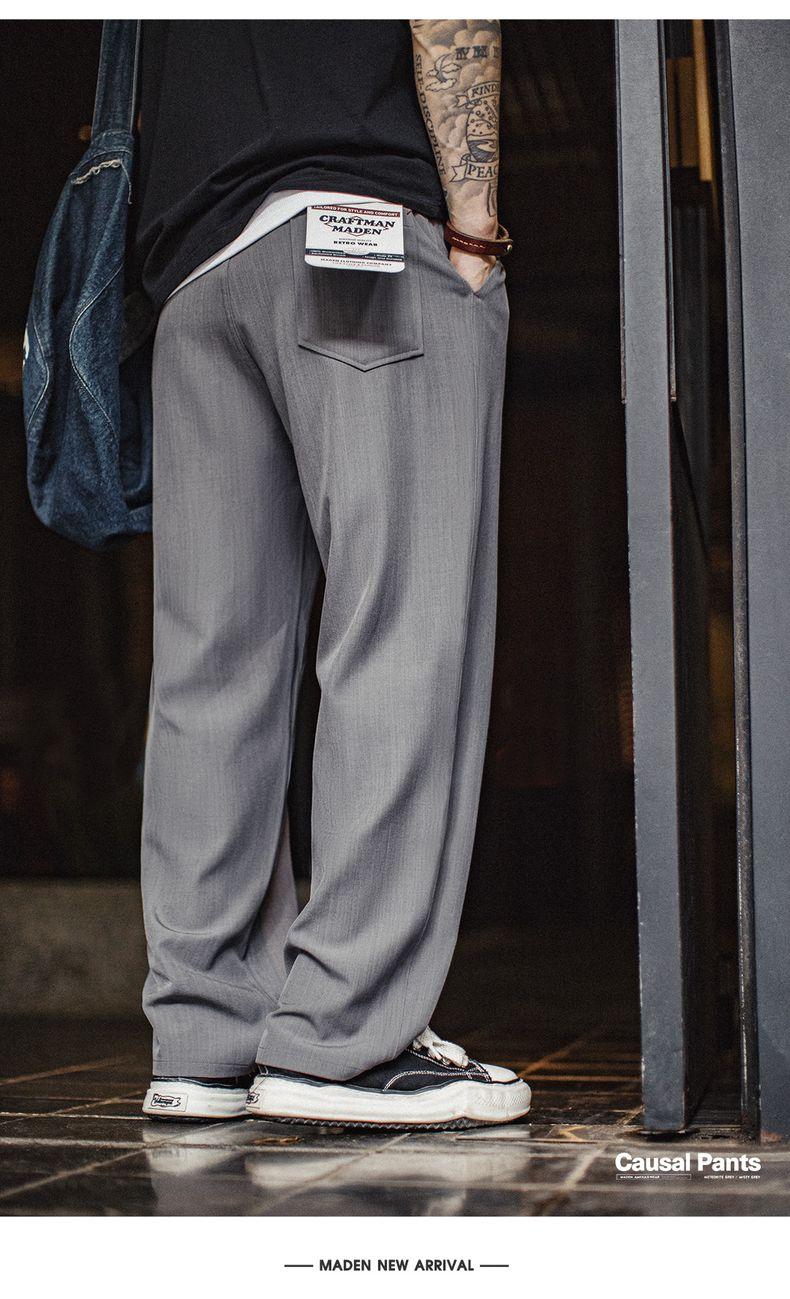 Pantalon de costume gris MADEN drapé, coupe droite, style Cleanfit, léger, idéal pour le bureau et les loisirs. Parfait pour les trajets quotidiens et les occasions décontractées.