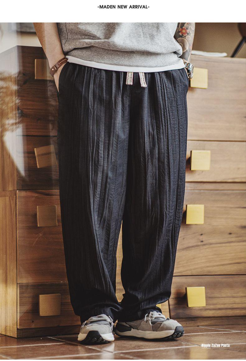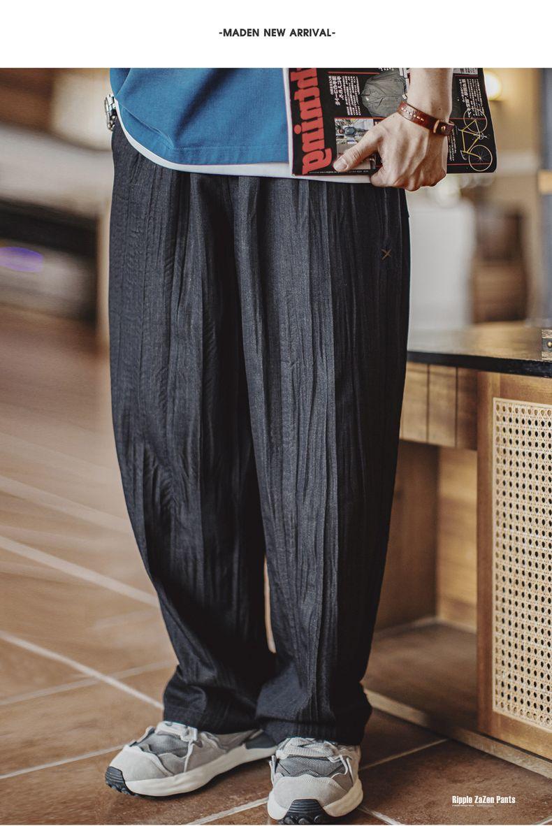 Pantalon de travail MADEN, style décontracté américain, plissé, effet vague, style Zazen, pantalon urbain décontracté de style japonais pour homme, collection printemps-été