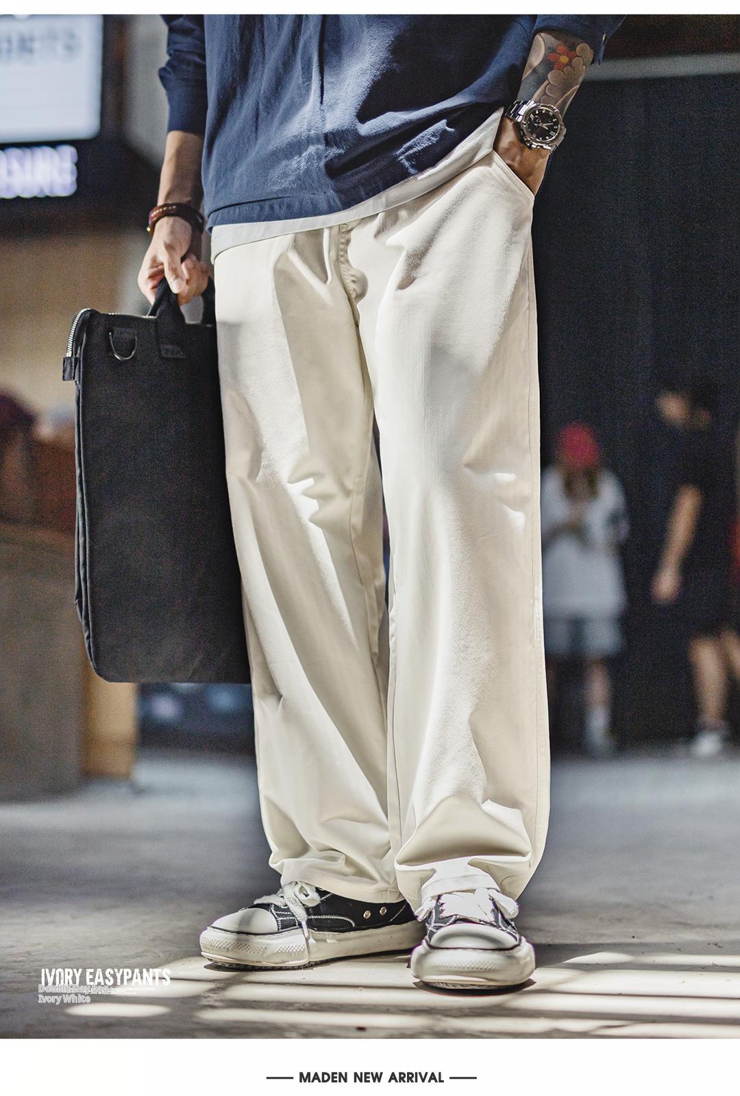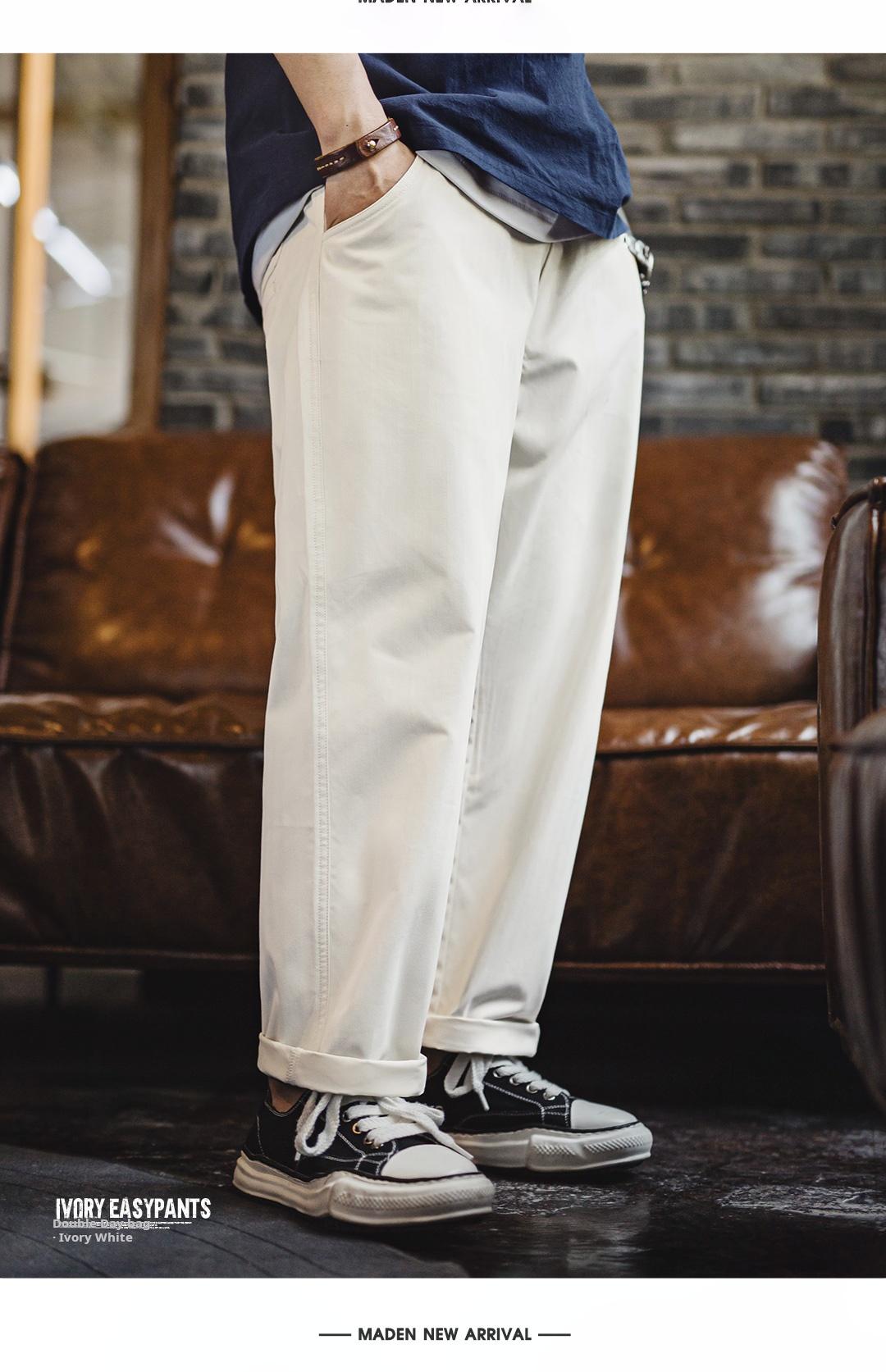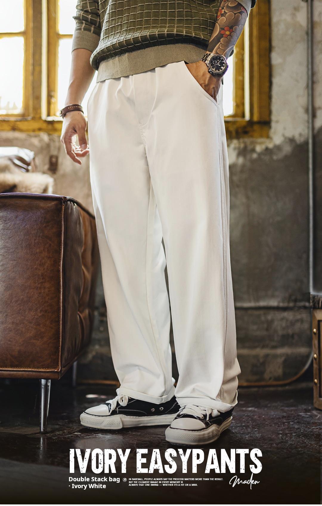 Pantalon blanc MADEN Easy pour homme, coupe droite décontractée, style ample, idéal pour le bureau et les trajets quotidiens. Minimaliste et polyvalent.