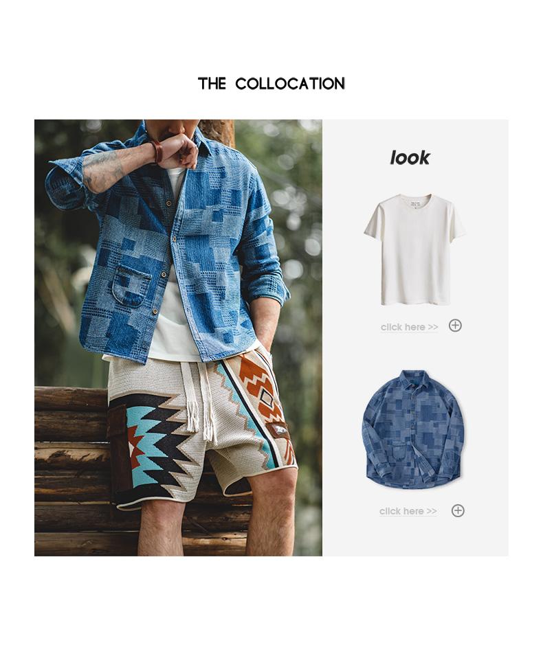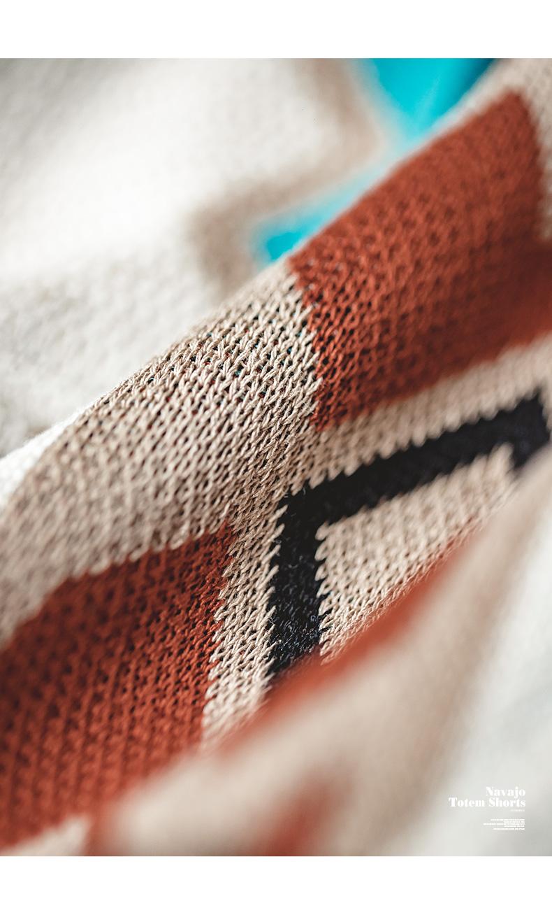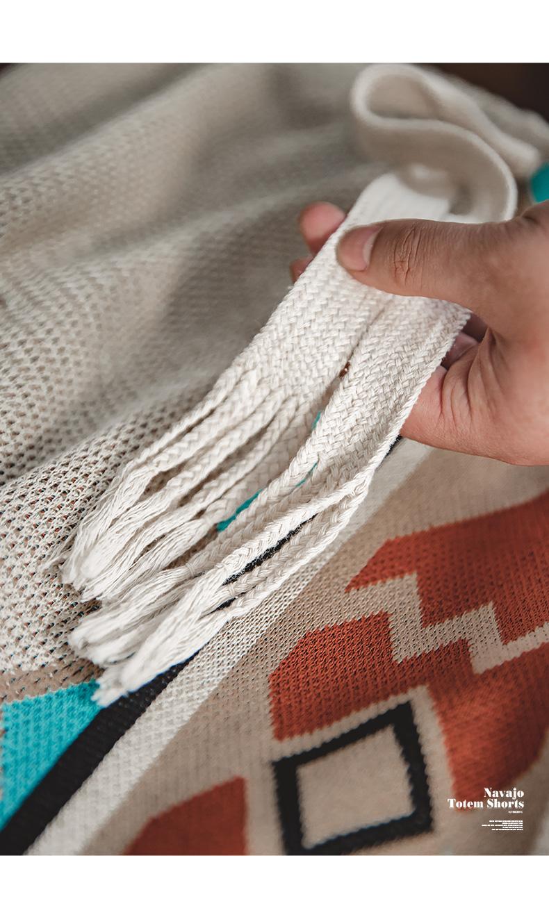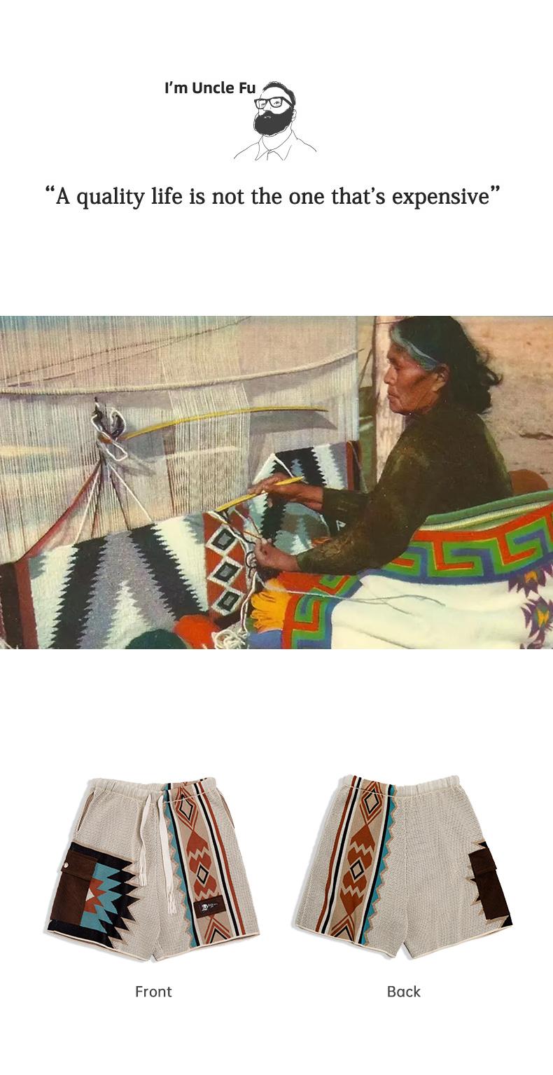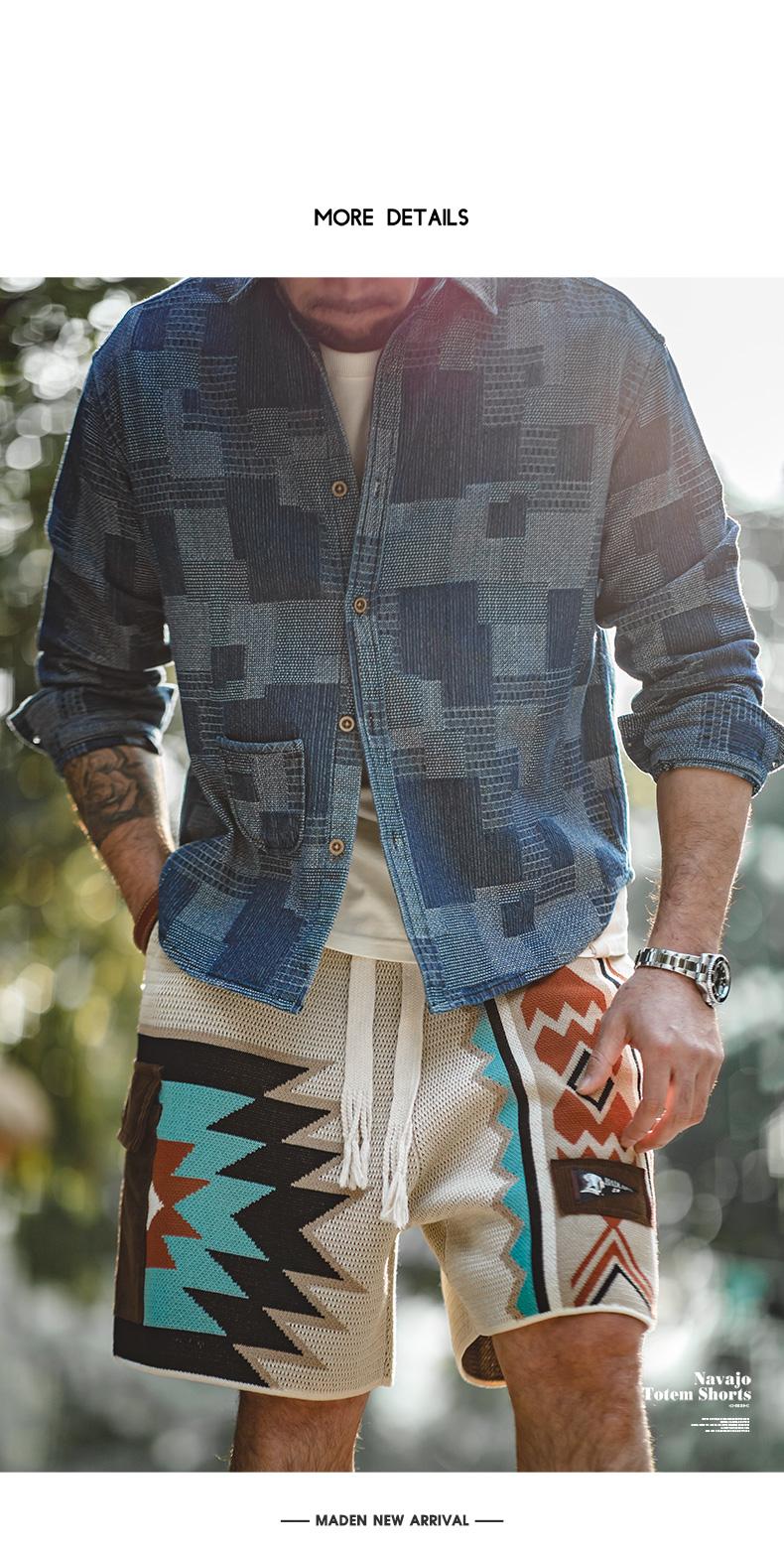 MADEN レトロ ナバホ トーテム 編み込み ショートパンツ メンズ カジュアル 刺繍 幾何学模様 ビーチ用 短パン 紐付き ゴムウエスト ショートパンツ