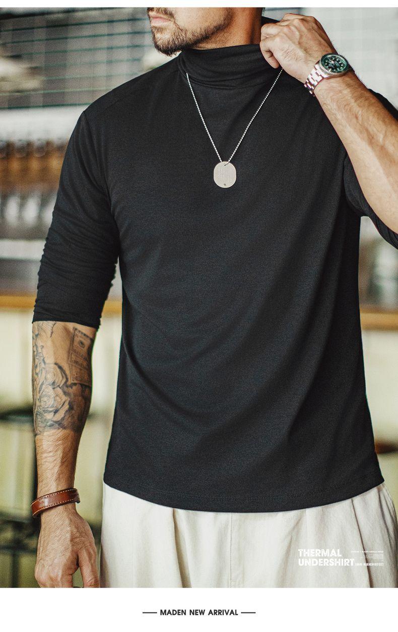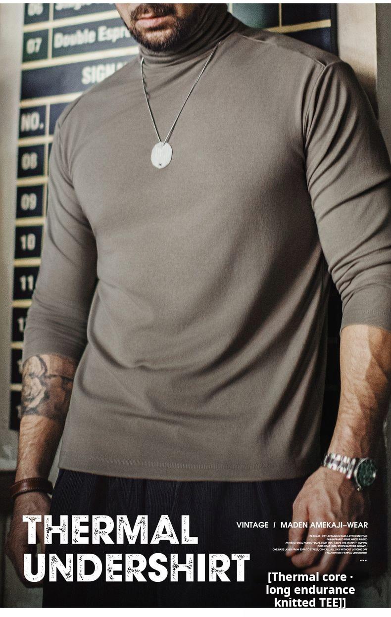 MADEN メンズ 保温性モックネック長袖下着 抗菌加工 秋冬用 暖かいインナーシャツ オールドマネースタイル