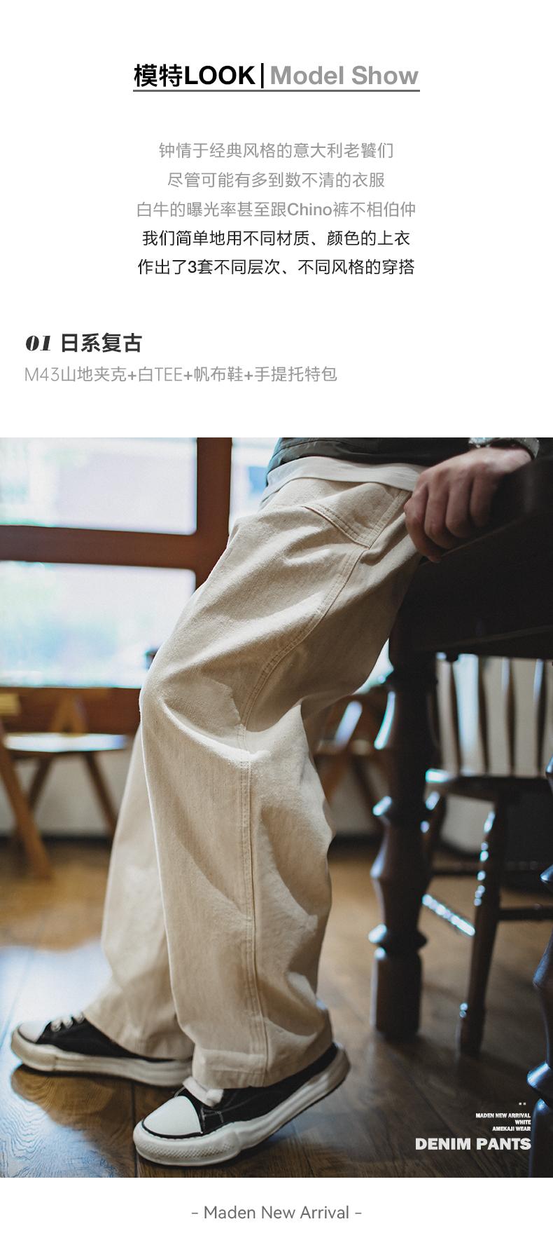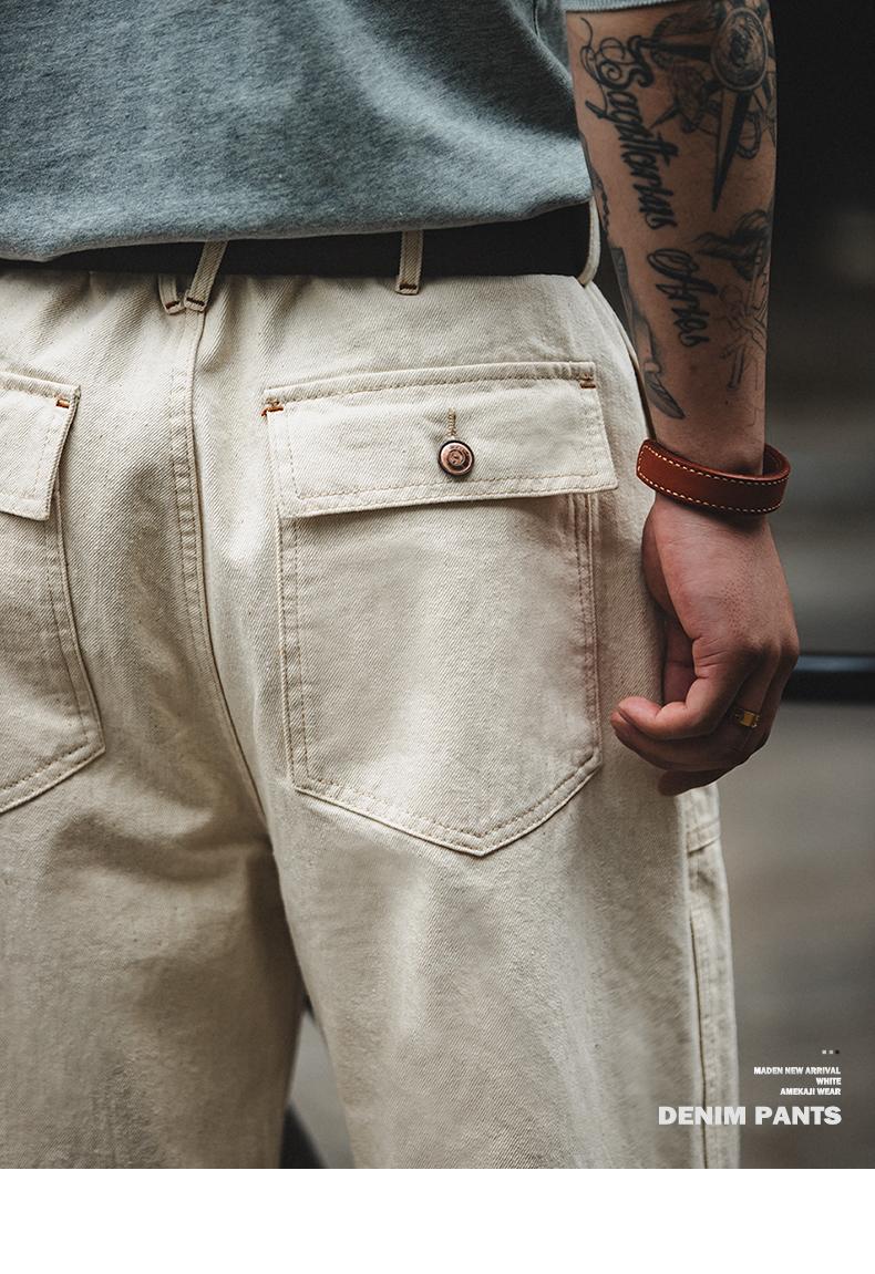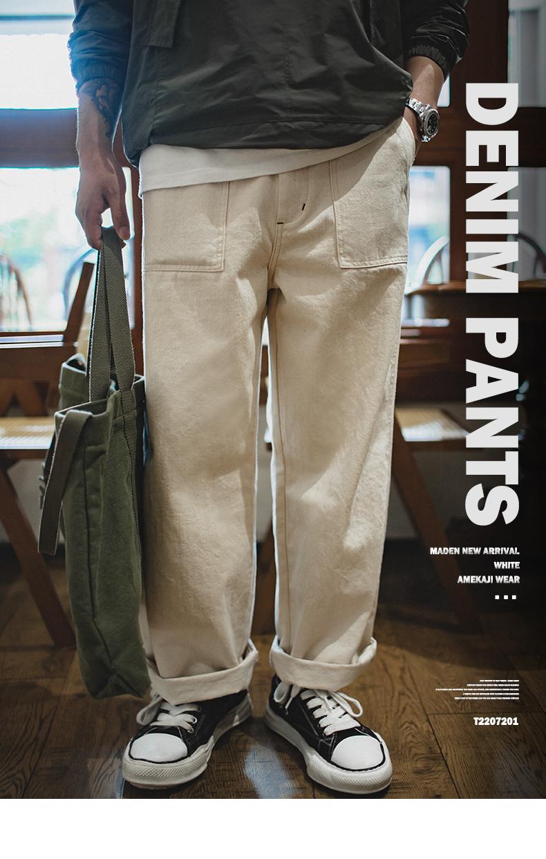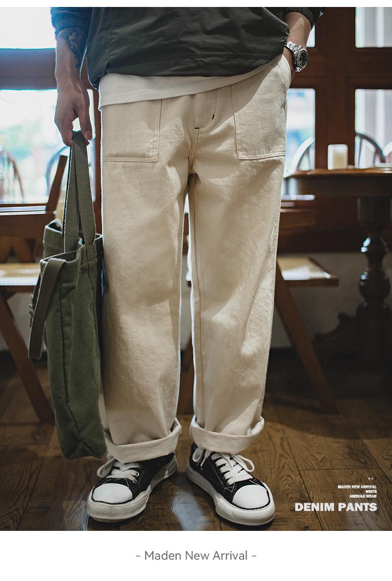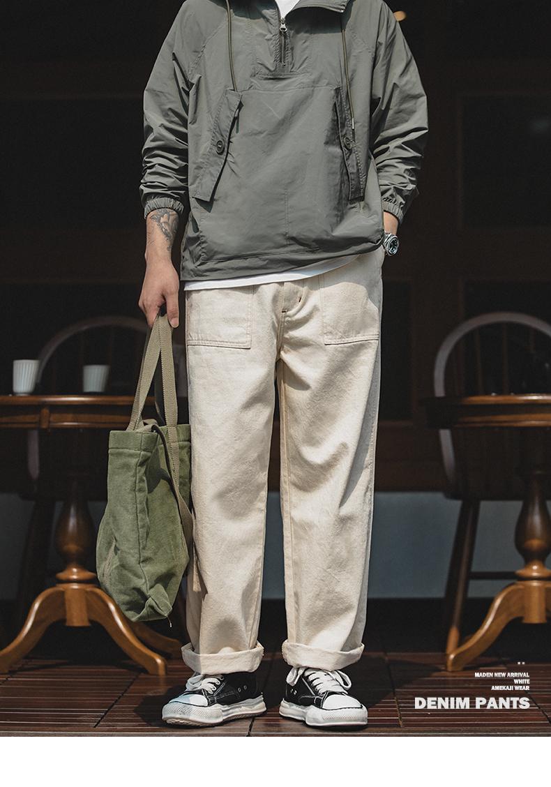 MADEN 綿実殻 米色 カジュアルジーンズ ゆったりストレート ワイドパンツ ポケット付き カーゴパンツ リラックス ストリート服