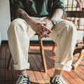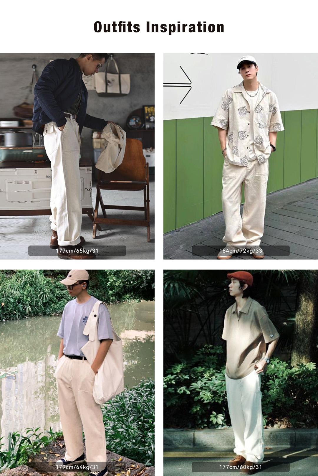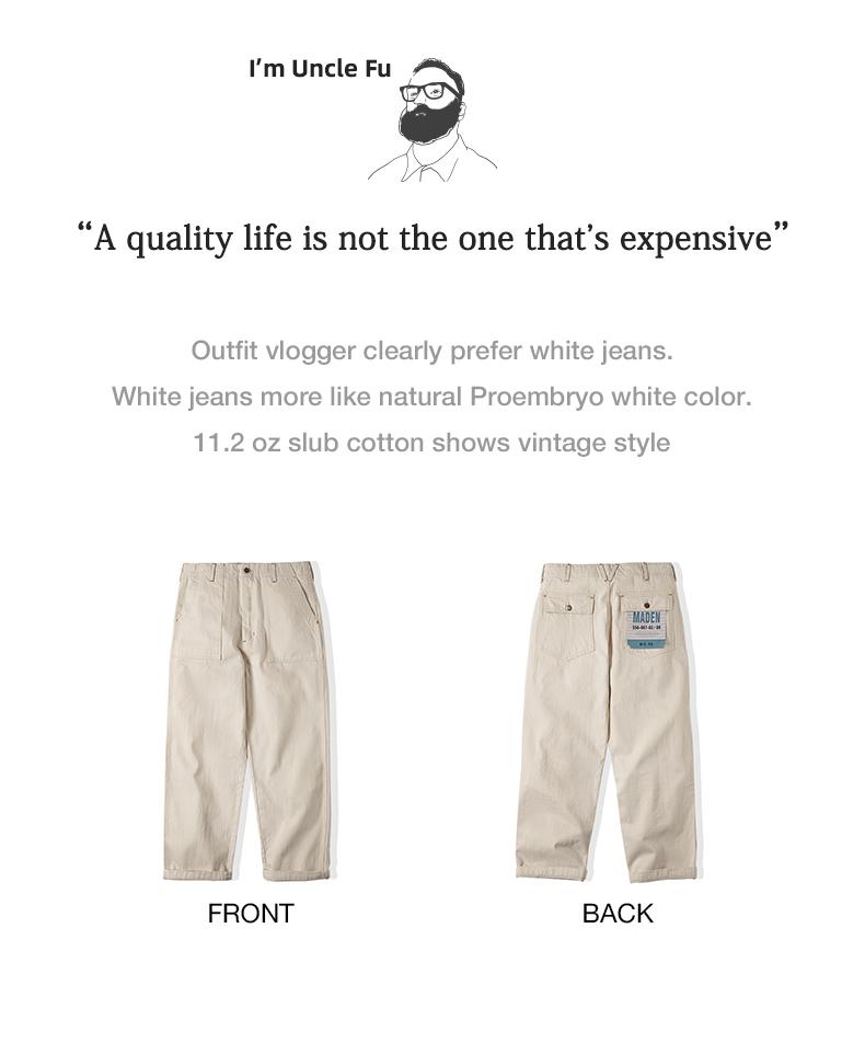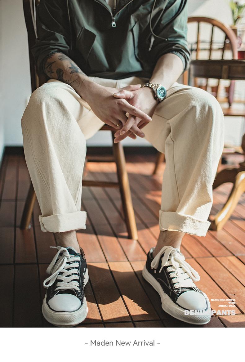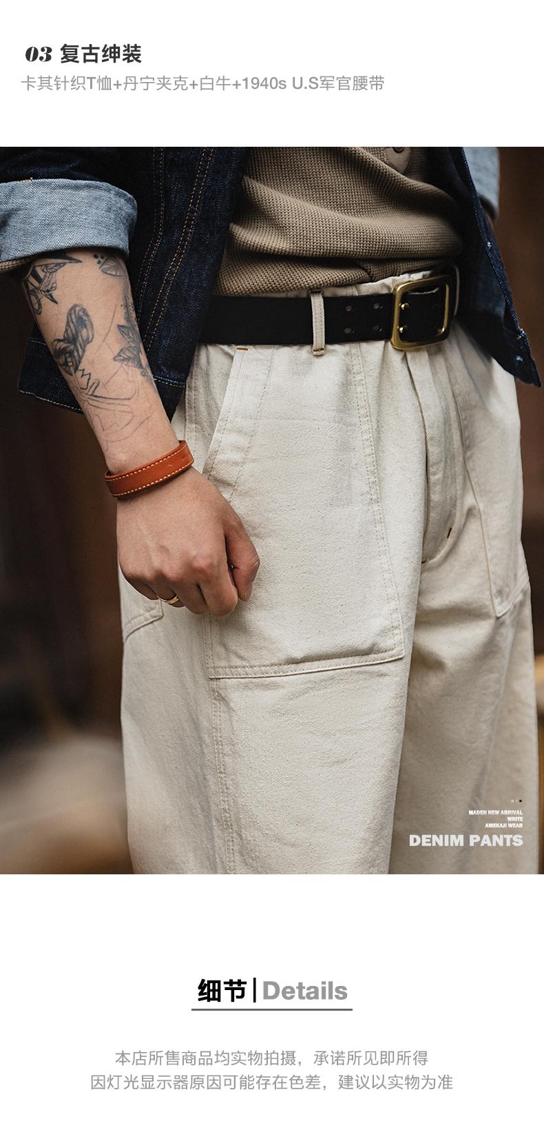 MADEN 綿実殻 米色 カジュアルジーンズ ゆったりストレート ワイドパンツ ポケット付き カーゴパンツ リラックス ストリート服