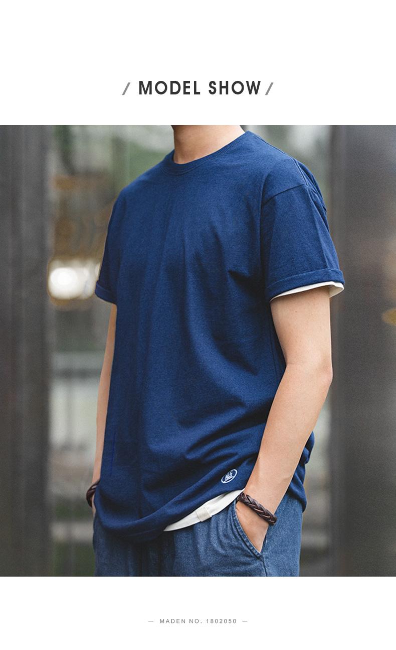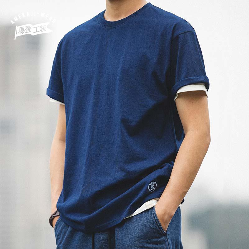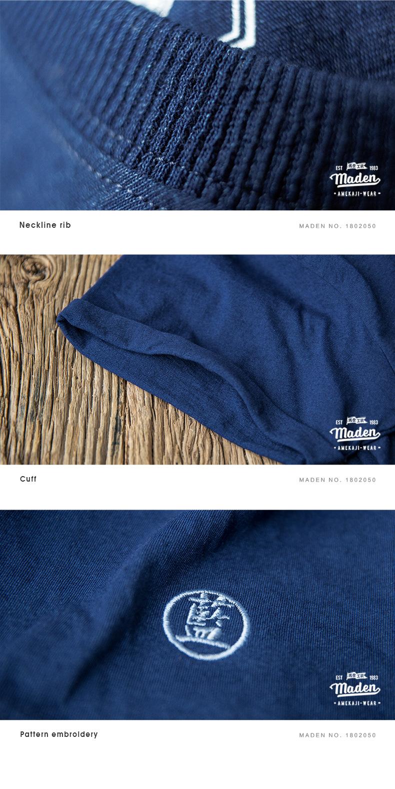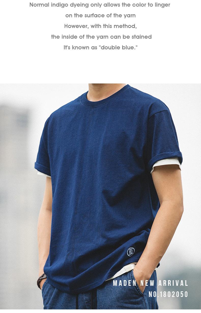 MADEN ヴィンテージ 藍染め 綿の半袖シャツ