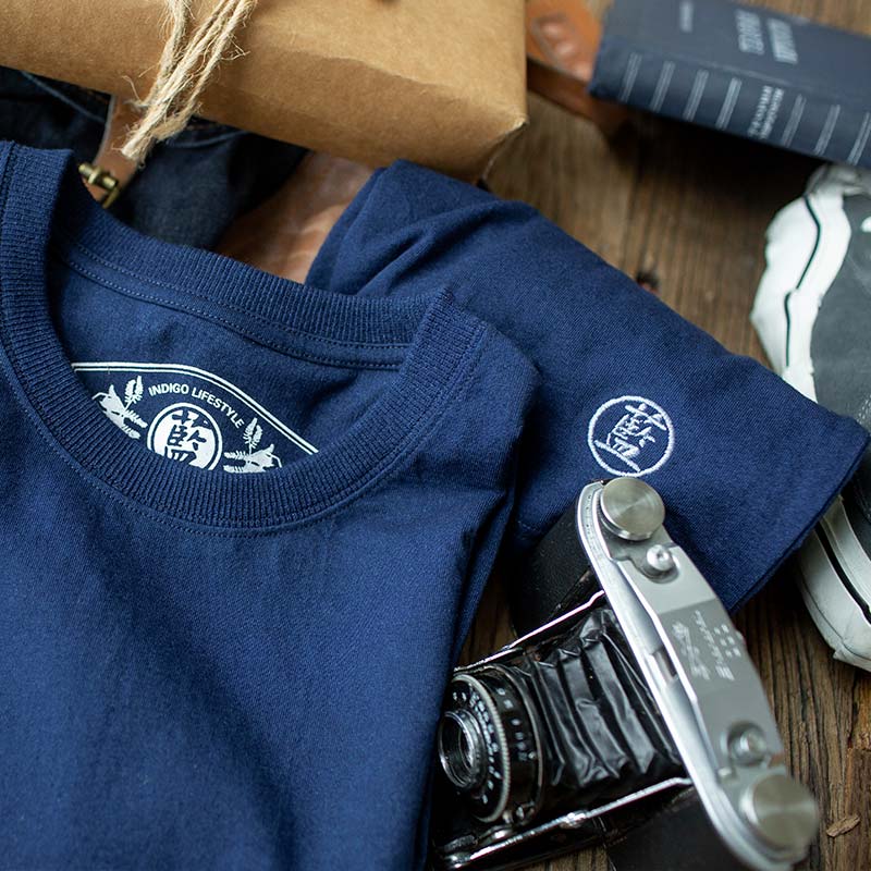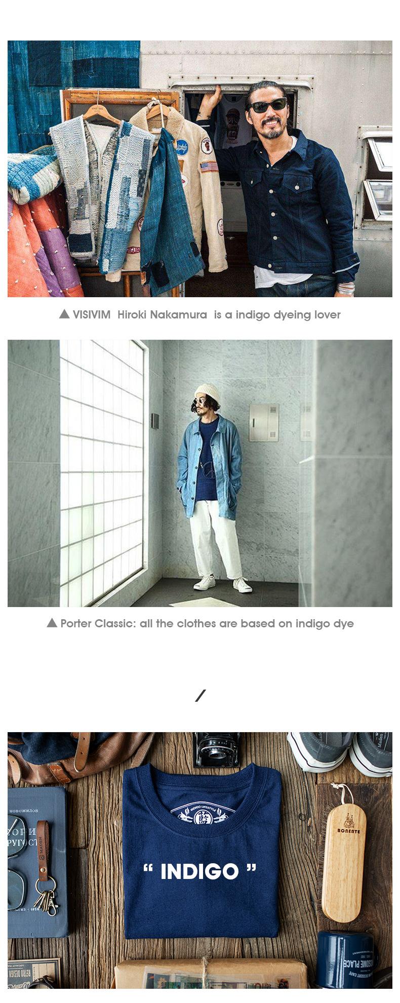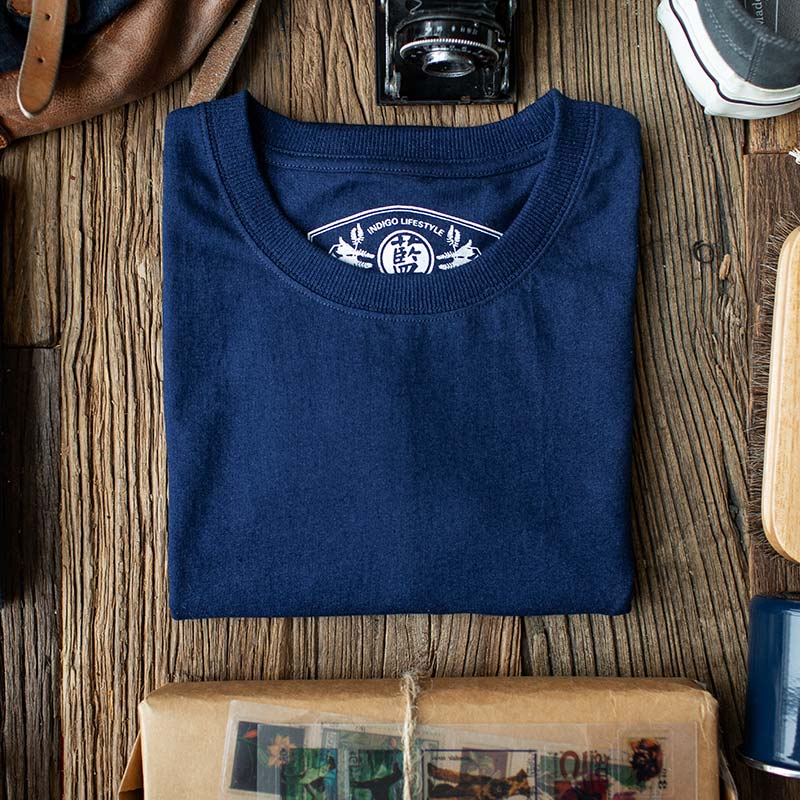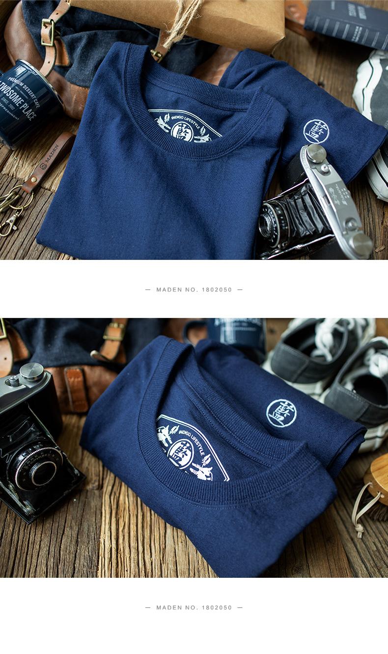 MADEN ヴィンテージ 藍染め 綿の半袖シャツ