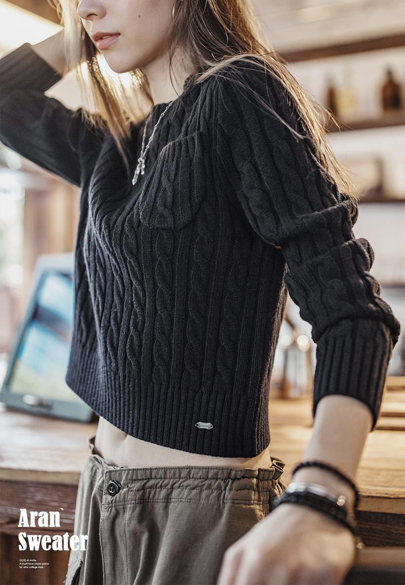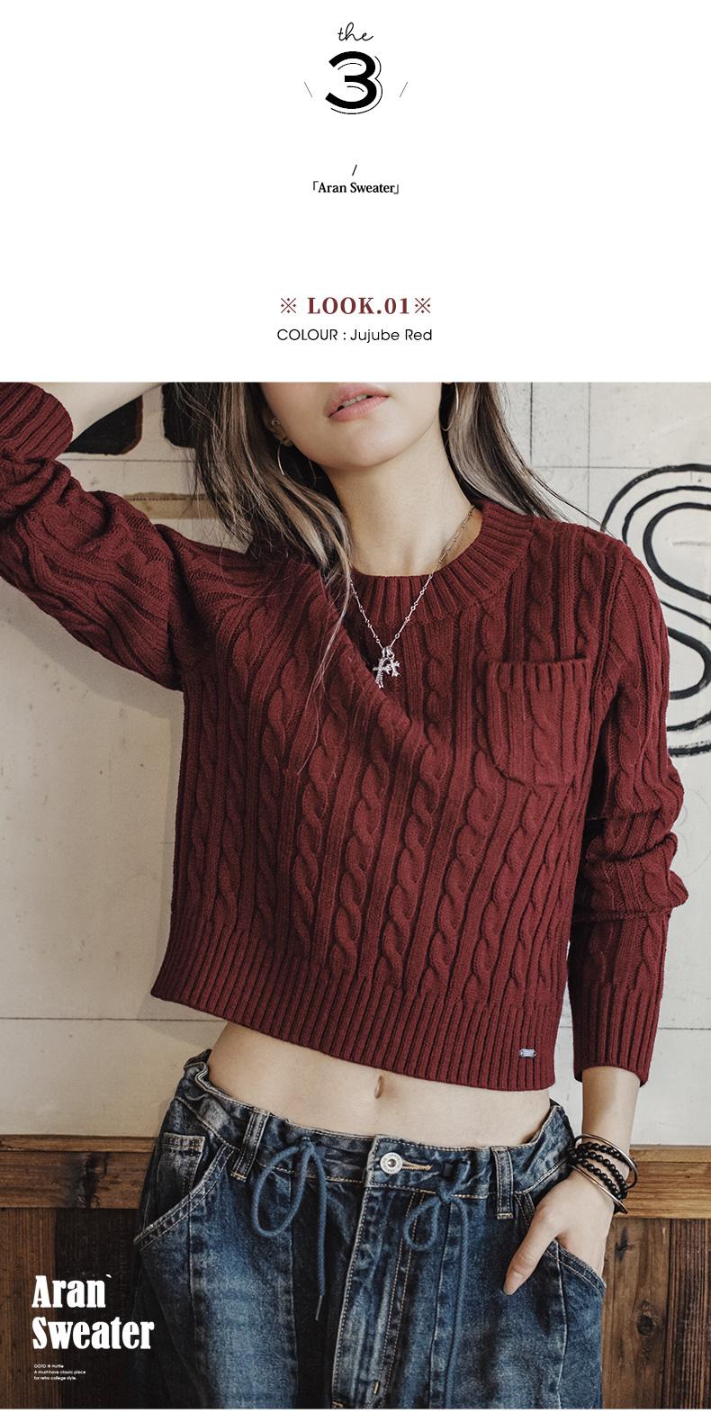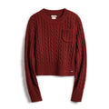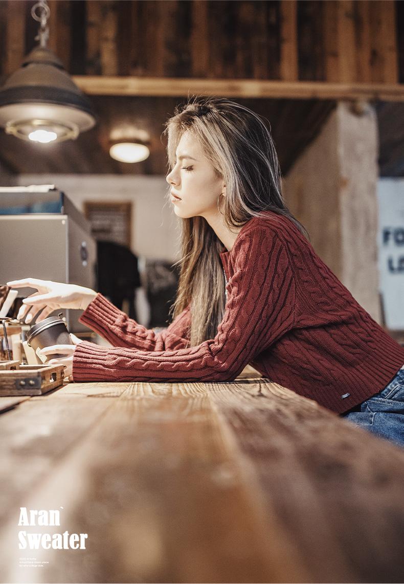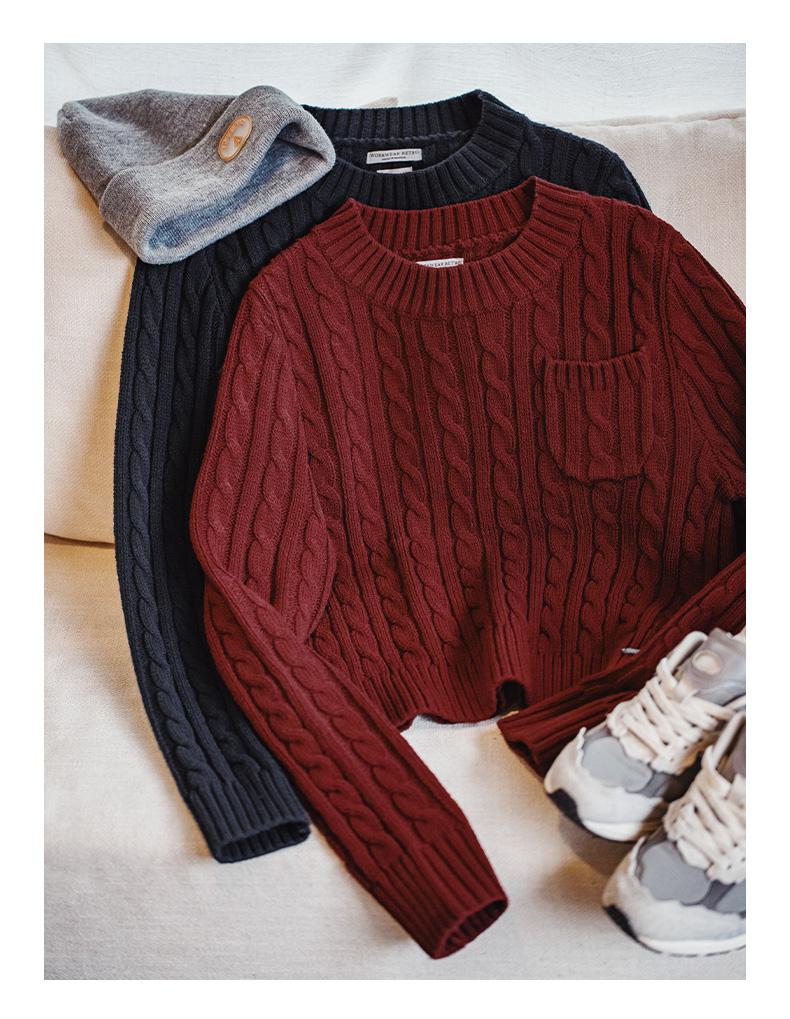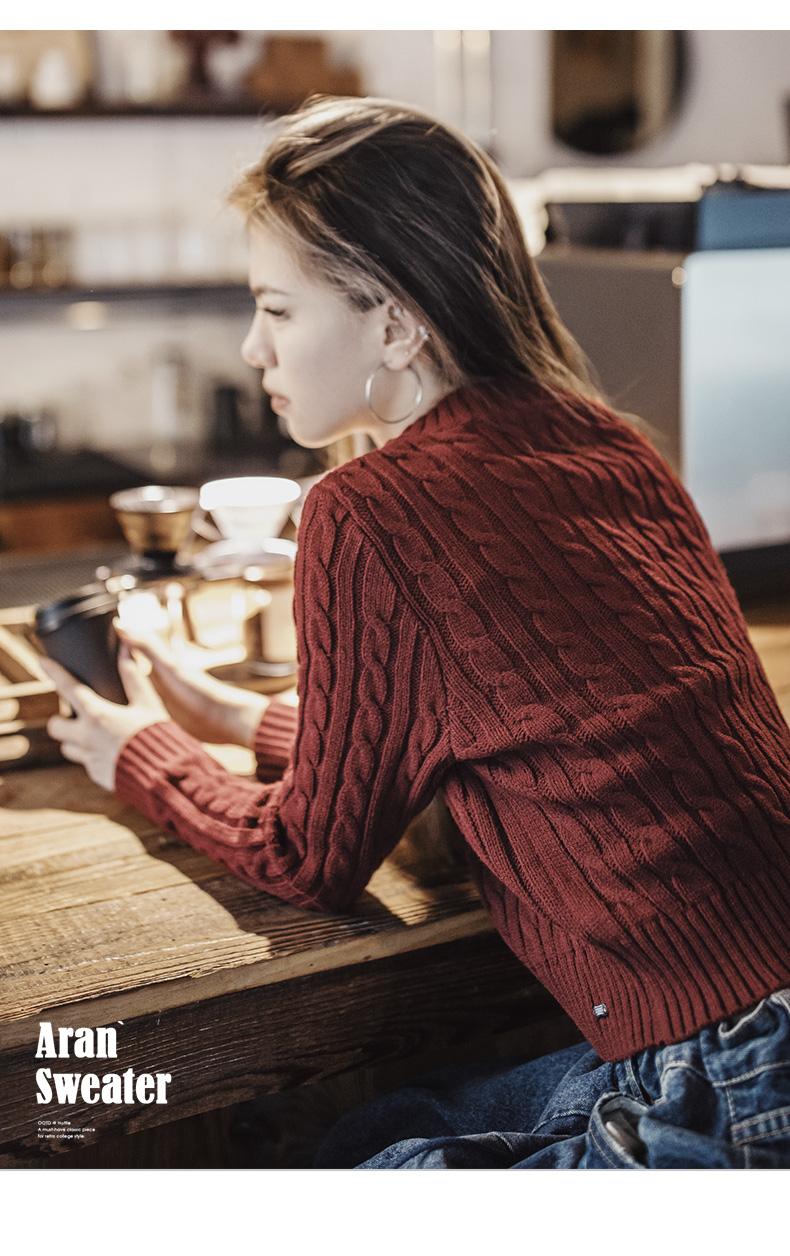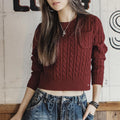 MADEN 女性用ナツメ赤色厚手短丈編み込みクリスマス用秋冬丸首下着プルオーバーセーター