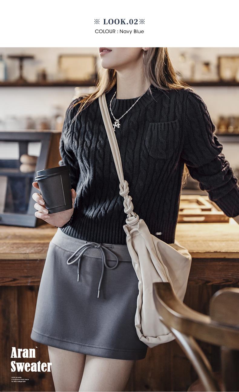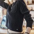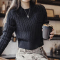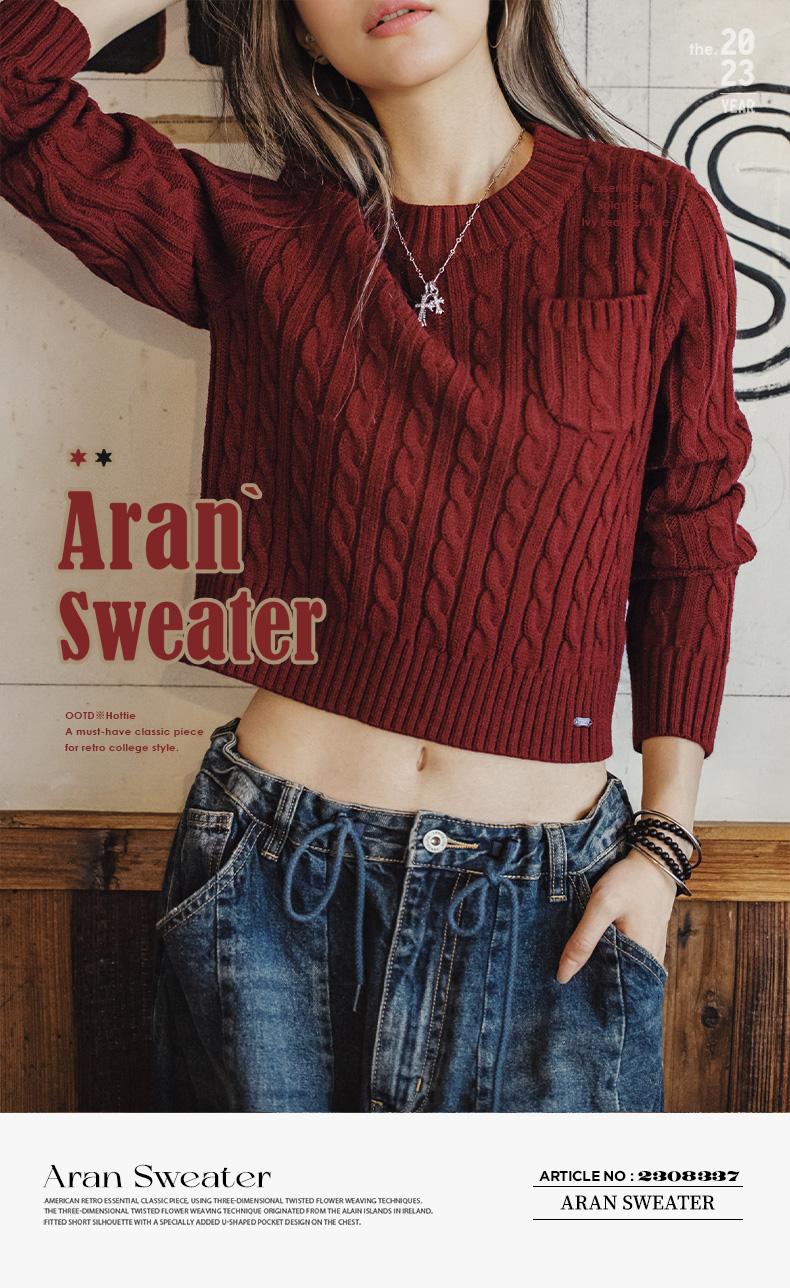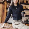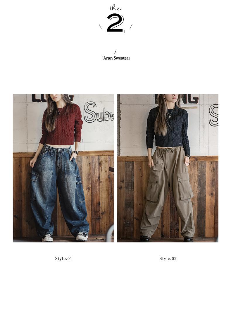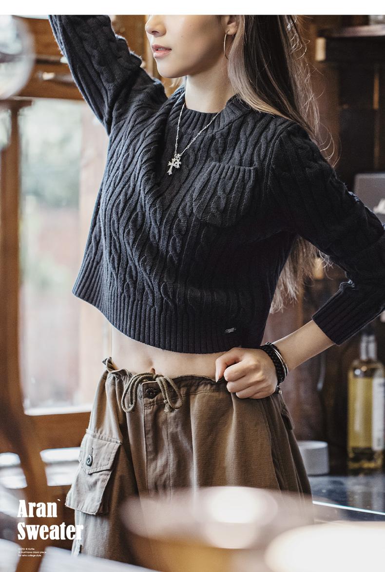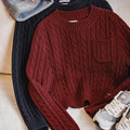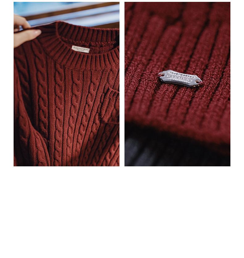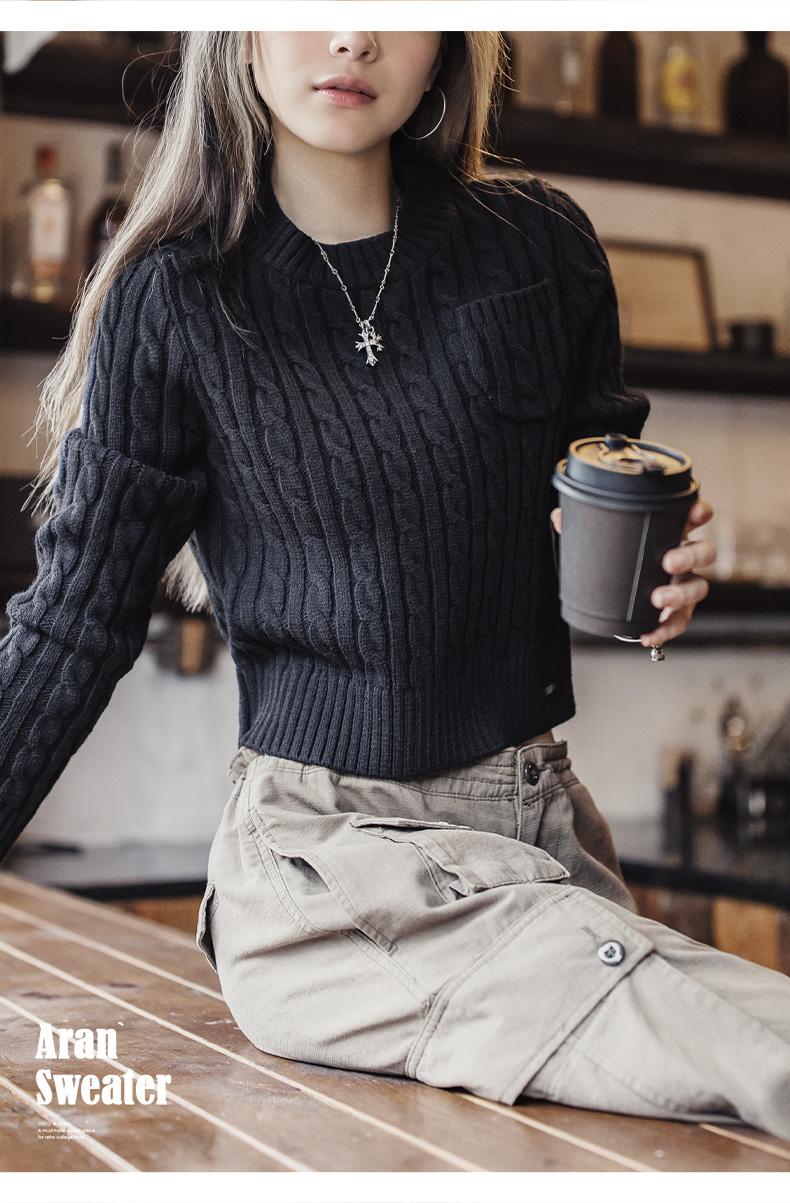 MADEN 女性用ナツメ赤色厚手短丈編み込みクリスマス用秋冬丸首下着プルオーバーセーター