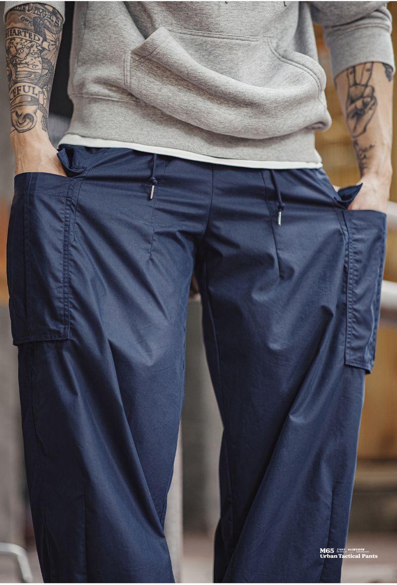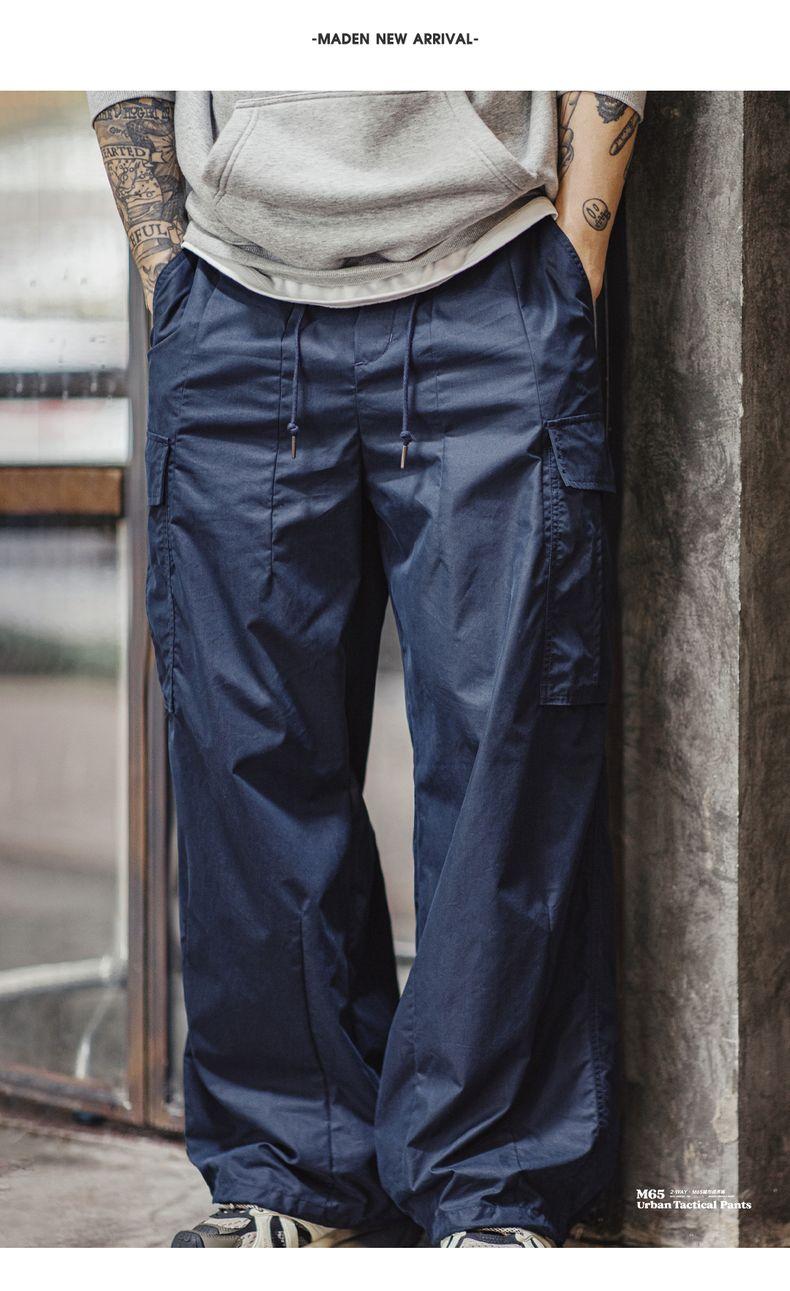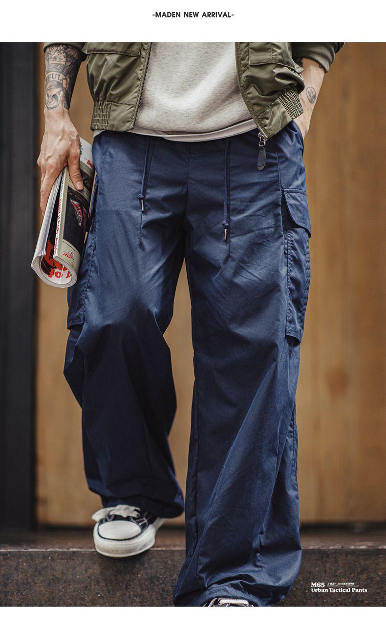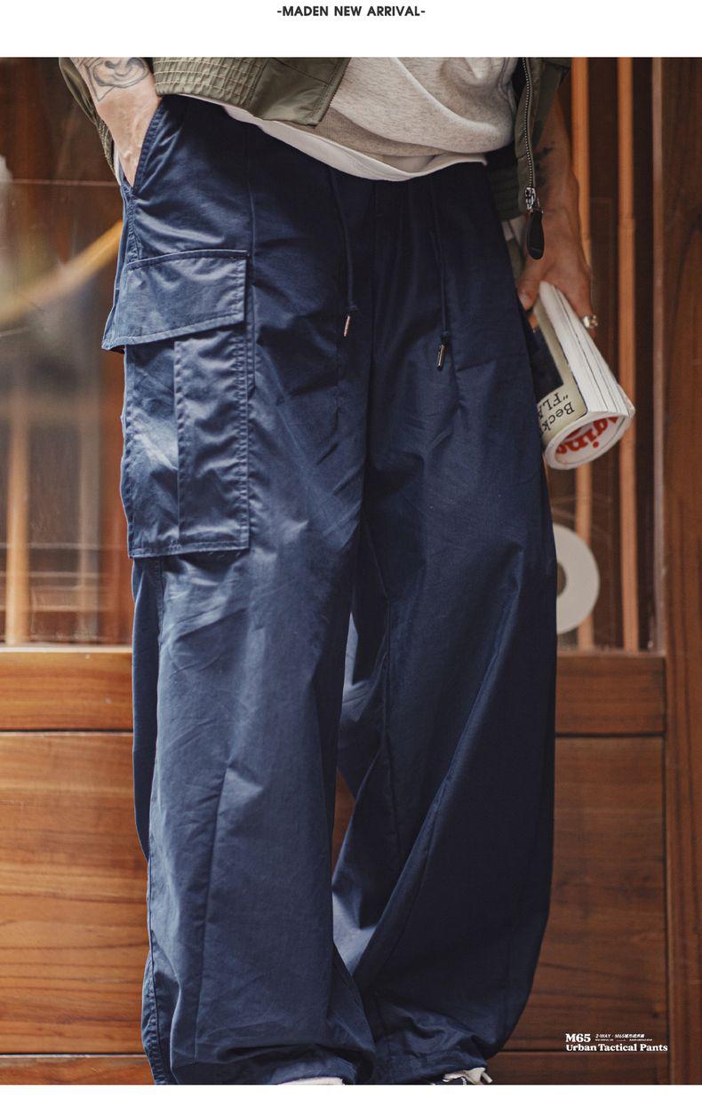 MADEN M65 メンズ用カーゴズボン 大きなポケット付き 実用的な作業ズボン アウトドア通勤 多用途スタイル カジュアルジョガー キャンプ用ロングパンツ 青色 ナイロン