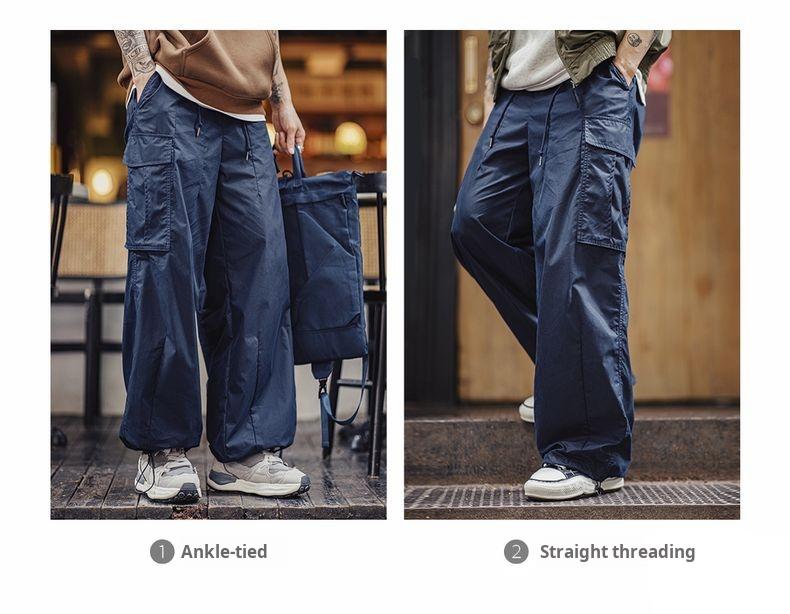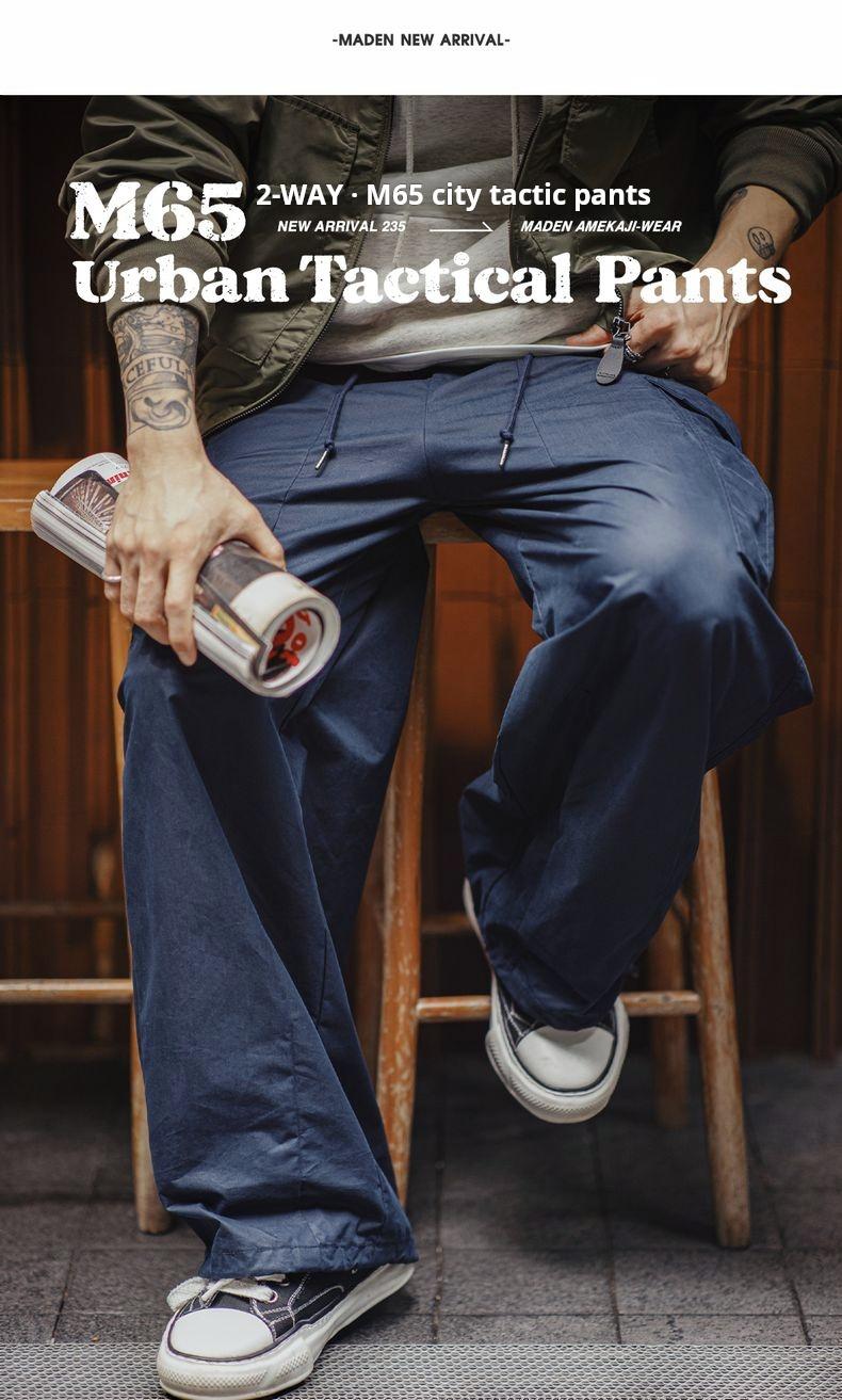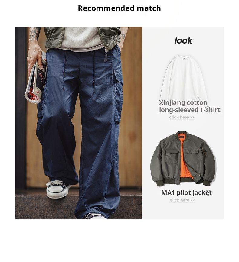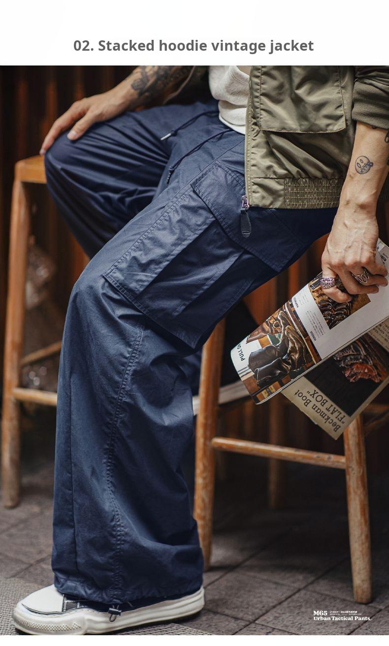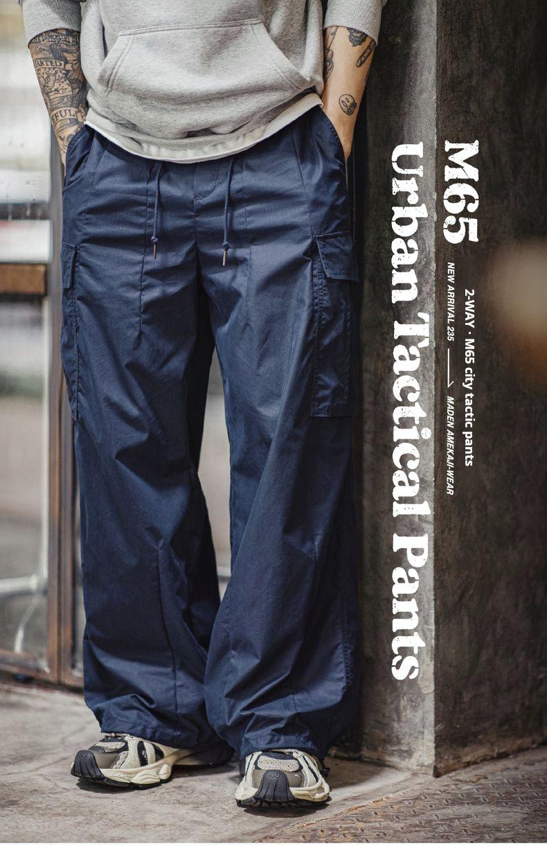 MADEN M65 メンズ用カーゴズボン 大きなポケット付き 実用的な作業ズボン アウトドア通勤 多用途スタイル カジュアルジョガー キャンプ用ロングパンツ 青色 ナイロン