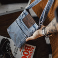 MADEN 洗い加工デニム 通勤用肩掛け鞄