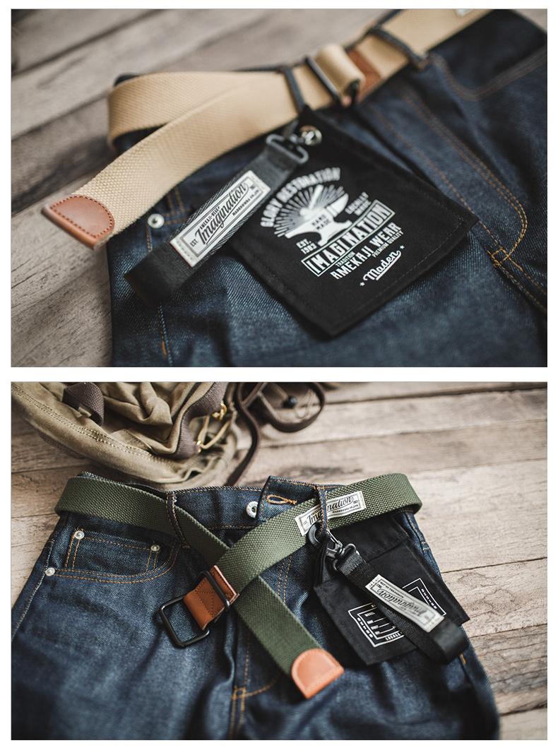 마덴 레트로 나일론 캔버스 벨트 – 더블 링 버클 짠 허리 벨트 아메카지 스타일