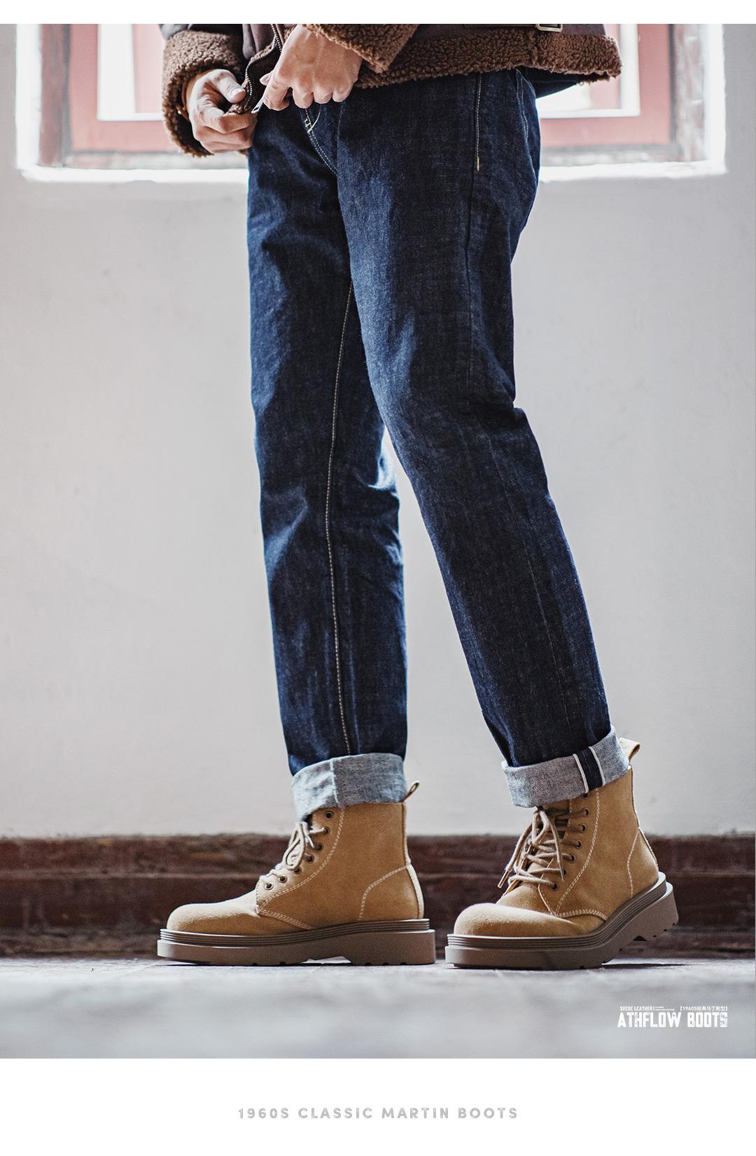 마덴 남성 마틴 부츠 레트로 캐주얼 부드러운 가죽 하이탑 오토바이 영국 스타일 부츠 다용도 중간 컷 진짜 가죽 작업 부츠