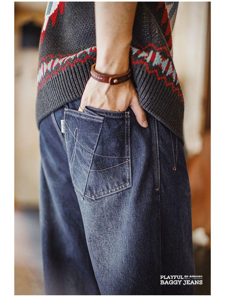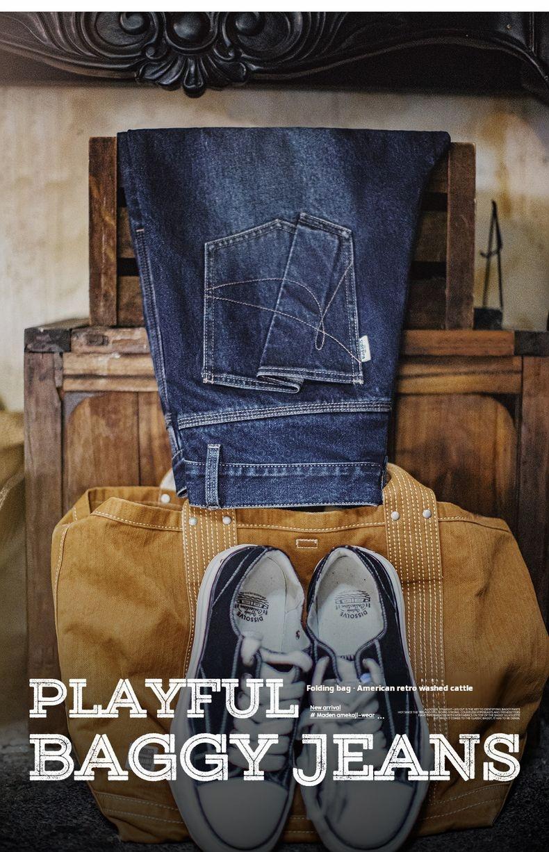 매든 복고풍 작업복 청바지 스트레이트 레그 캐주얼 바지