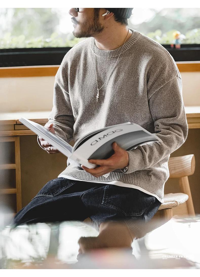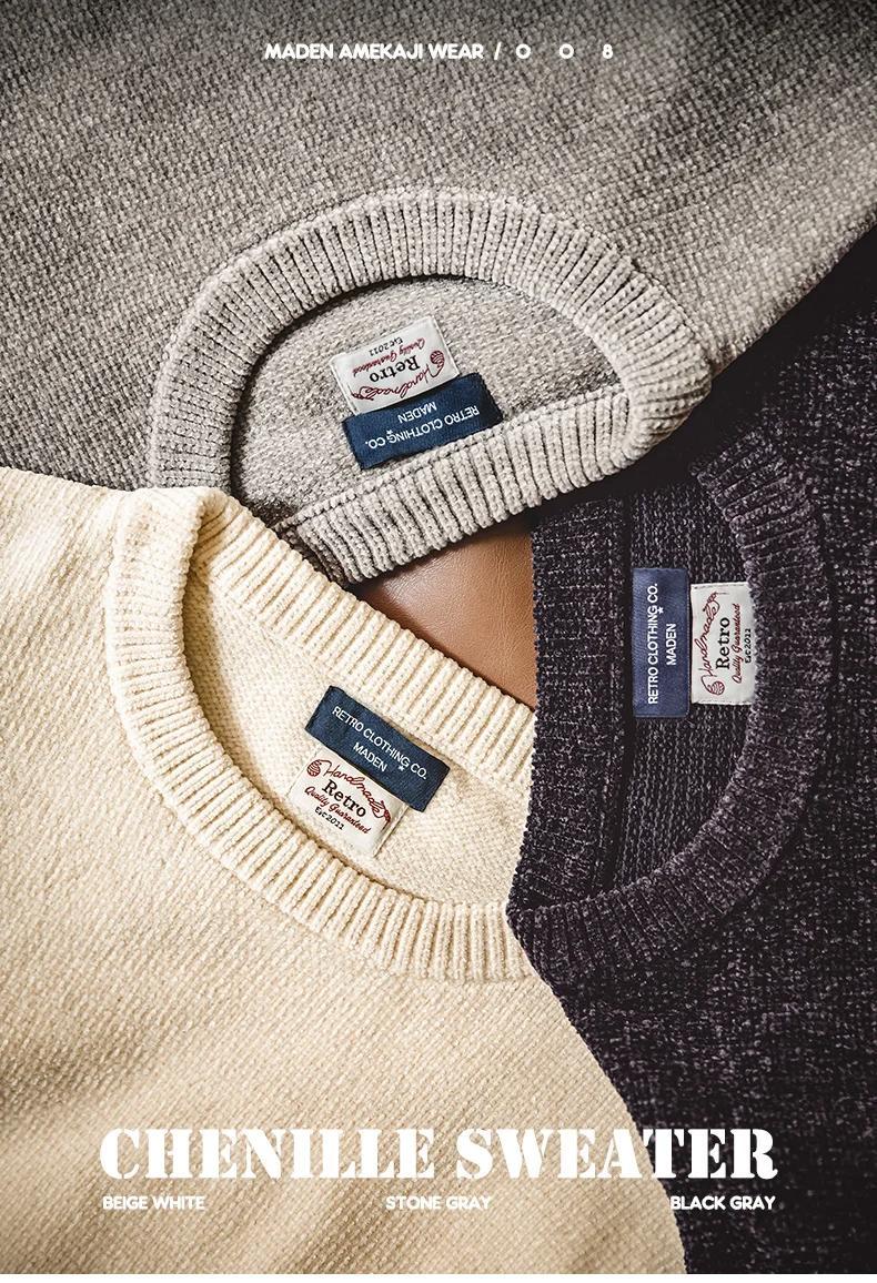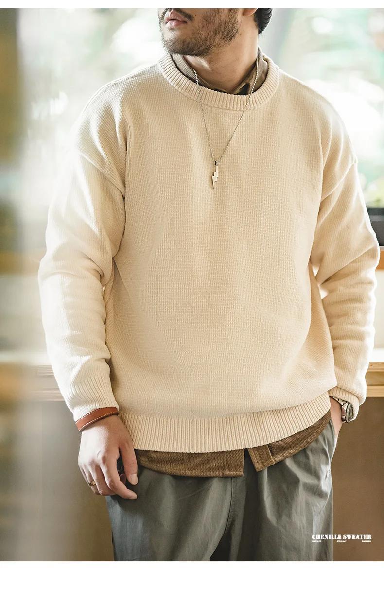 마덴 남성용 셔닐 스웨터 – 부드럽고 아늑한 라운드 넥 따뜻한 기본 니트 풀오버