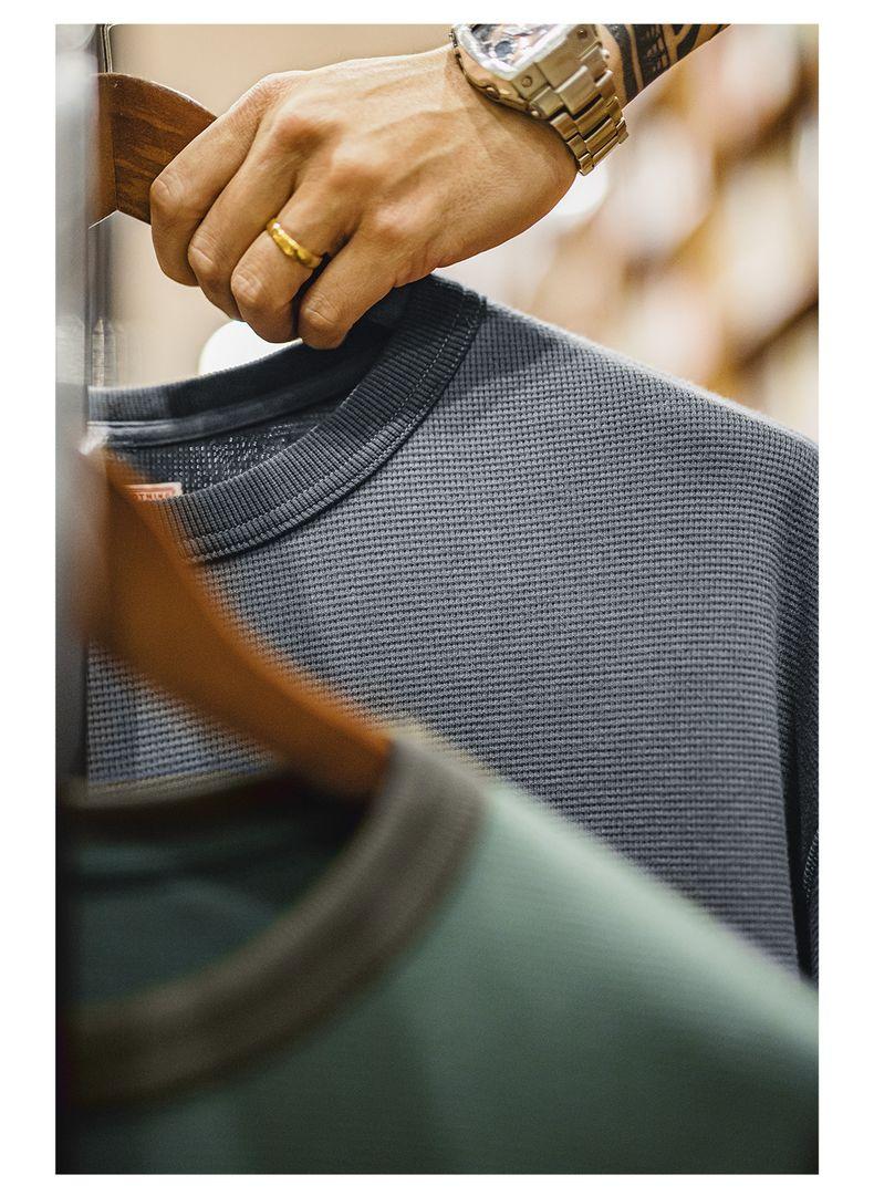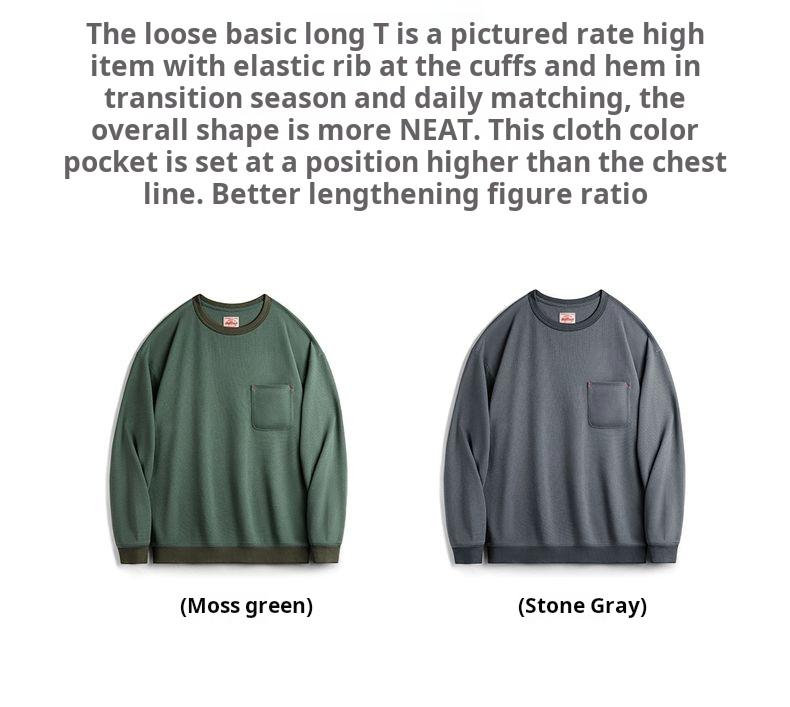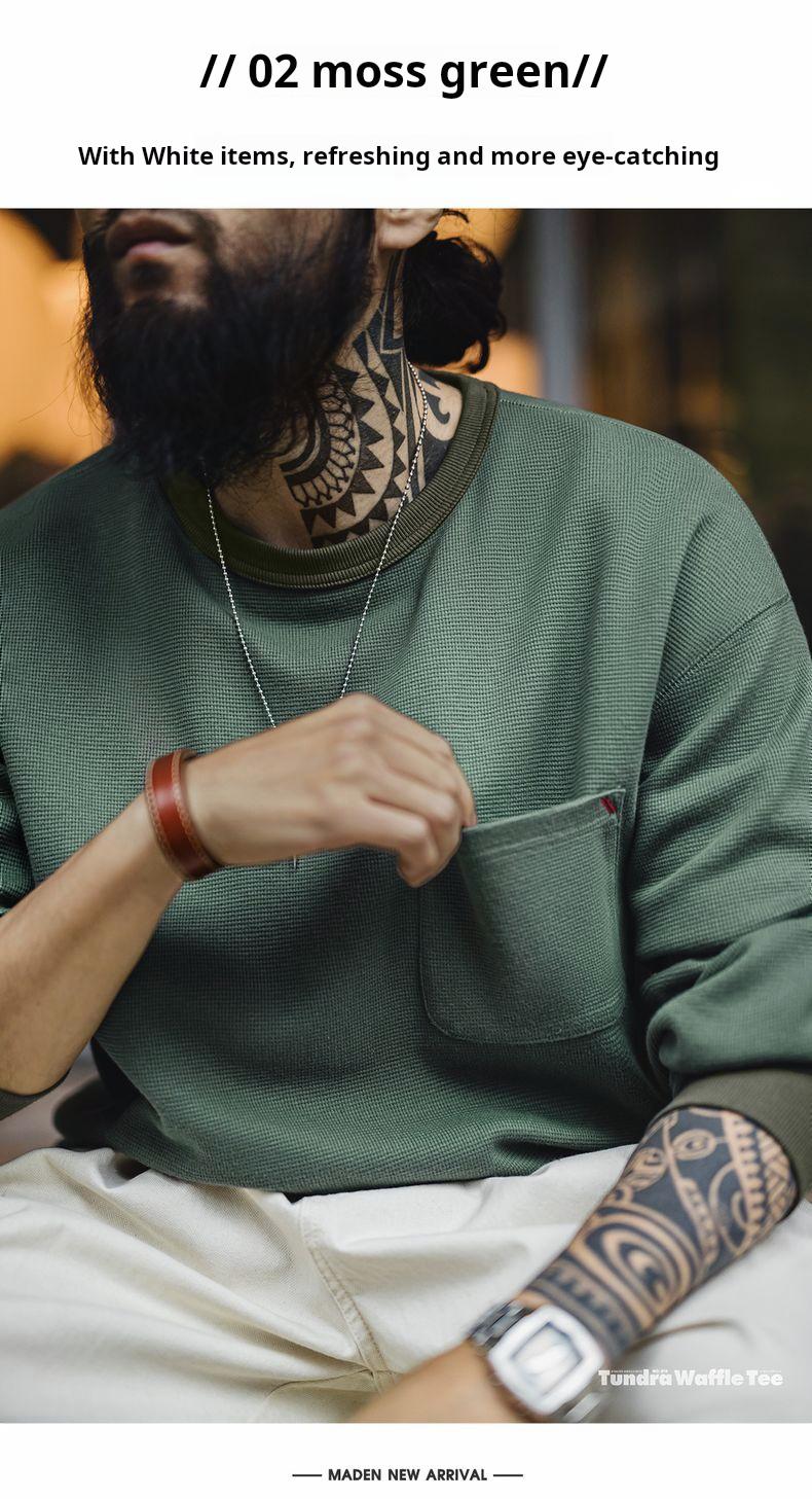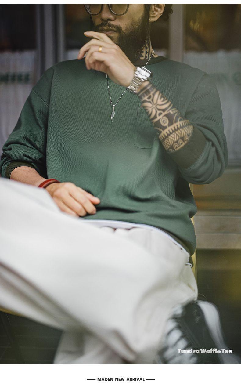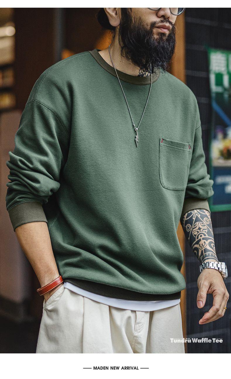 남성용 캐주얼 와플 니트 스웨트셔츠 루즈핏 포켓 티 편안한 핏 긴 소매 풀오버 미국식 캐주얼 스타일