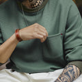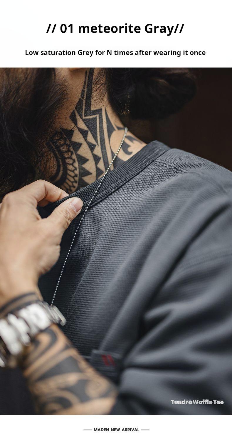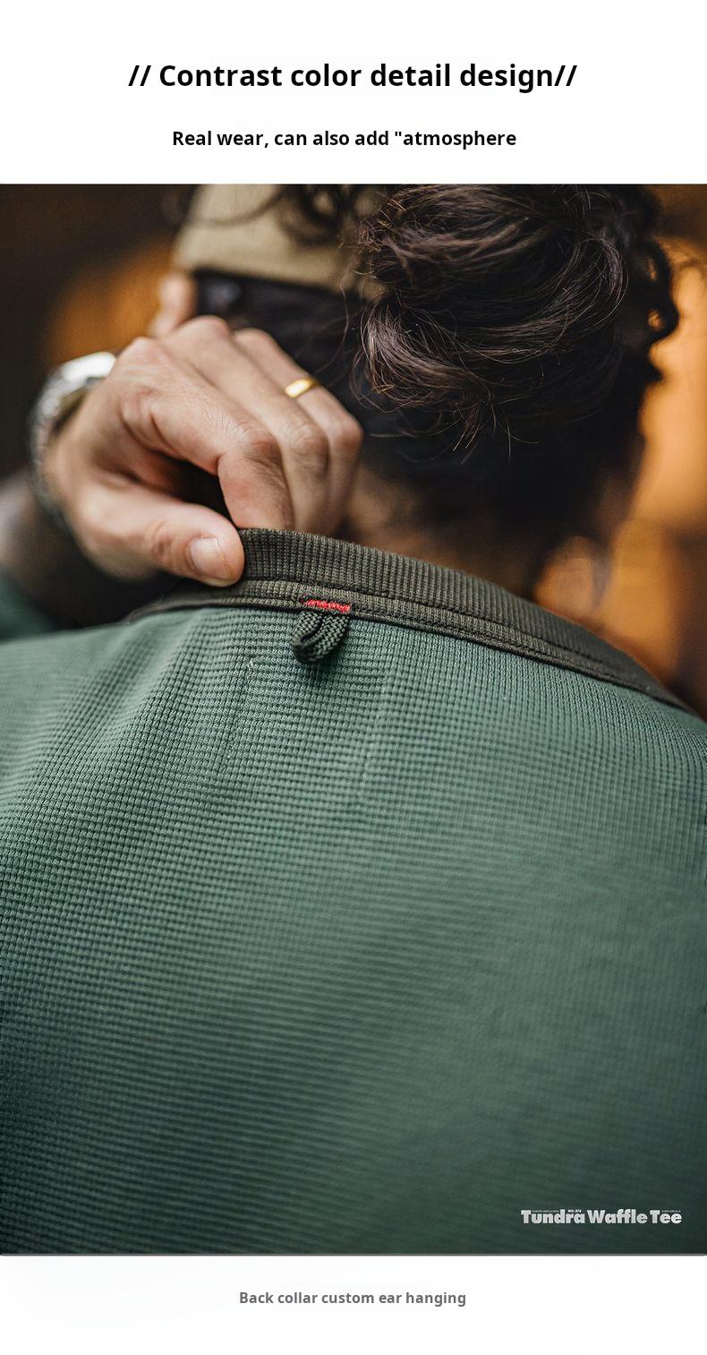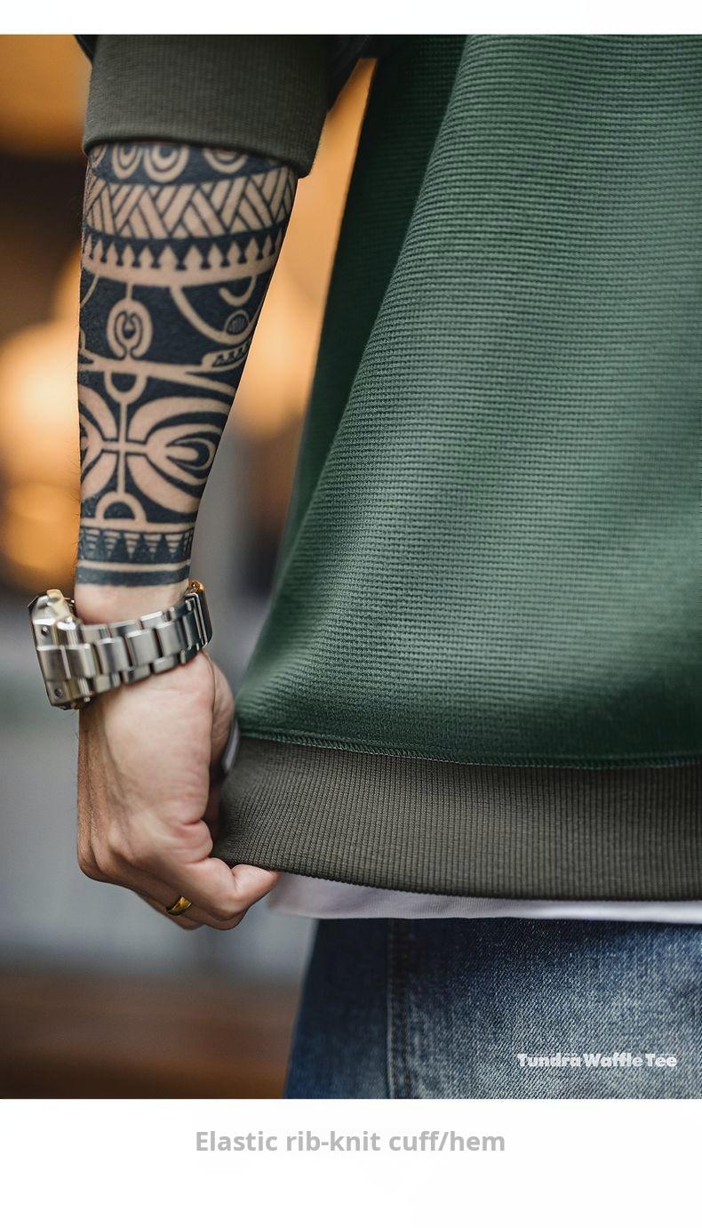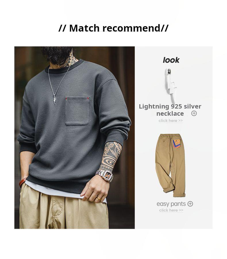 남성용 캐주얼 와플 니트 스웨트셔츠 루즈핏 포켓 티 편안한 핏 긴 소매 풀오버 미국식 캐주얼 스타일