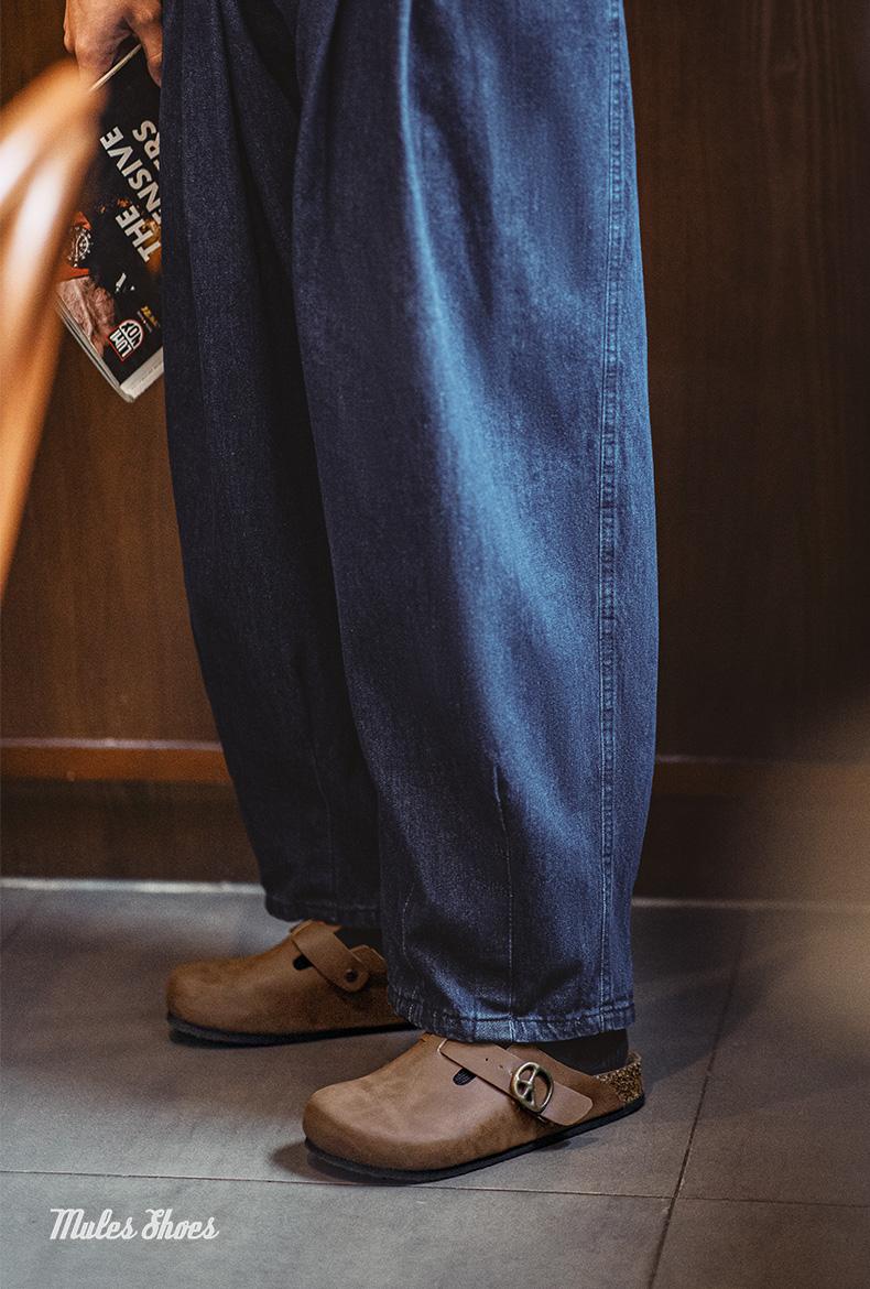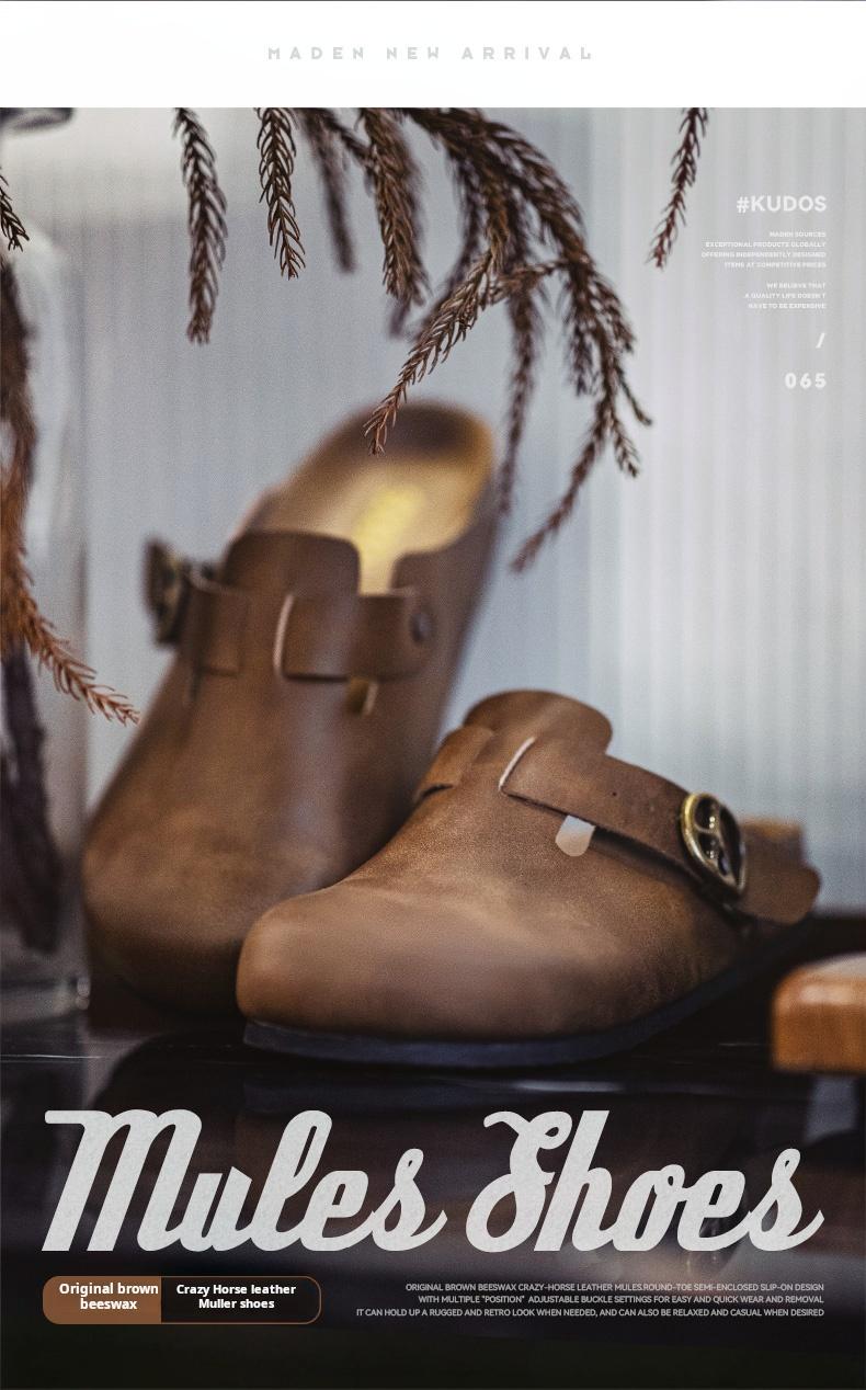 마덴 뮬 신발 크레이지 호스 가죽 슬립온 반 슬립 남성 신발 신상 두꺼운 밑창 야외 코르크 발가락 캐주얼 복고풍 슬리퍼
