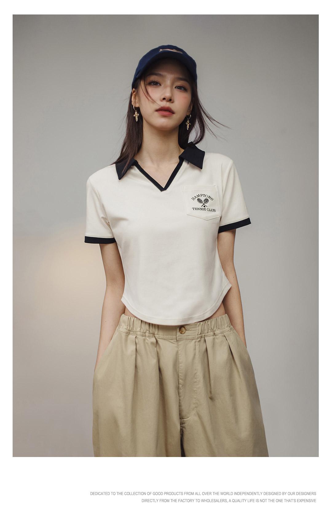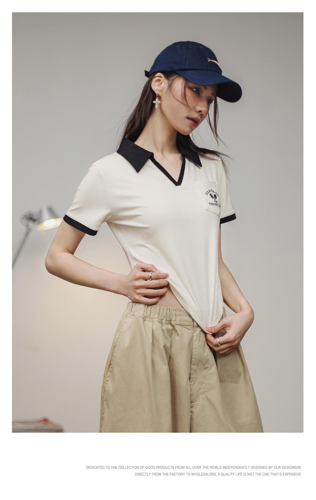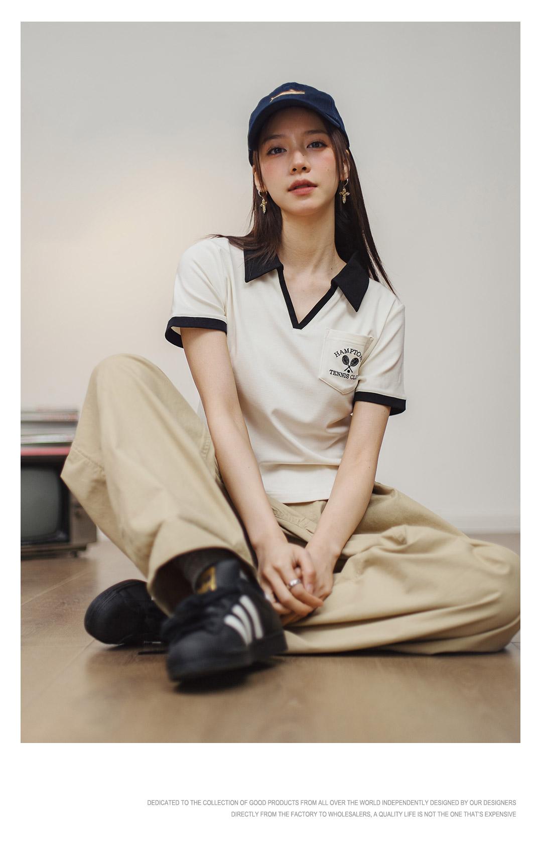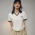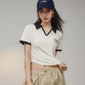 마덴 빈티지 브이넥 셔츠 여성 캐주얼 대비 티셔츠
